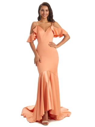 Applicable styles: bridesmaid dresses with side slits with ruffles can cover the arms and show the elegance of the legs. This figure is especially suitable for showing the legs, mermaid bridesmaid dresses are also very beautiful, boldly showing the legs charm.