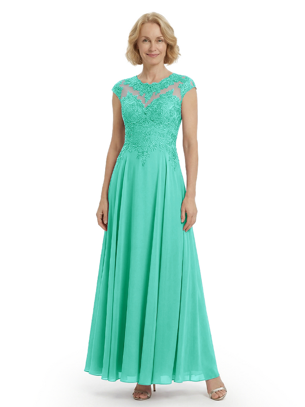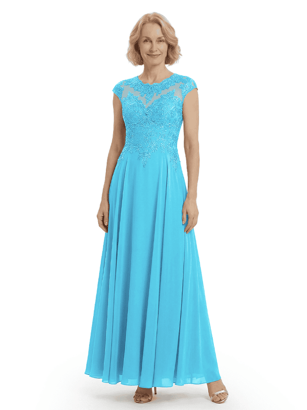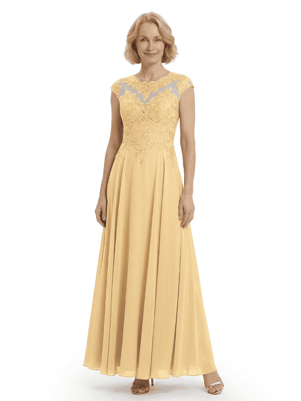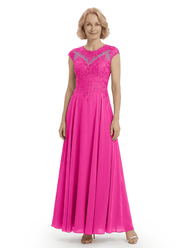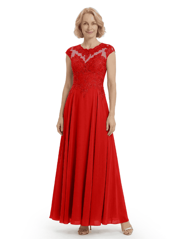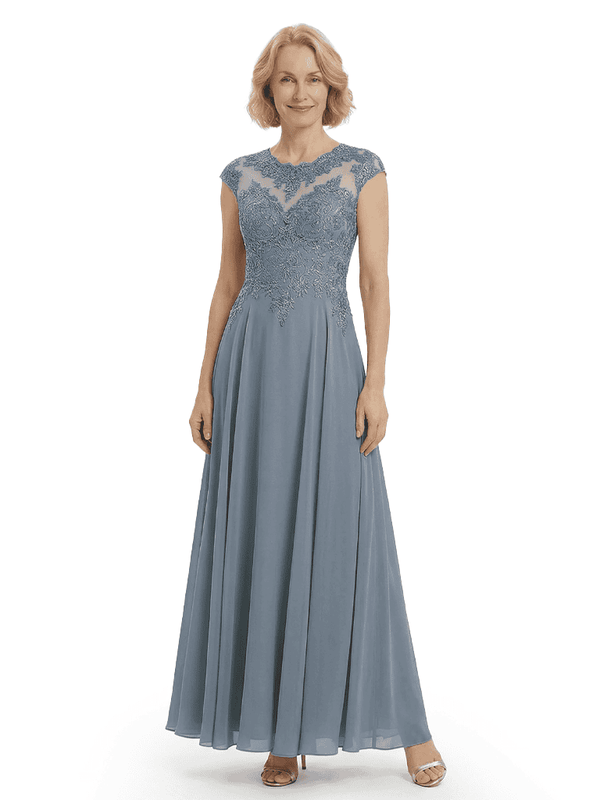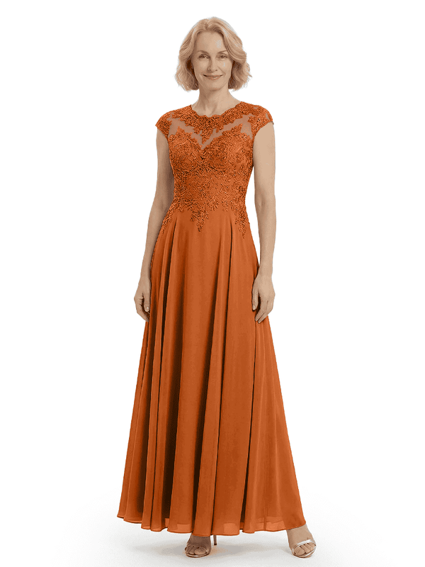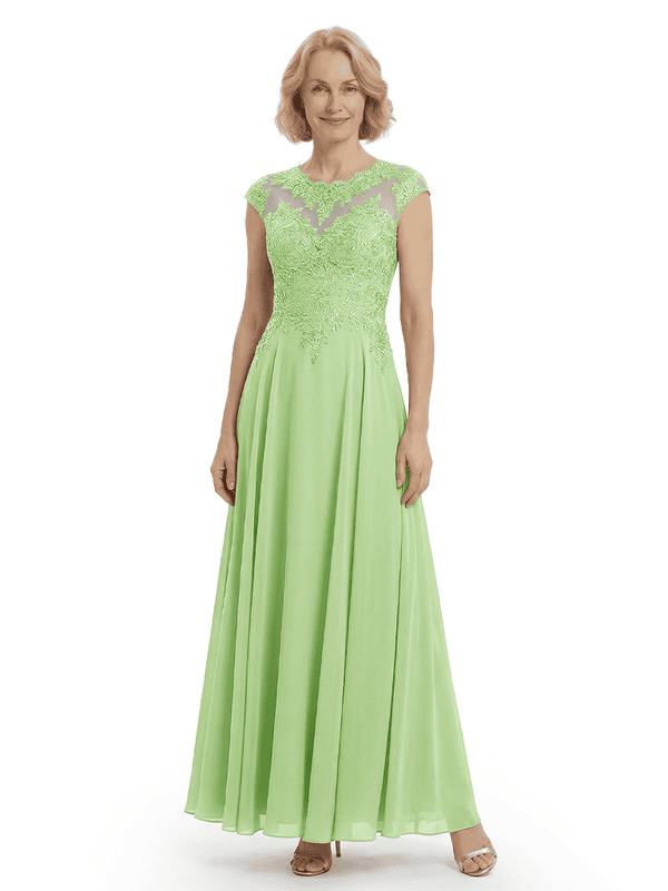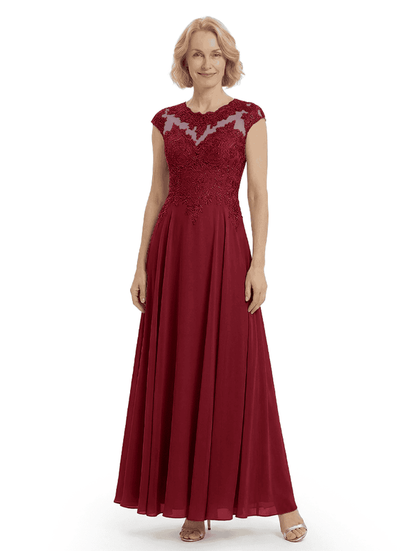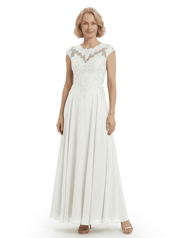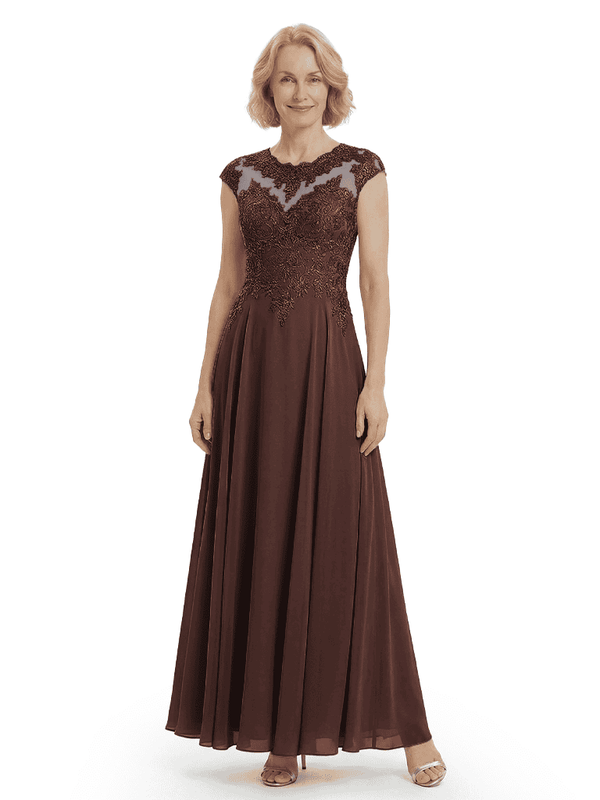 Chicsew Elegant Lace Top Cap Sleeves Ruched A-Line Chiffon Mother of The Bride Gown- ChicSew