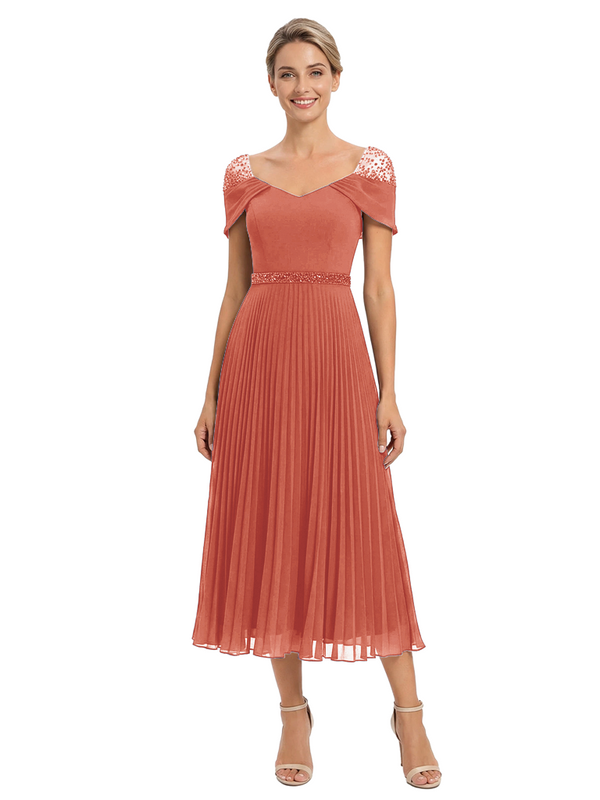 Since the material is soft satin, it's stretchy, if your real measurements are bigger than dress, then dress will be tight for you, the pleats will be stretched to plain, the pleats will not be obviously, further more, if you take dress off, then stitches will be stretched out, they become obviously if you bring up the pleats, in this condition, you can sort out the pleats by stretching them into both side, then stitches will indent into pleats. If your real measurements are smaller than dress, then pleats will out of shape, they will become loose, so please find a seamstress in your local shop to take dress in.For more, please check our blog: https://chicsew.com/blogs/news/why-i-can-see-stitches-under-pleatsWe also have ADJUSTMENTS & REIMBERSEMENTS policy, please check this link: https://chicsew.com/pages/adjustments-reimbersements