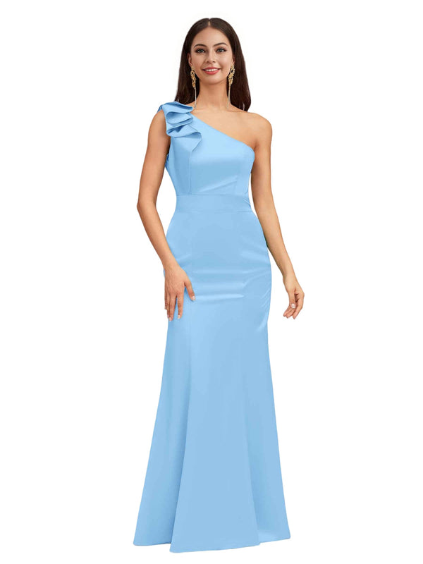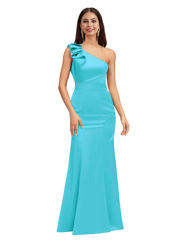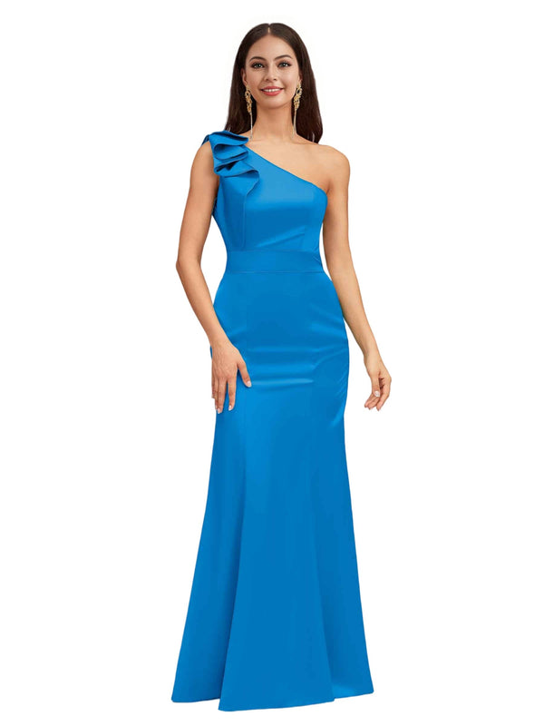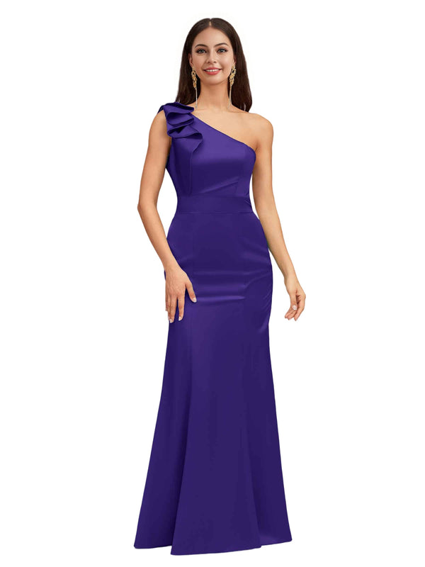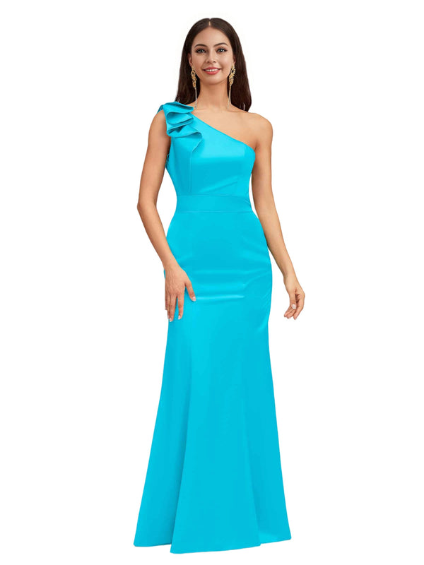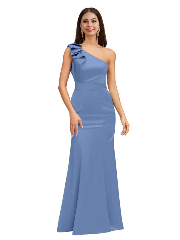Sexy One Shoulder Mermaid Soft Satin Beauty Long Bridesmaid Dresses