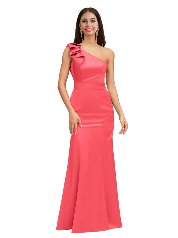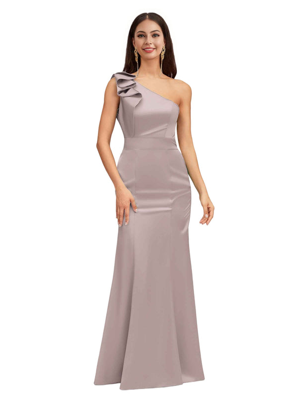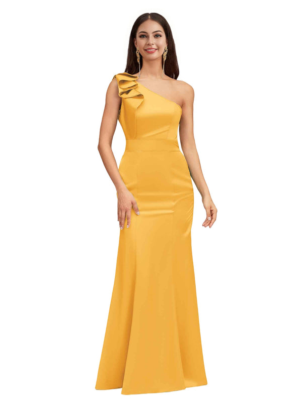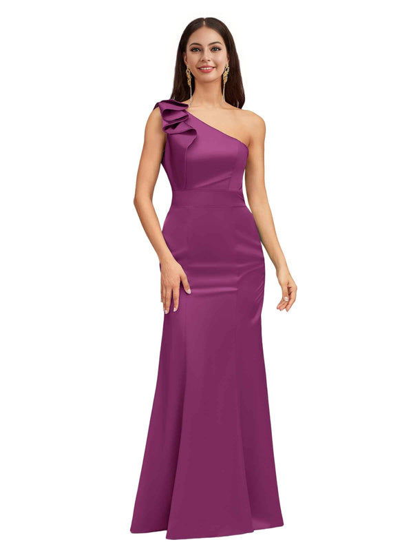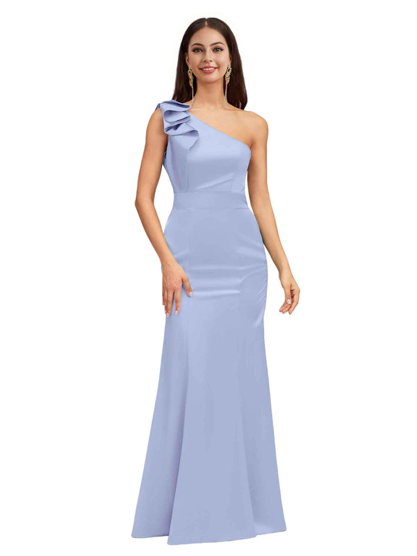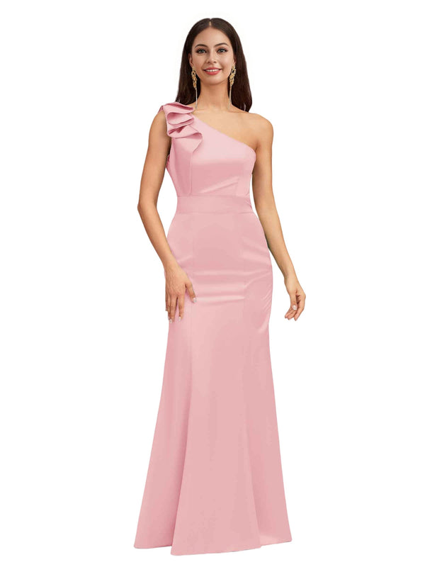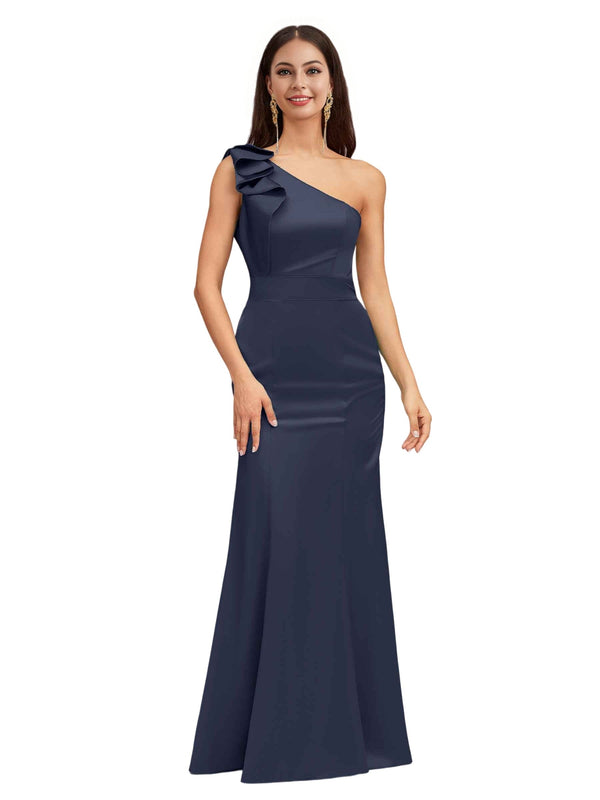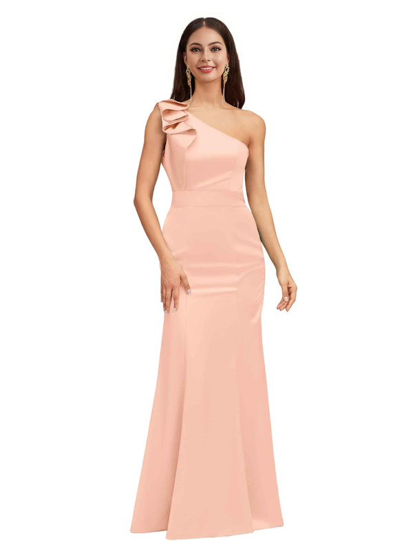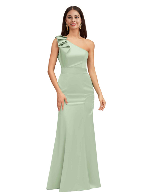 Sexy One Shoulder Mermaid Soft Satin Beauty Long Bridesmaid Dresses - ChicSew