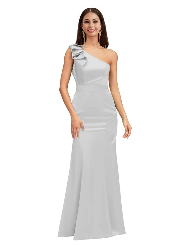 Sexy One Shoulder Mermaid Soft Satin Beauty Long Bridesmaid Dresses £102.99