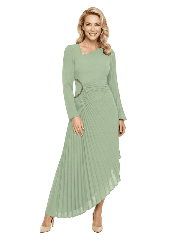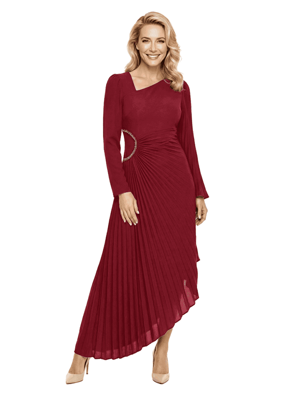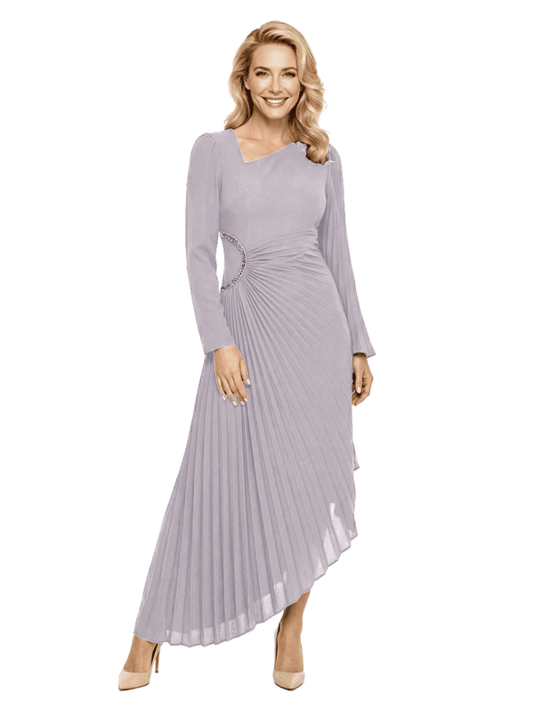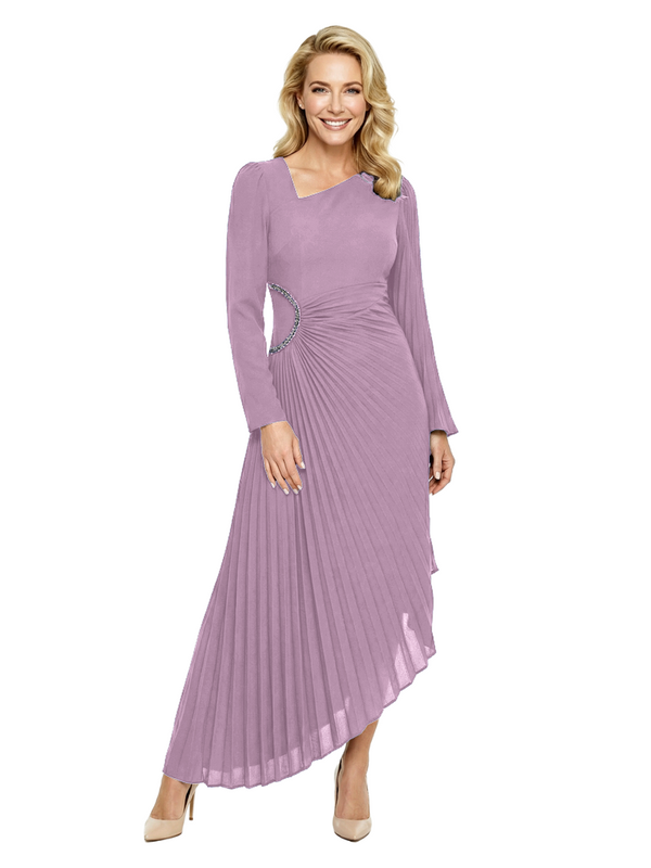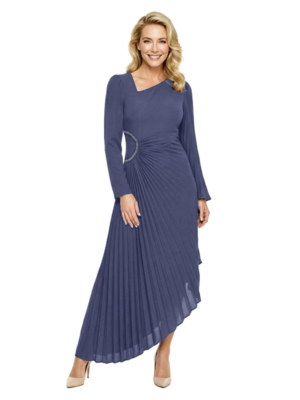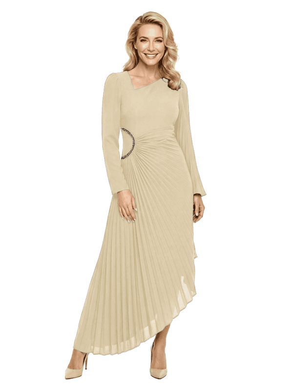 Chicsew Mother of The Bride Dresses Asymmetrical Long Sleeve Chiffon High Low Gown Unique Beaded Formal Wedding Event Dress - ChicSew