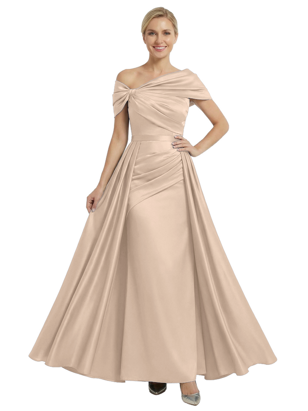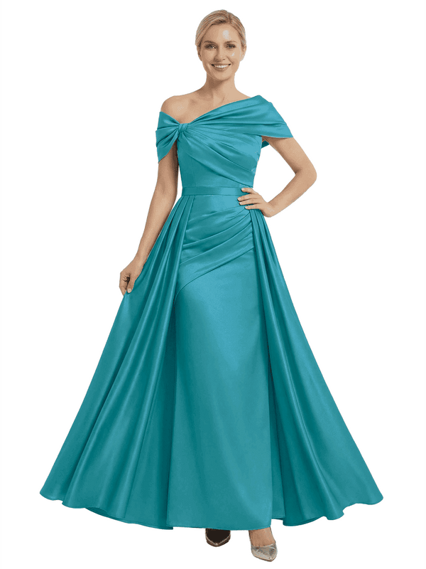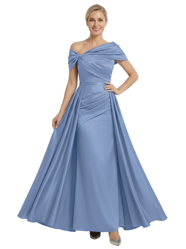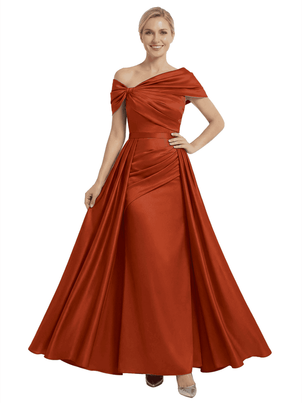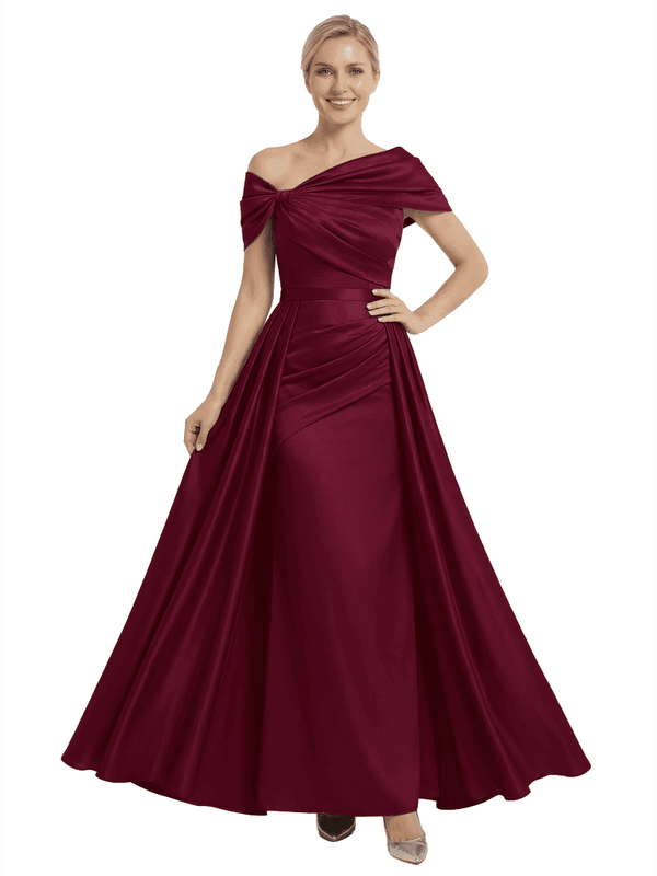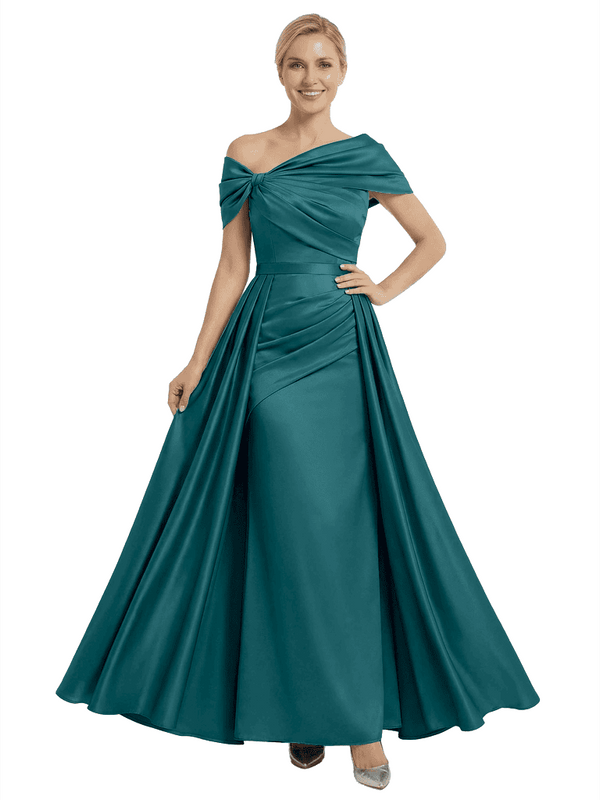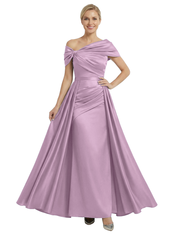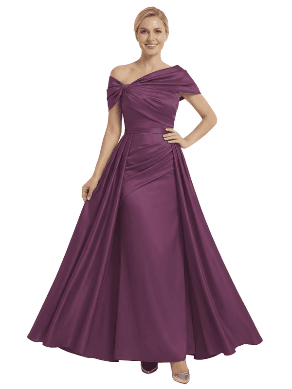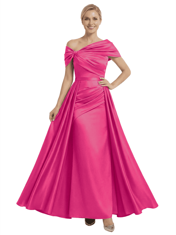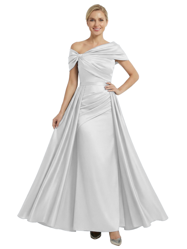 Chicsew Mother of The Bride Dresses Asymmetrical Satin Maxi Gown Unique Ruched Formal Wedding Event Dress - ChicSew