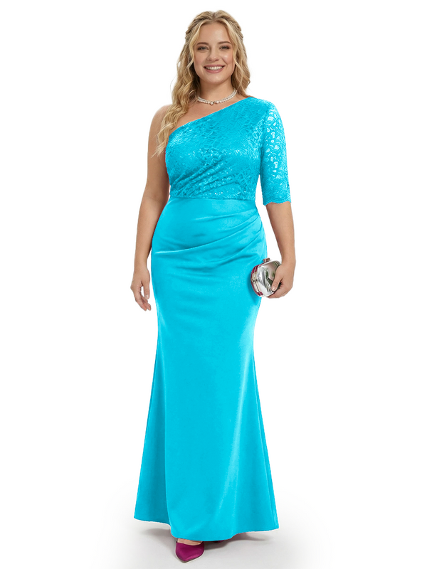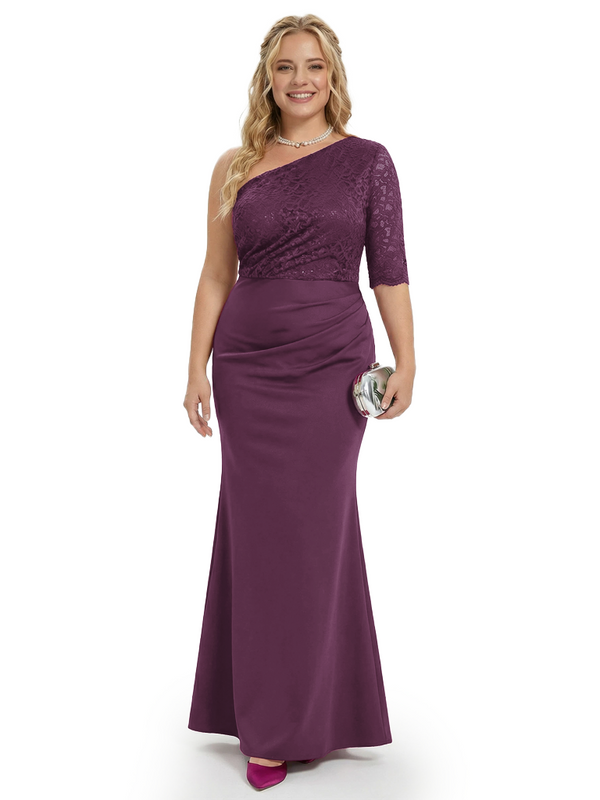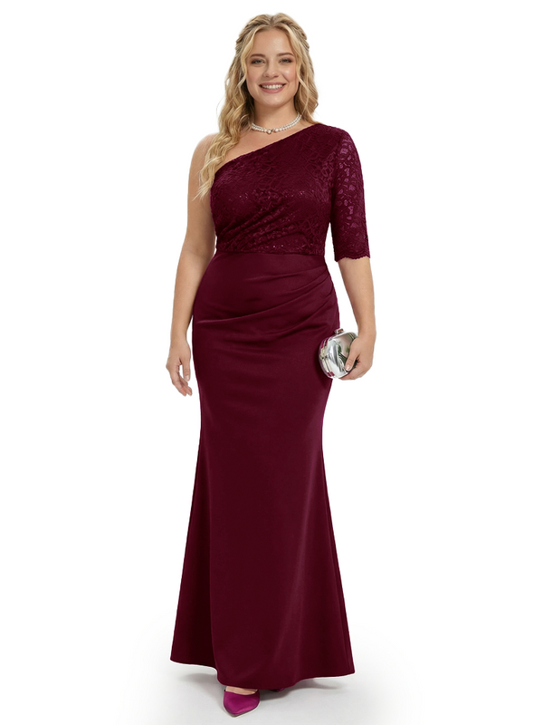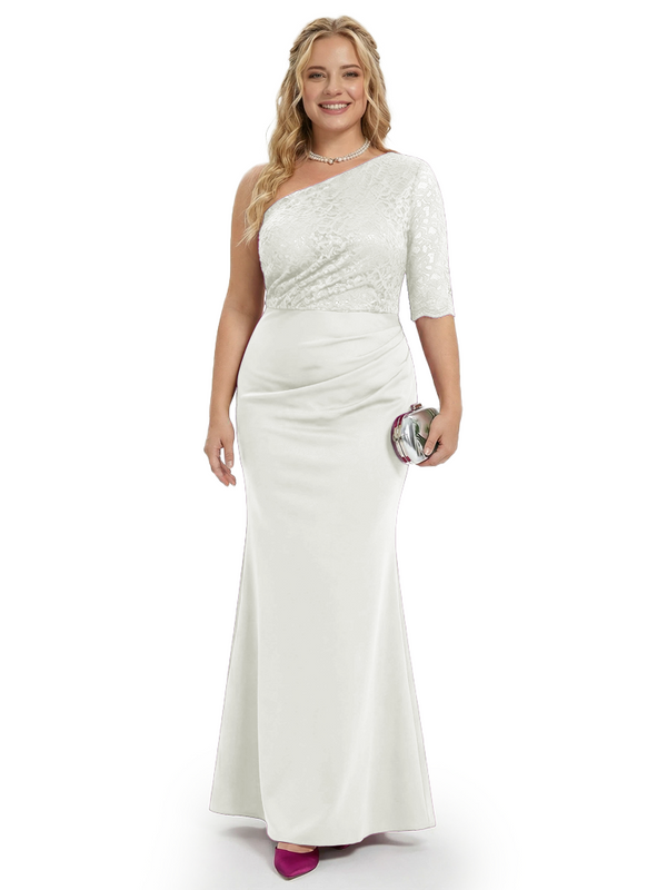 Unique One Shoulder Lace Mother of The Groom Dress Maxi Sheath Gown with Ruching Elegant Formal Occasion Attire - ChicSew