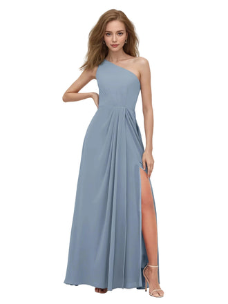 Chiffon A-line One-Shoulder Long Bridesmaid Dresses Online