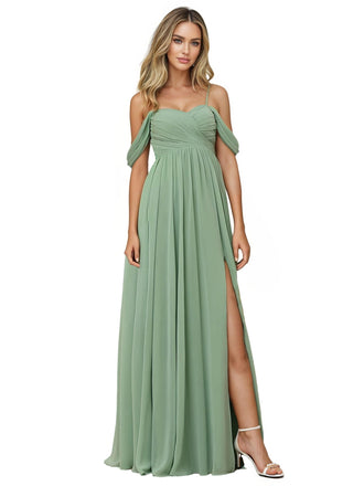 Elegant Spaghetti Strap Chiffon Maxi Long Bridesmaid Gowns UK