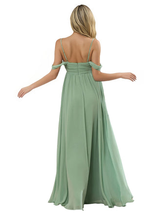 Chiffon Spaghetti Strap V-neck Long Bridesmaid Gowns Online UK
