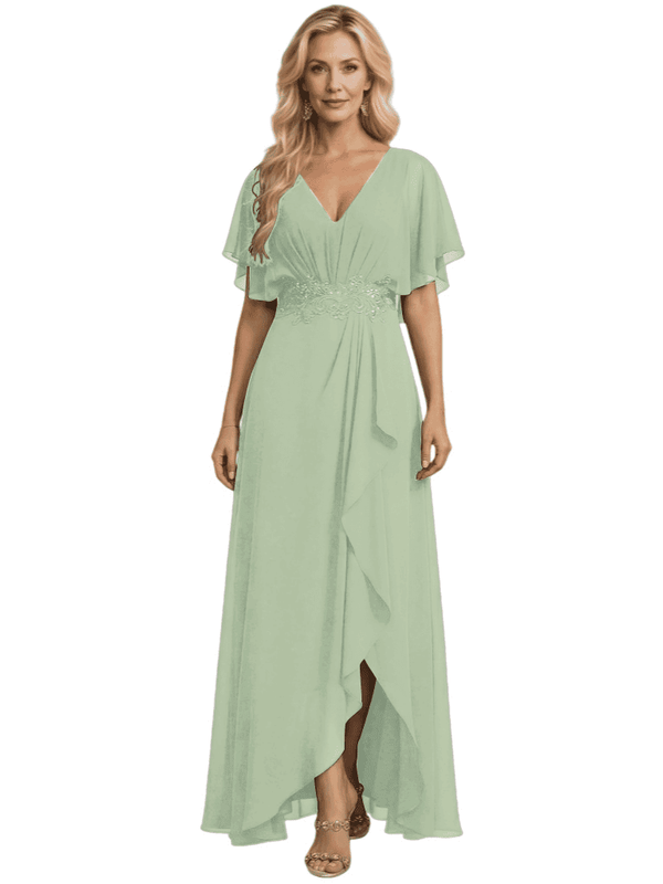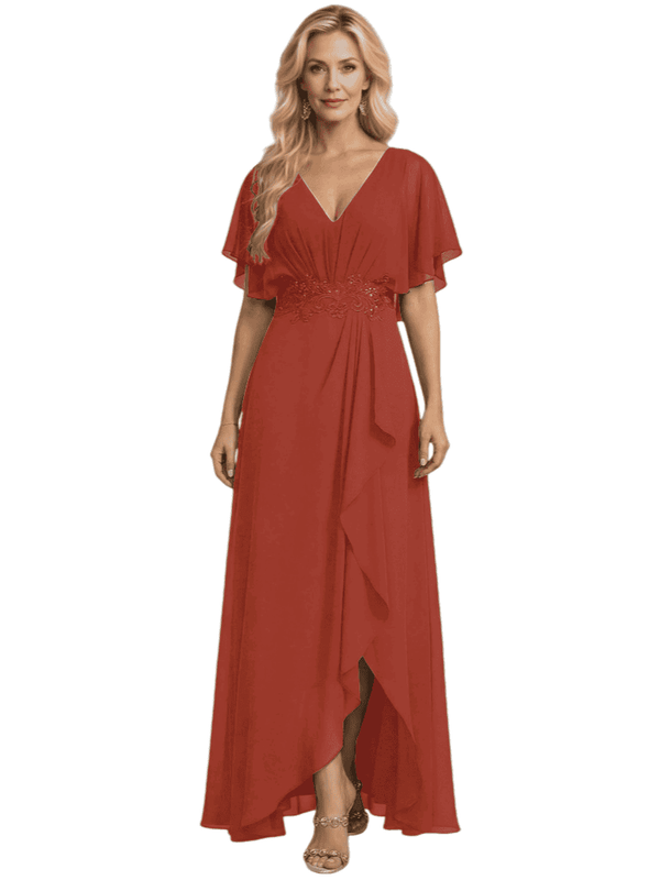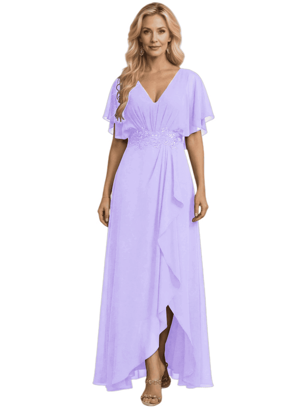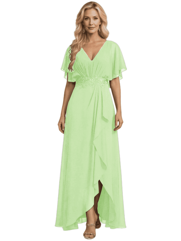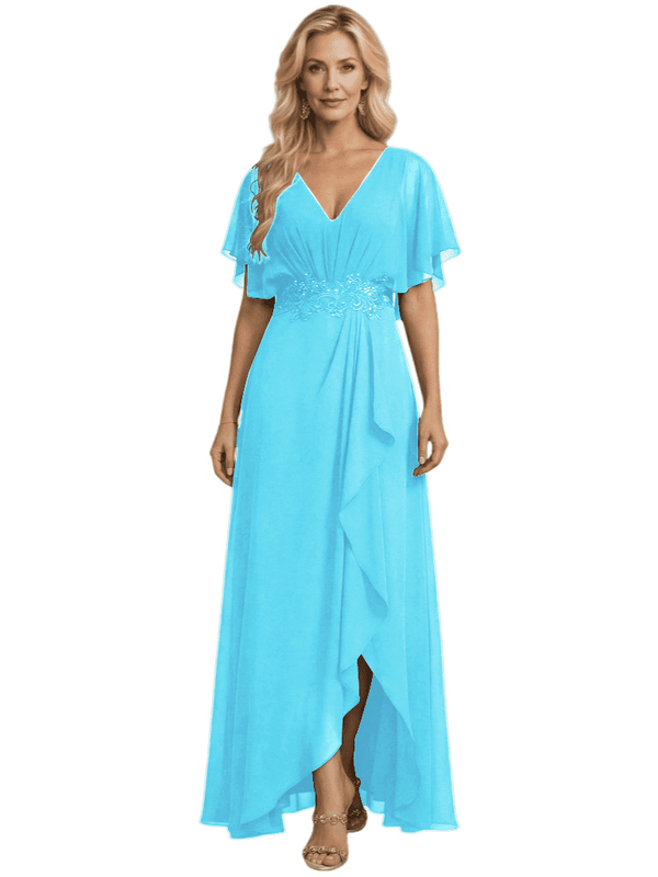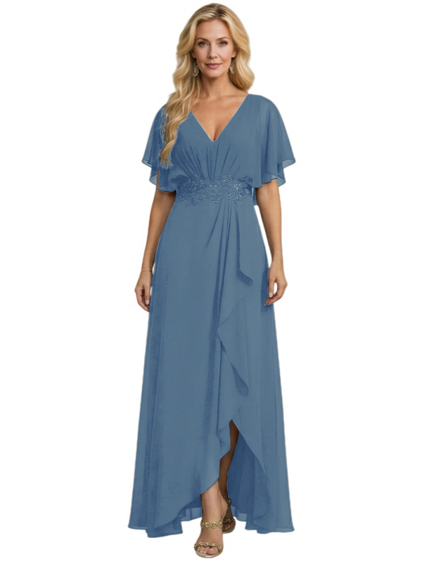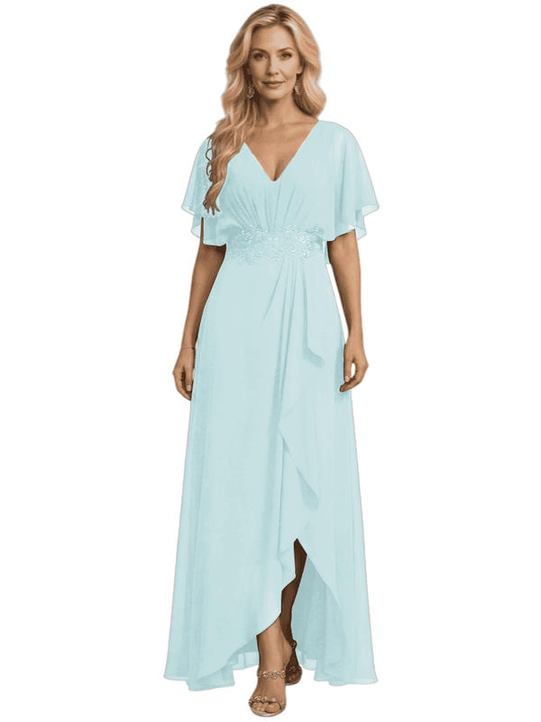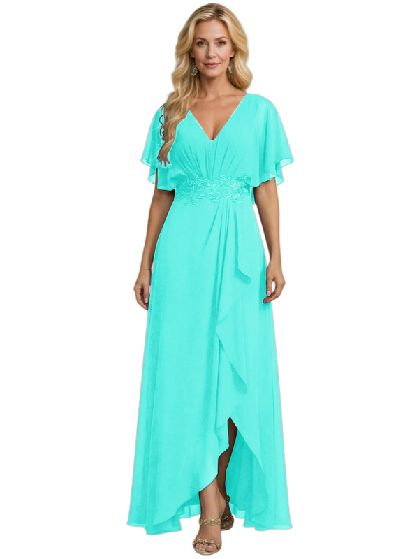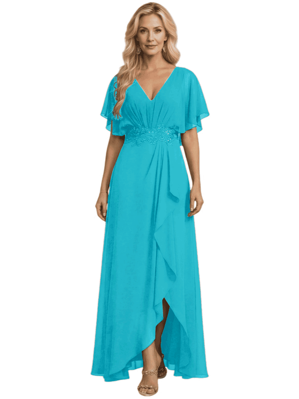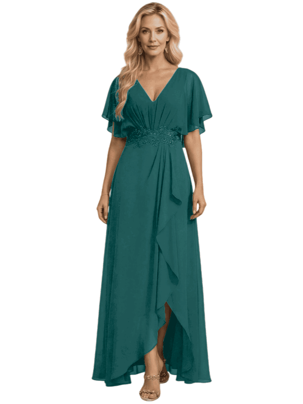 Embellishment: Lace Applique, Side Slit, Ruffle