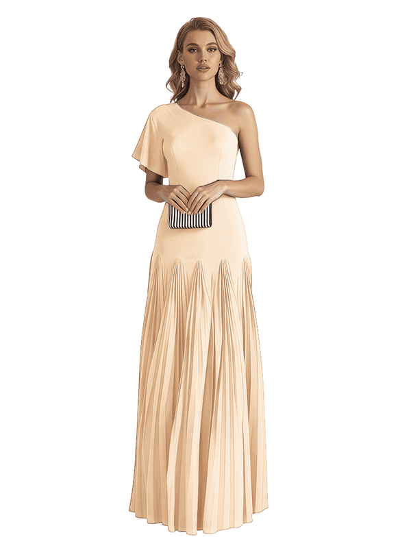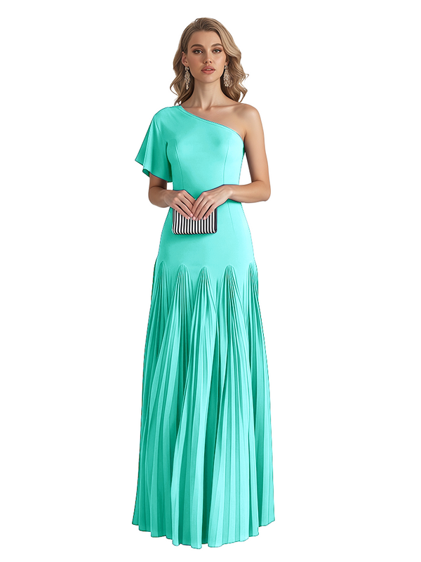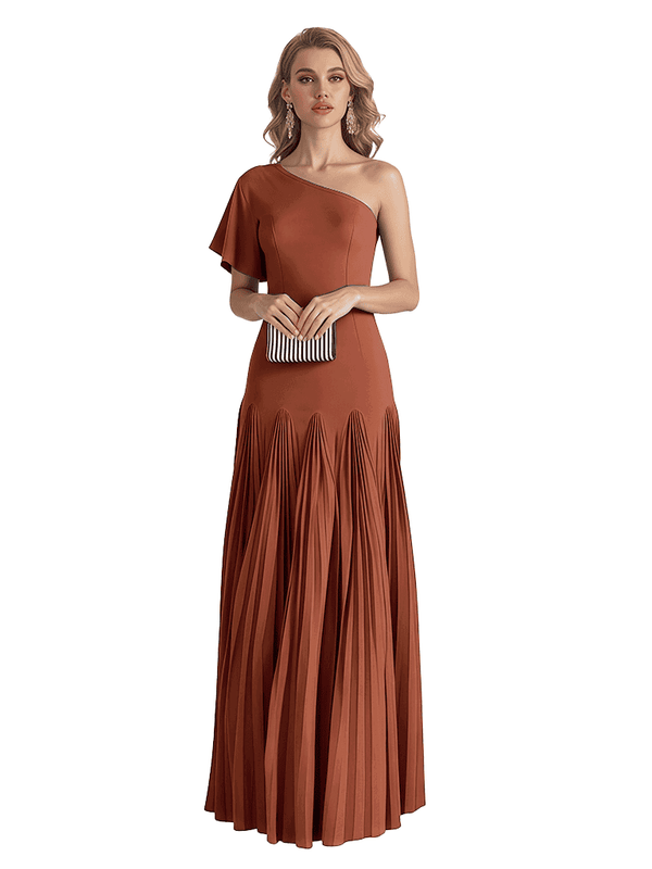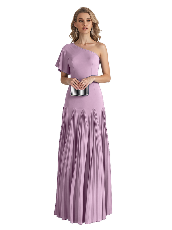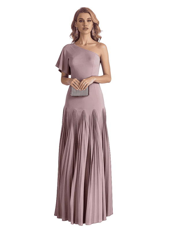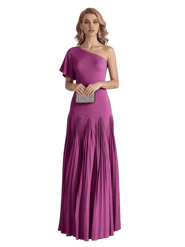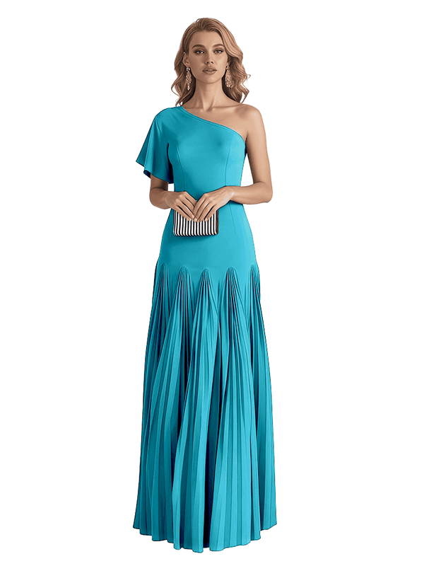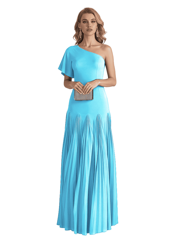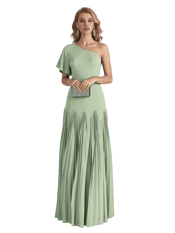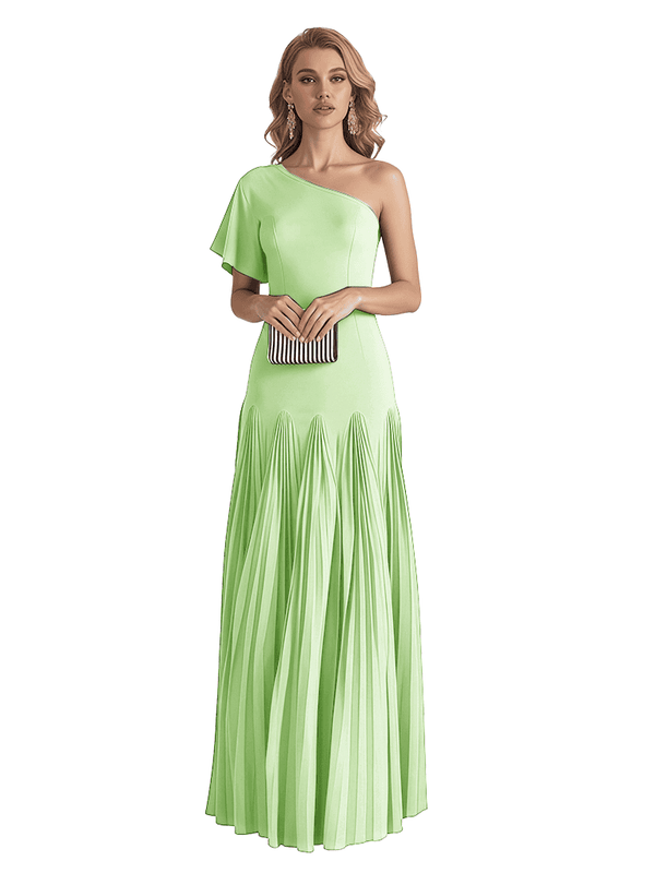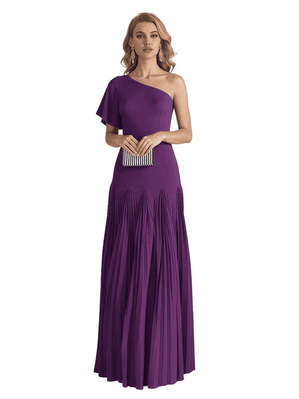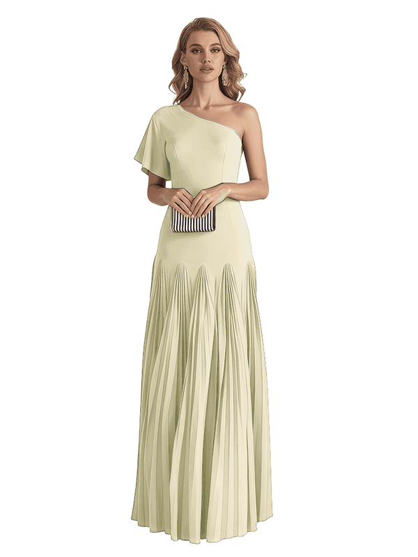 Elegant One Shoulder Flutter Sleeve Chiffon A-line Long Mother of The Bride Dresses- ChicSew