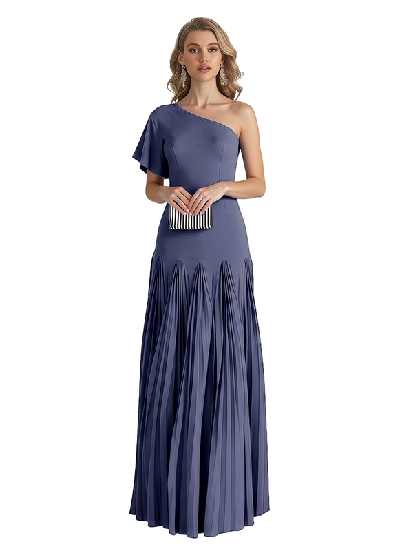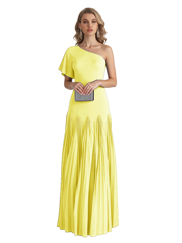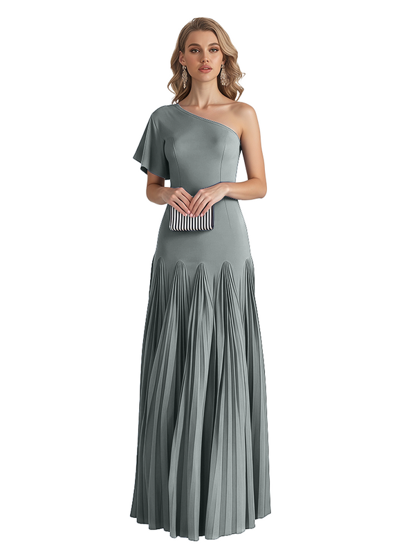 Elegant One Shoulder Flutter Sleeve Chiffon A-line Long Mother of The Bride Dresses