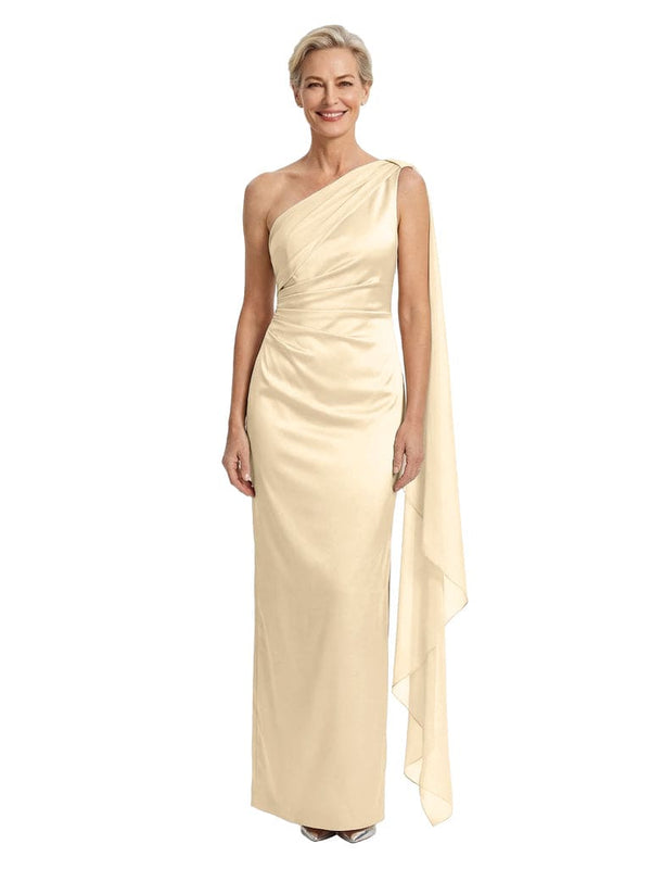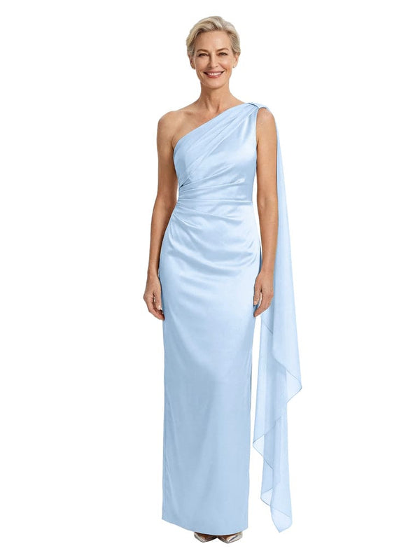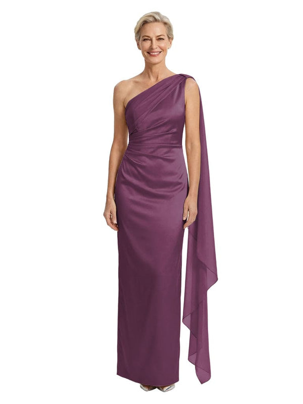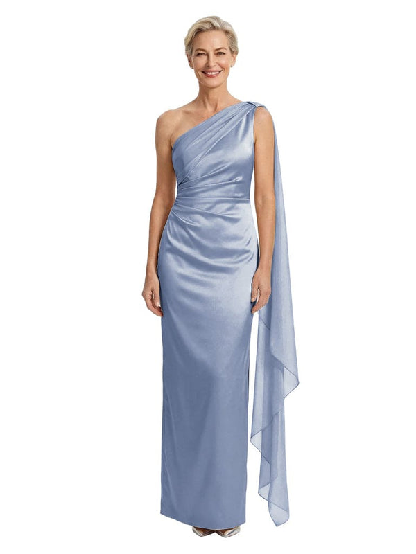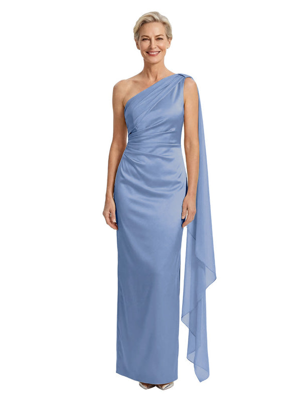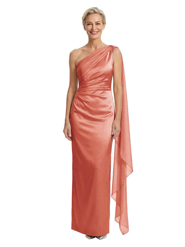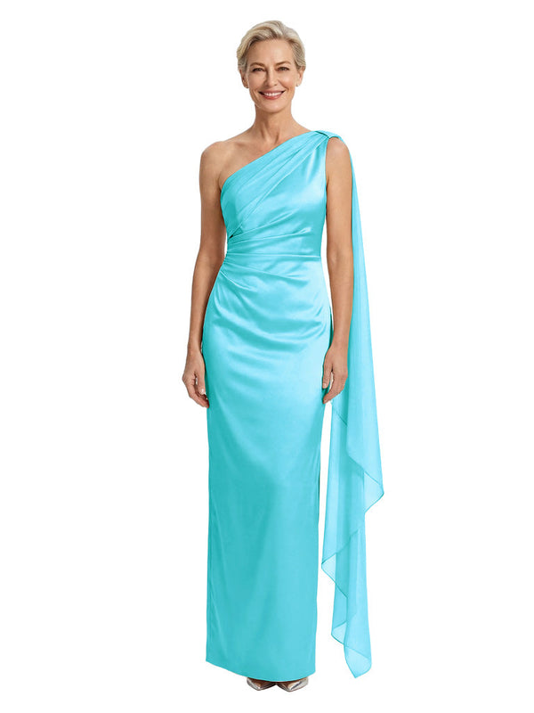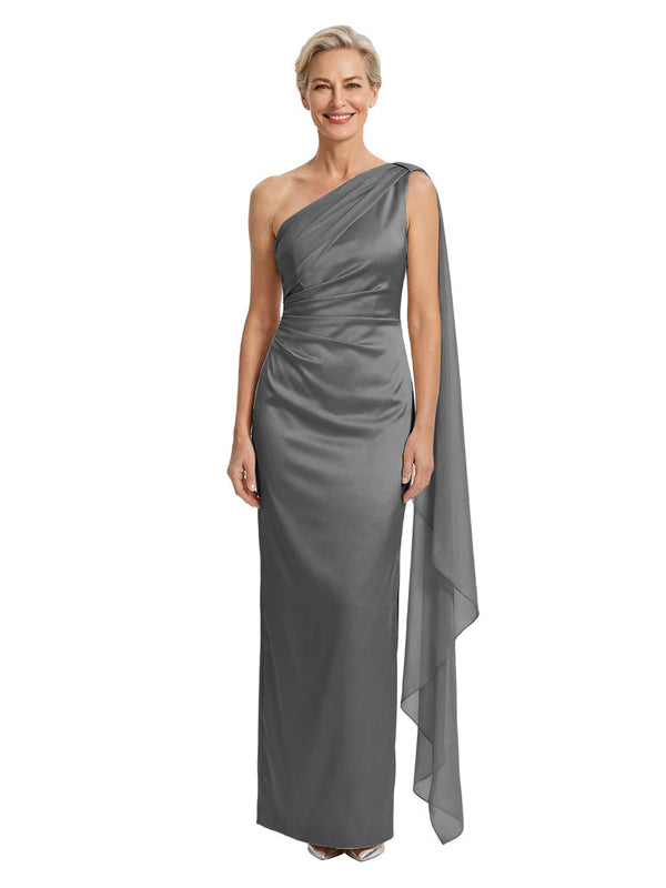 Elegant One Shoulder Ruched Satin Maxi Mother of The Groom Dress