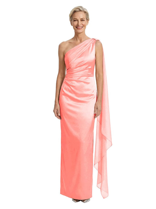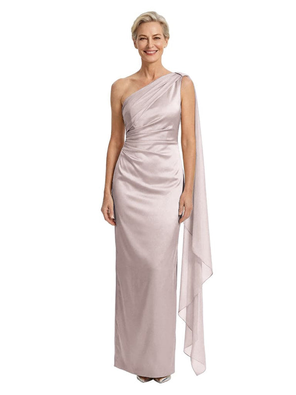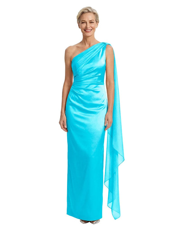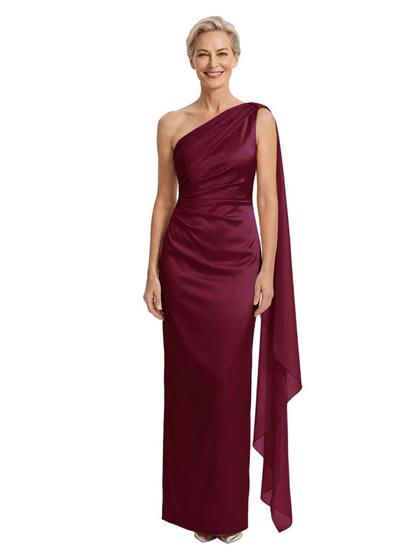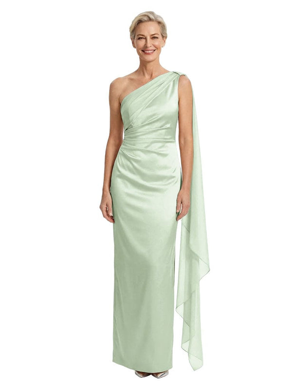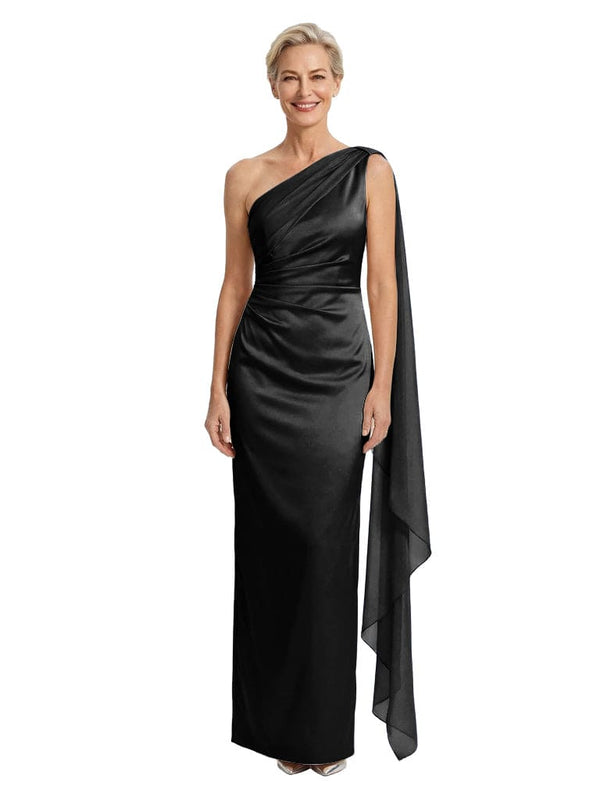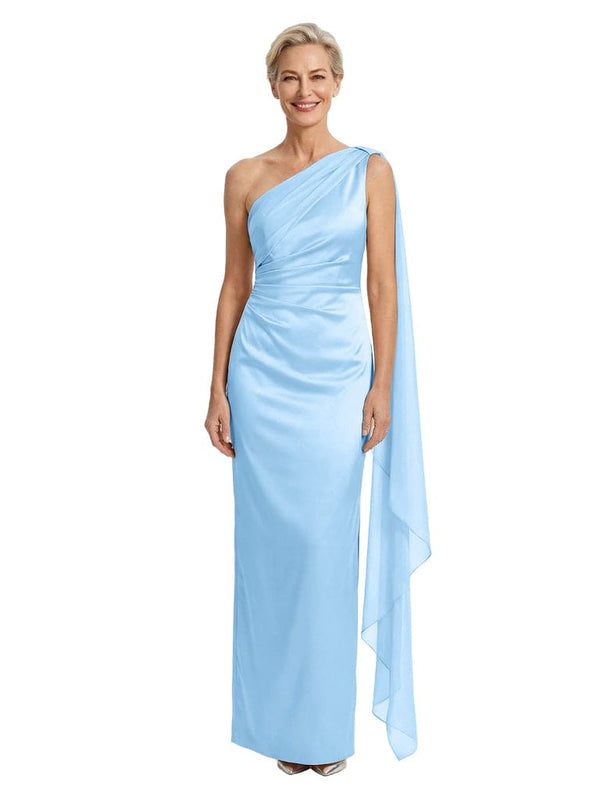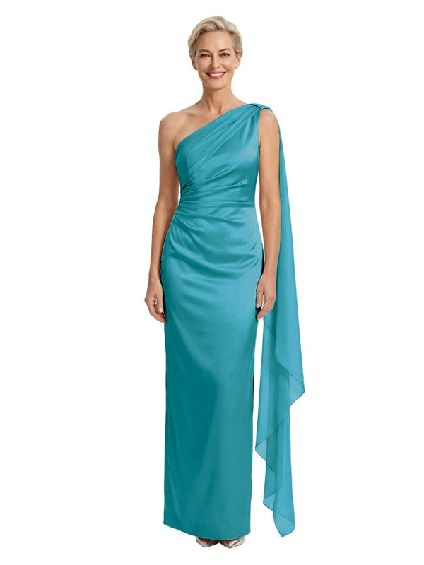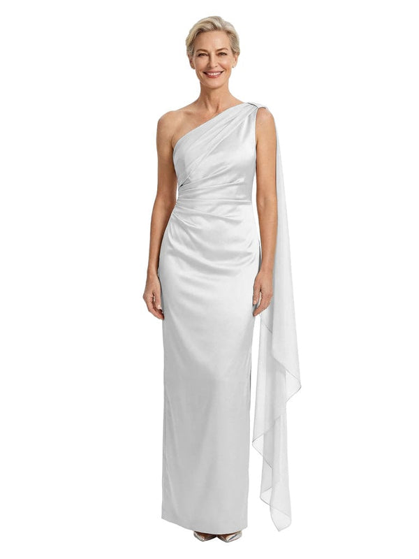 Elegant One Shoulder Ruched Satin Maxi Mother of The Groom Dress
