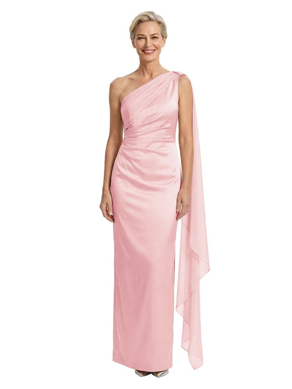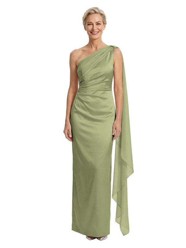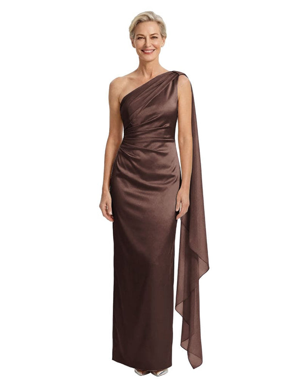Elegant One Shoulder Ruching Sleeveless Satin Mother of The Groom Dress - Chicsew