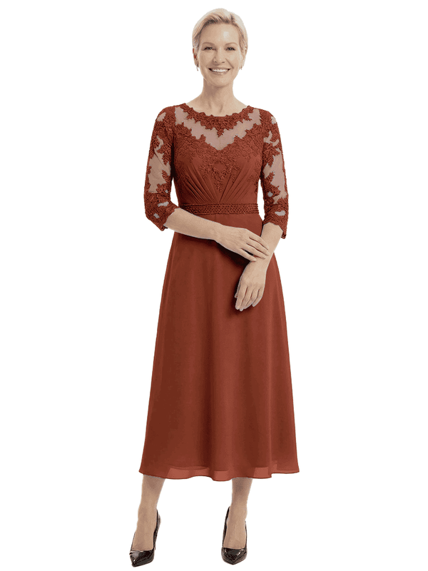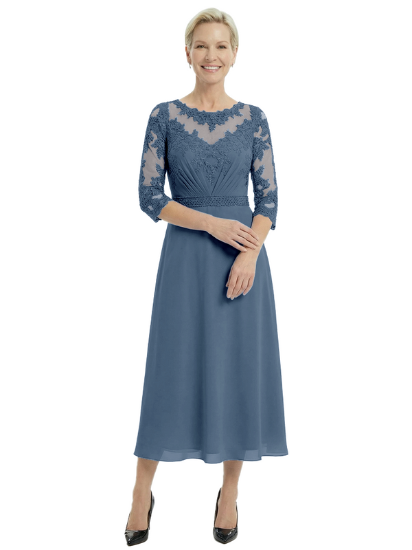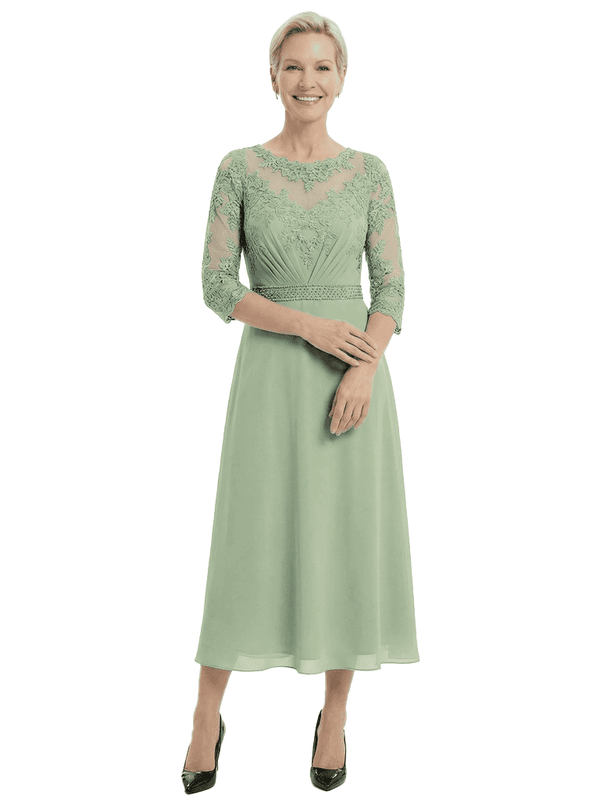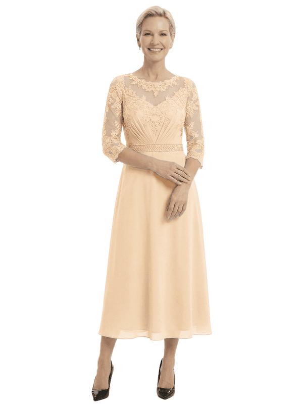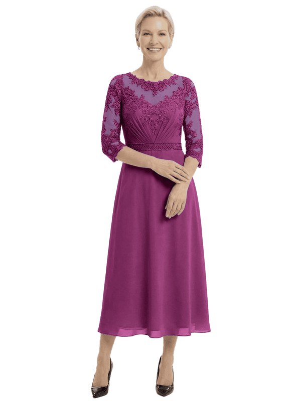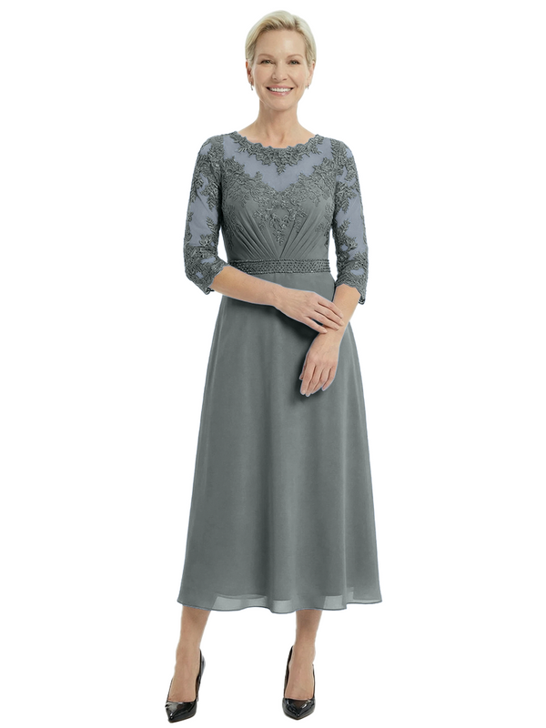 Sophisticated Lace Chiffon Mother Of The Groom Dress Half Sleeves Tea-Length Gown - ChicSew