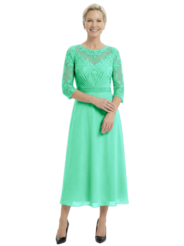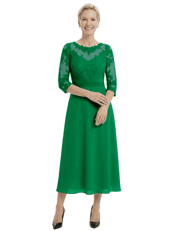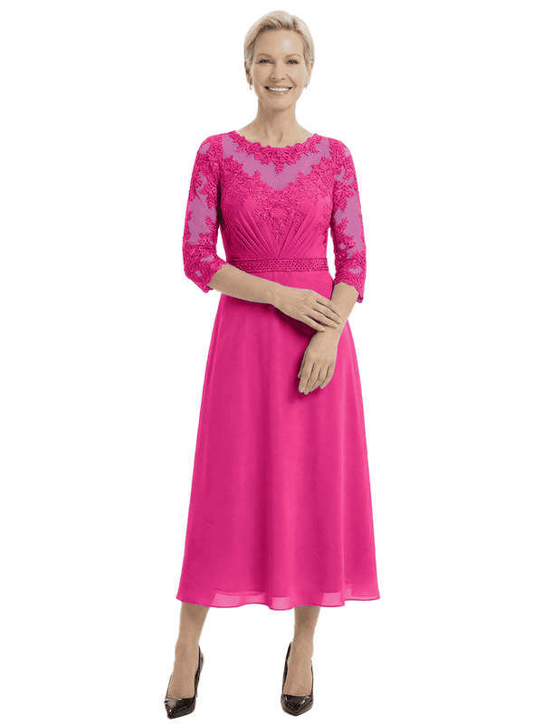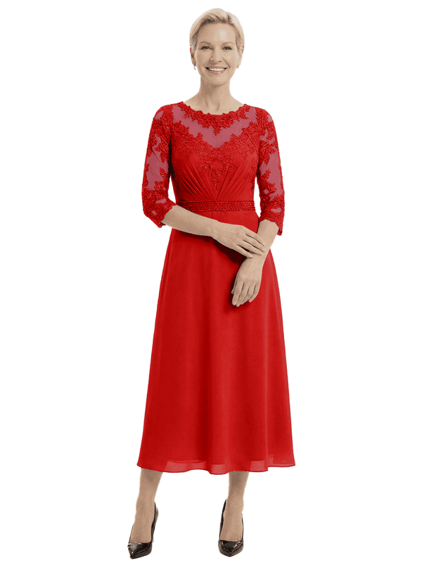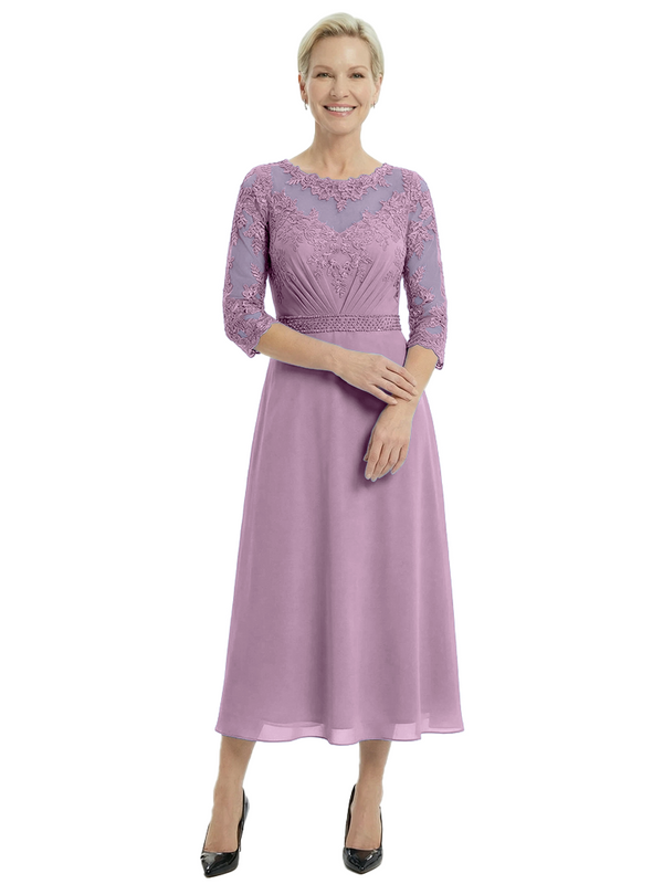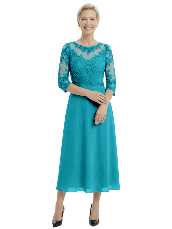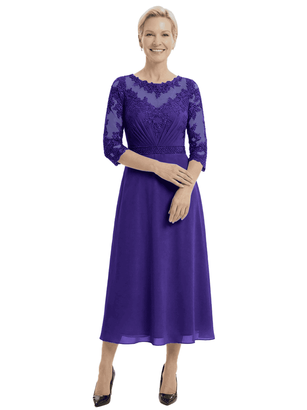 Sophisticated Lace Chiffon Mother Of The Groom Dress Half Sleeves Tea-Length Gown - ChicSew