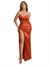 Modern Sweetheart Silky Satin Mermaid Maxi Long Bridesmaid Dresses Side Slit
