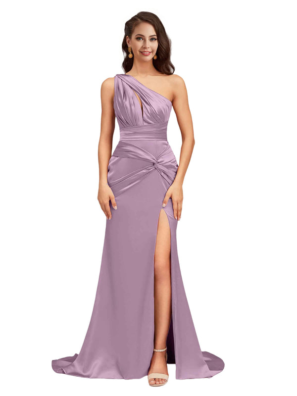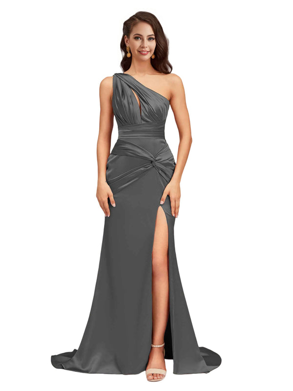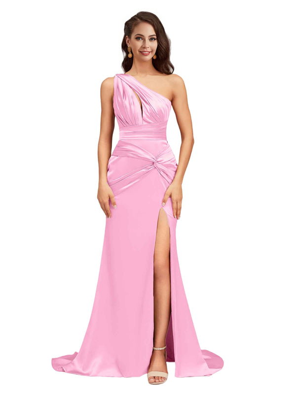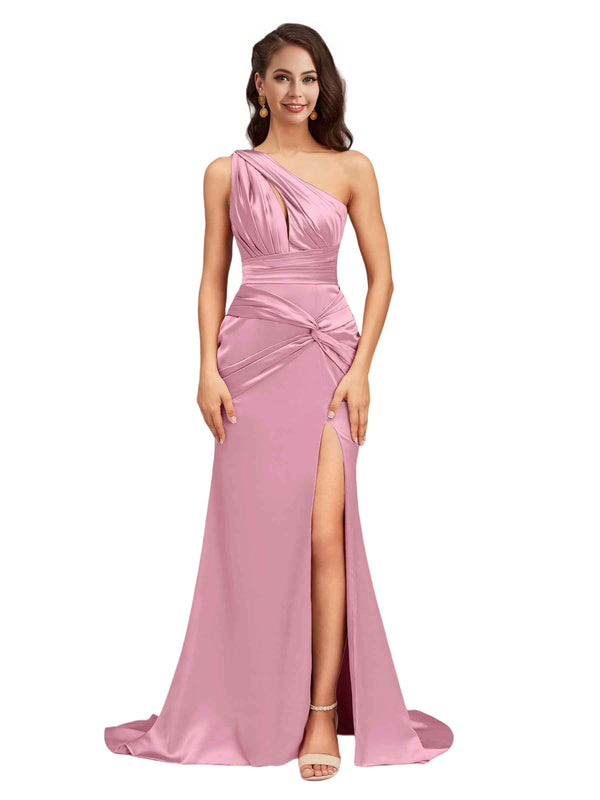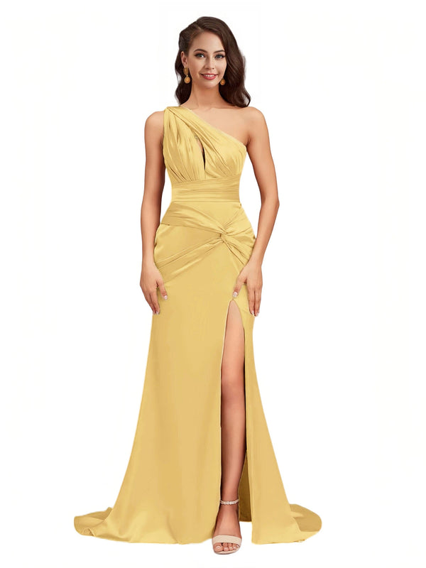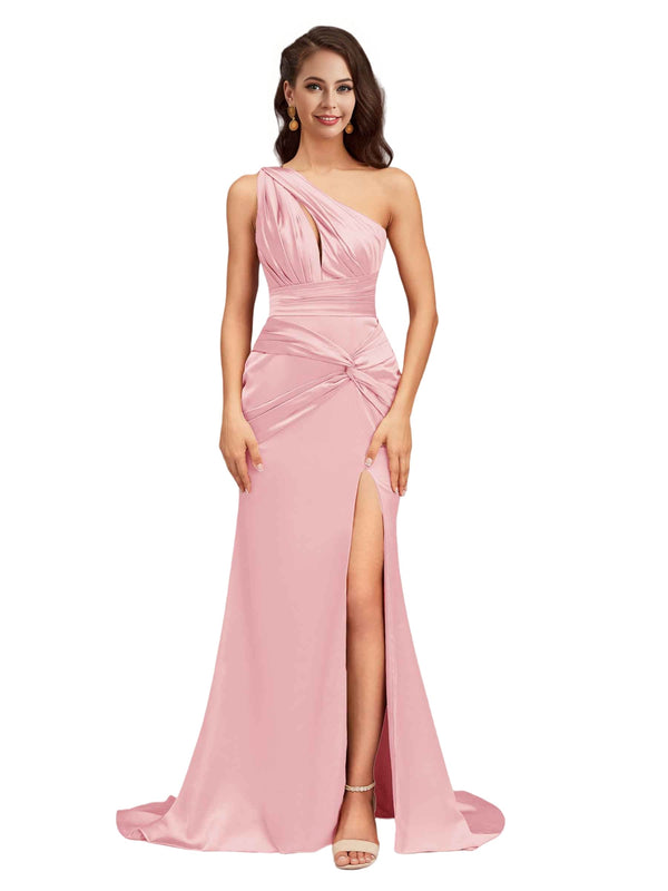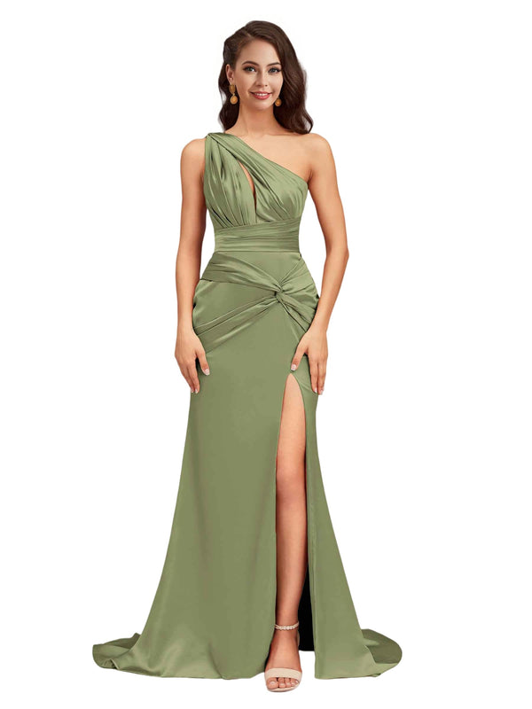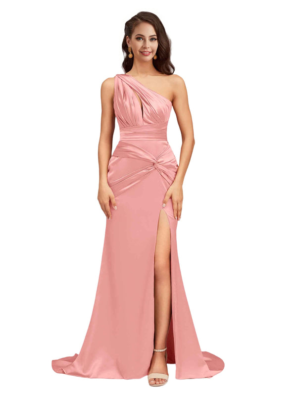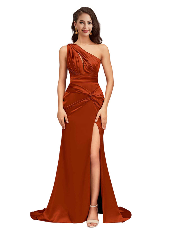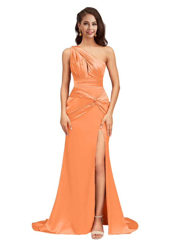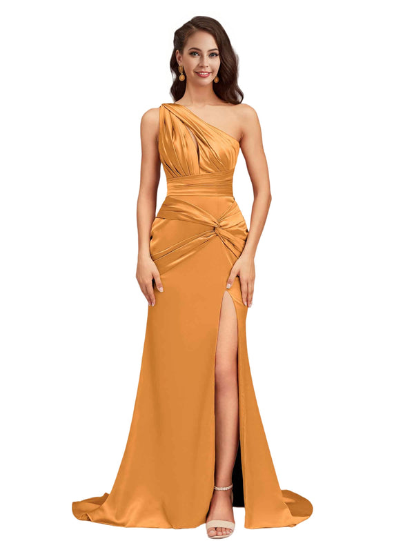 Sexy Mermaid One Shoulder Side Slit Beauty Long Soft Satin Bridesmaid Dresses Online