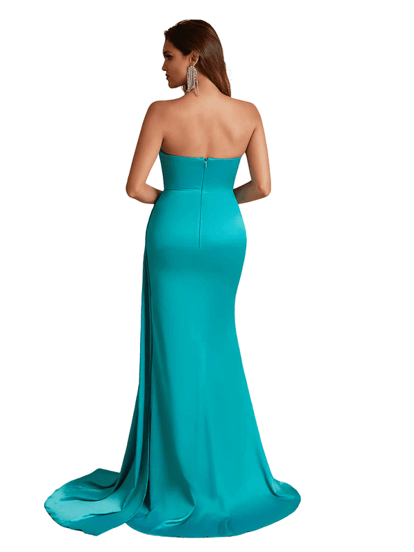 Sexy Sweetheart Mermaid Side Split Satin Pretty Long Bridesmaid Dresses - ChicSew