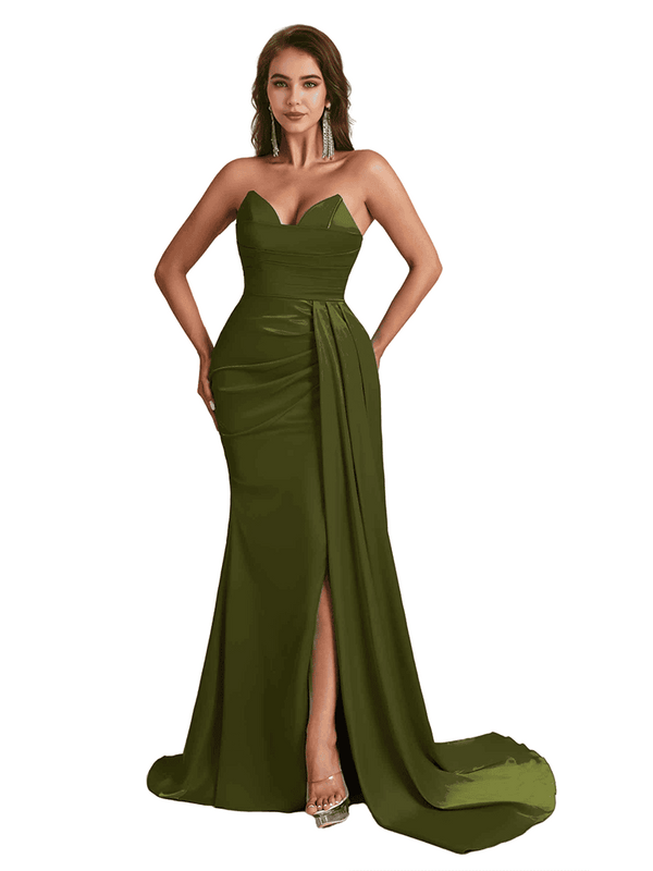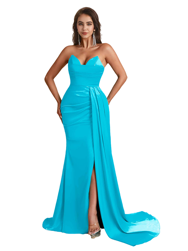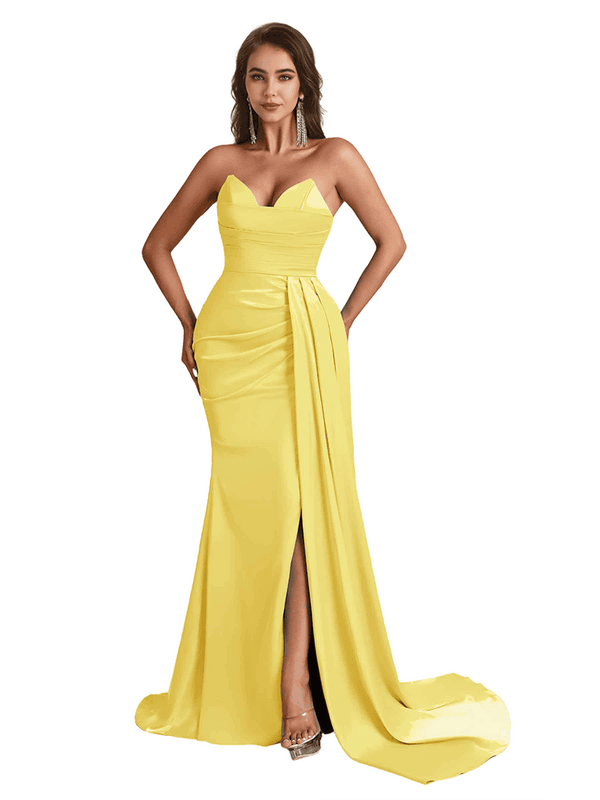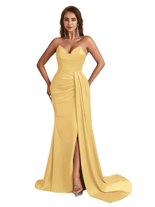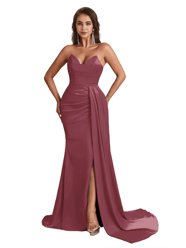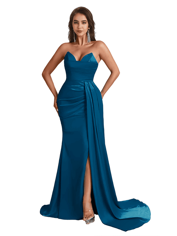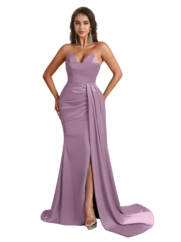 Sexy Sweetheart Mermaid Side Slit Satin Long Bridesmaid Dresses Online