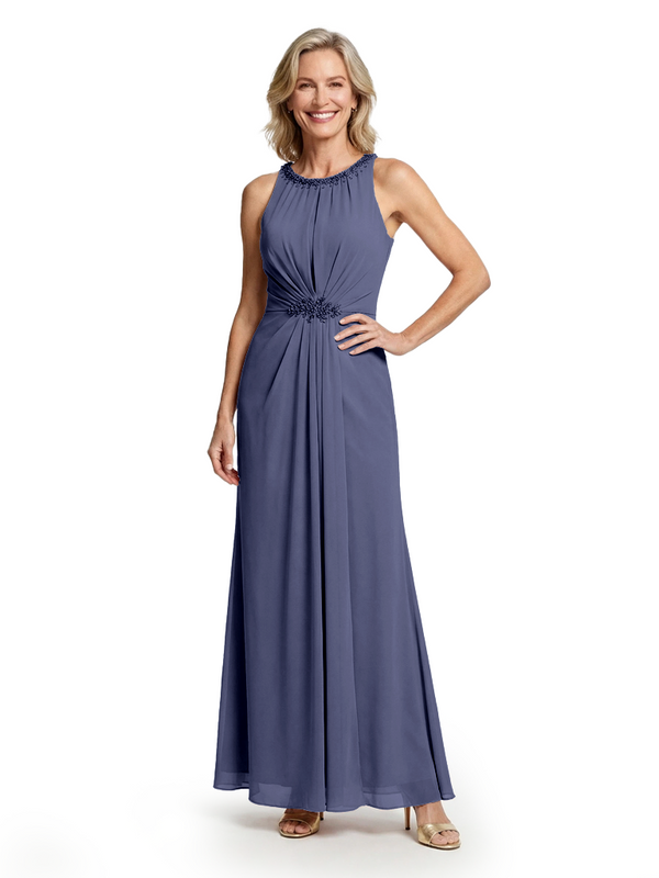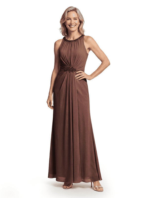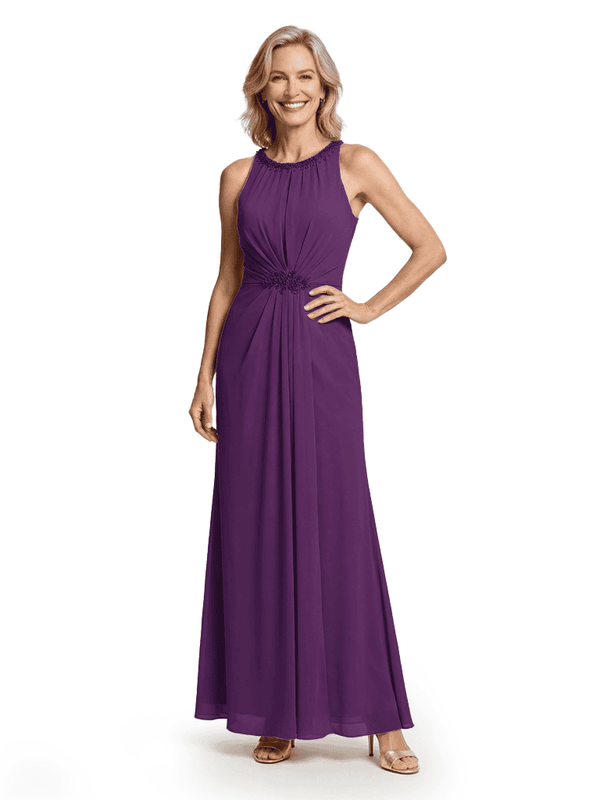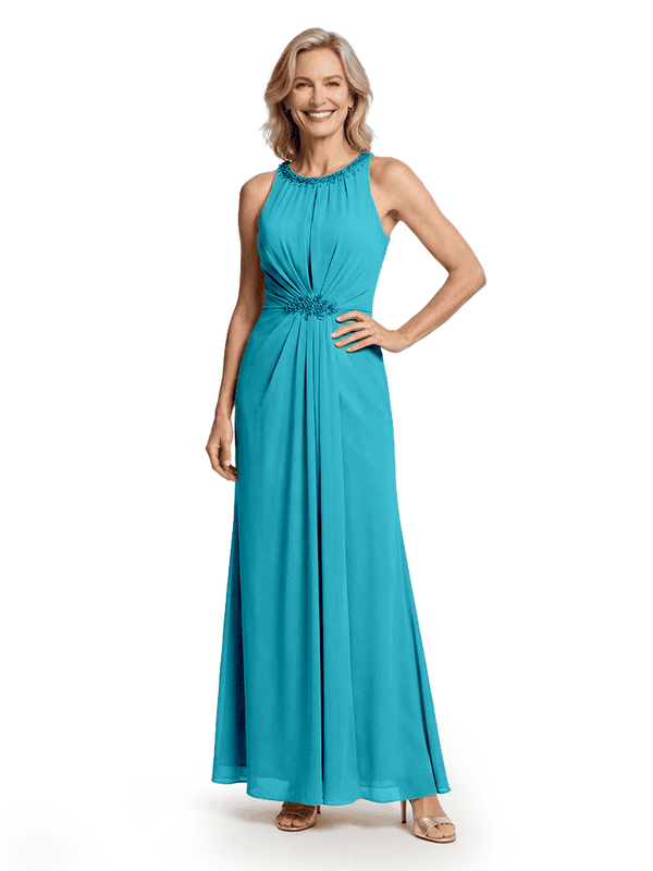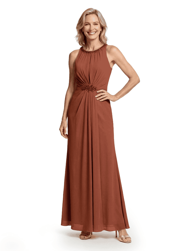 Fancy Halter Sleeveless Lace Appliques Chiffon Long Mother of the Bride dresses - ChicSew
