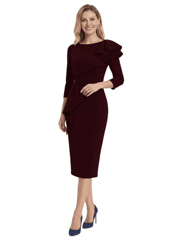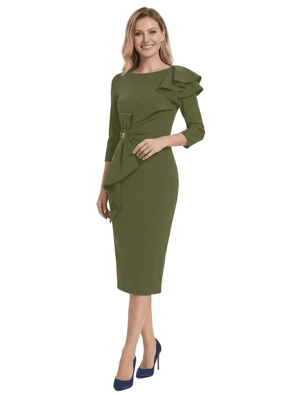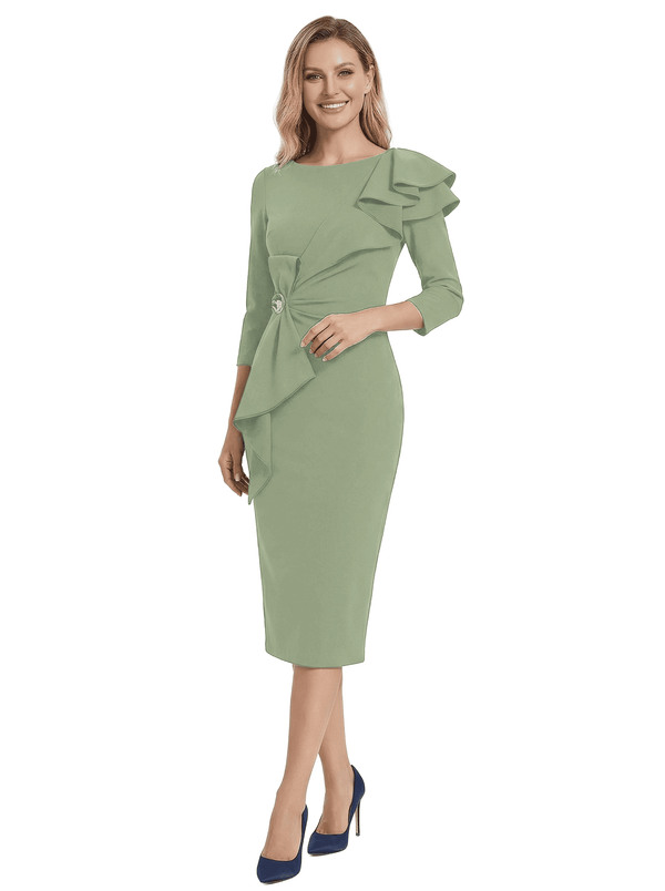 Chicsew Elegant Jewel Ruffles Sheath Evening Gown Tea-Length Mother Of The Groom Dresses - ChicSew