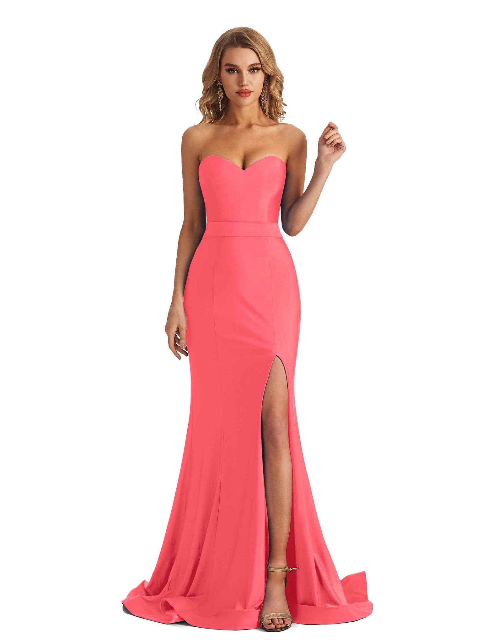 Sexy Mermaid Sweetheart Side Slit Stretch Jersey Long Bridesmaid Dresses UK £106.99