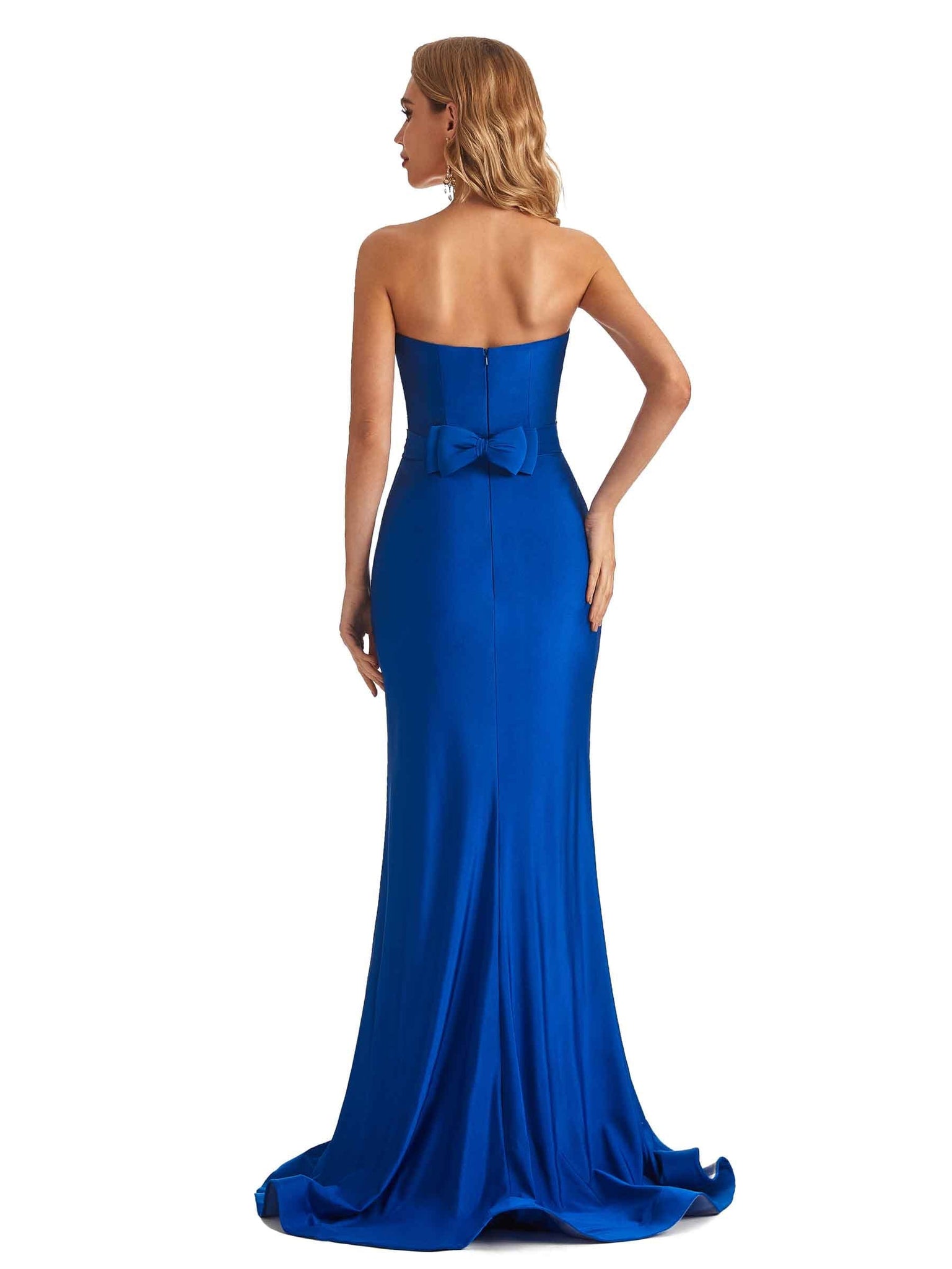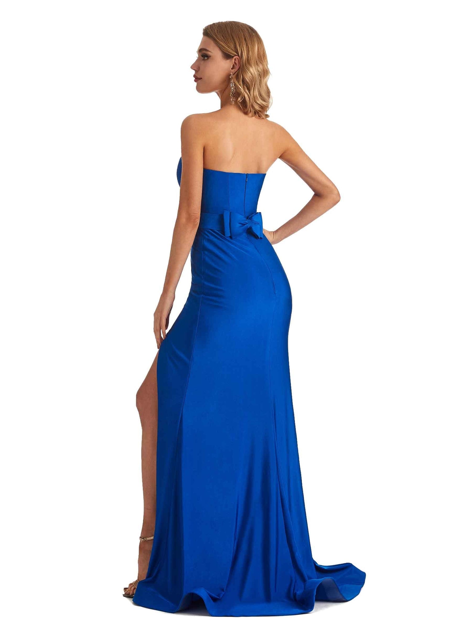 Sexy Mermaid Sweetheart Side Slit Stretch Jersey Long Bridesmaid Dresses UK
