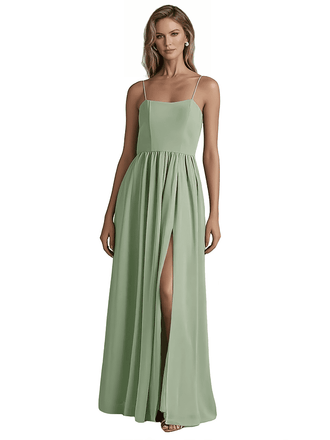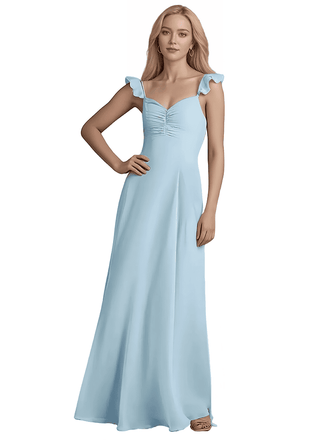 Chiffon Shoulder Strap A-line Floor-Length Bridesmaid Dresses