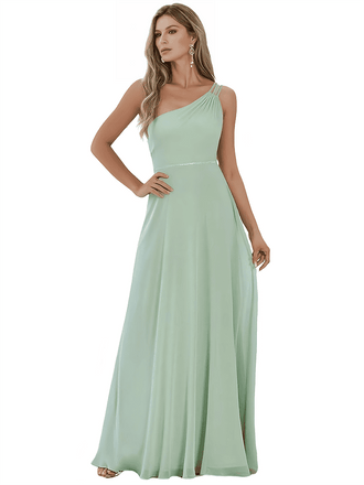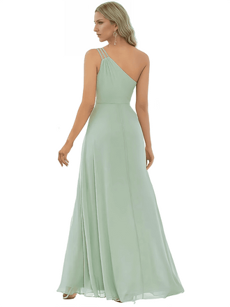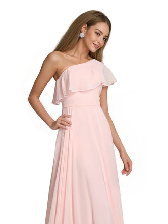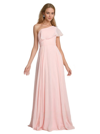 Chiffon One-Shoulder A-line Floor-Length Long Bridesmaid Dresses