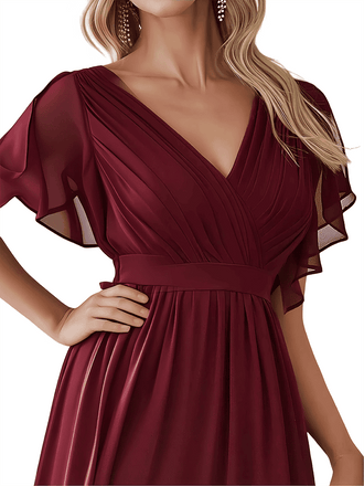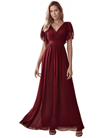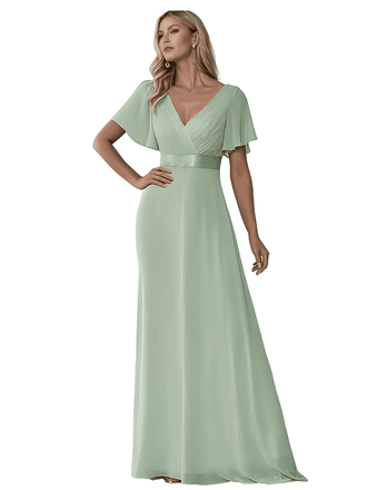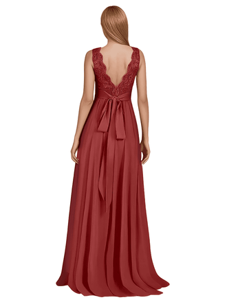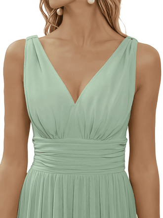 V-Neck Chiffon A-line Floor-Length Long Bridesmaid Dresses