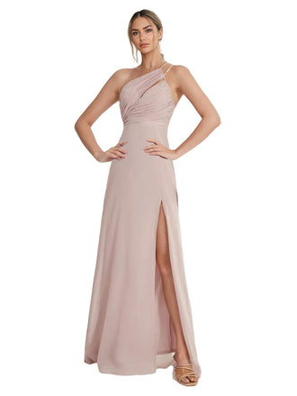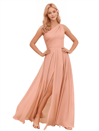 Chiffon A-line One-Shoulder Long Bridesmaid Dresses Online