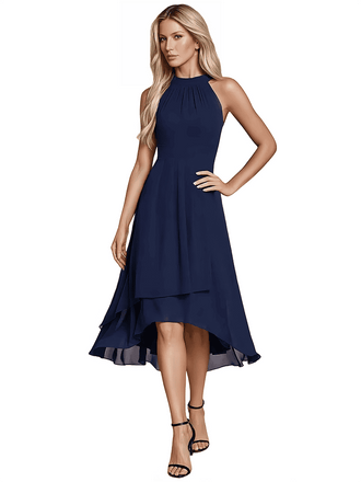 Halter A-line Knee-Length Chiffon Short Bridesmaid Dresses