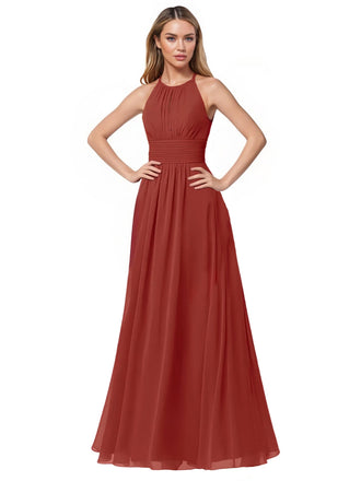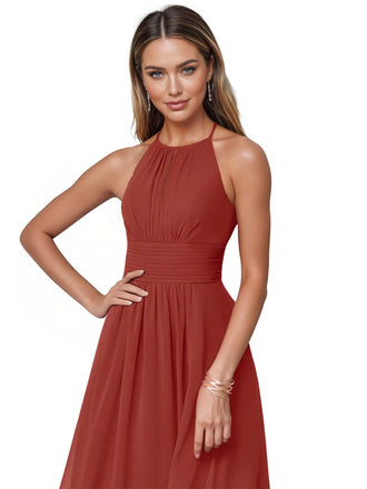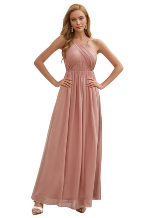 Elegant Halter Chiffon A-line Sleeveless Women's Maxi Bridesmaid Dresses UK