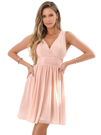 Cheap A-line Chiffon V-Neck Sleeveless Short Bridesmaid Dresses