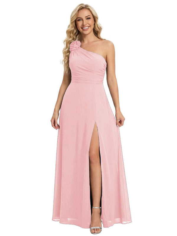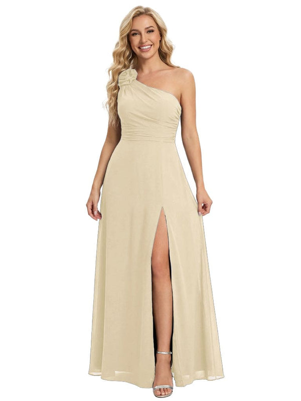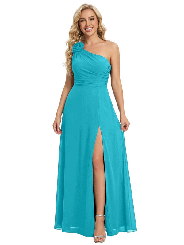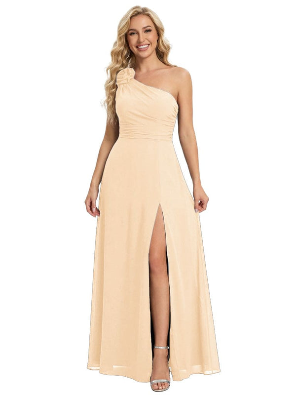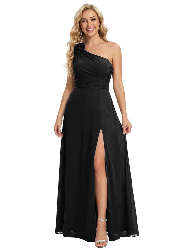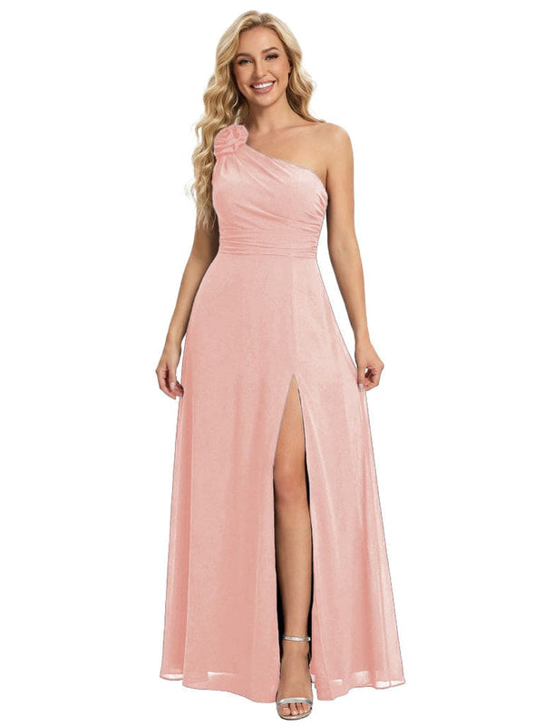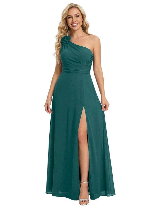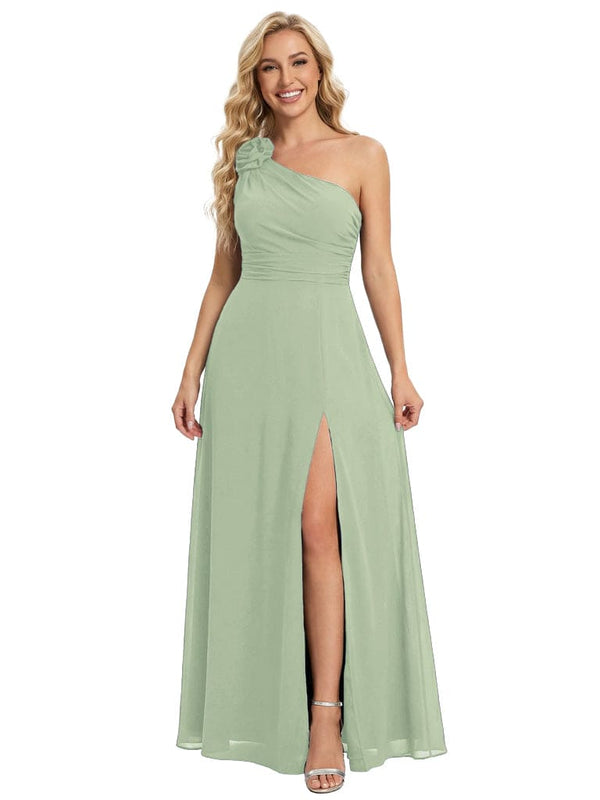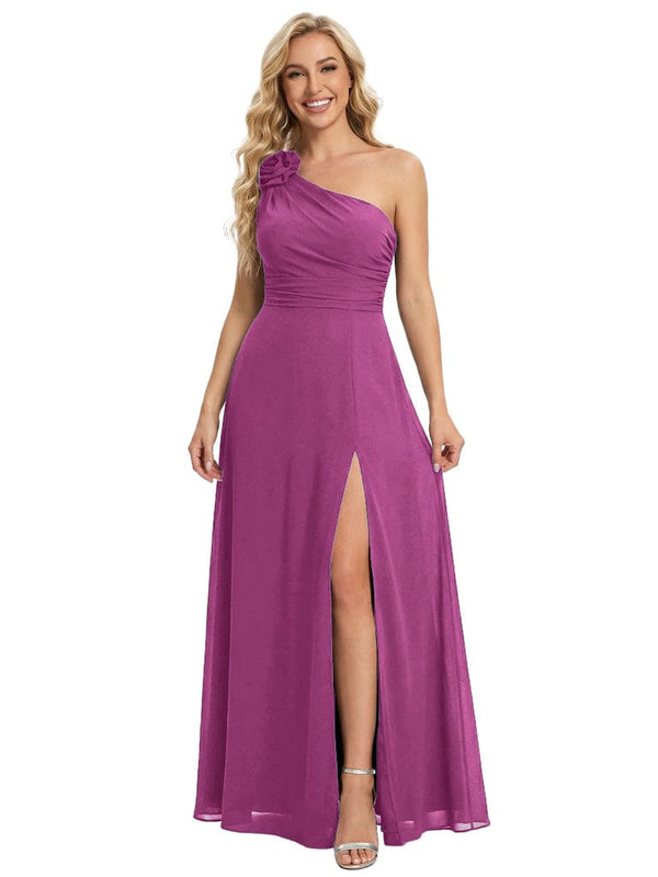 Elegant One Shoulder Side Slit Chiffon Mother Of The Bride Gown Formal Wedding Attire - ChicSew