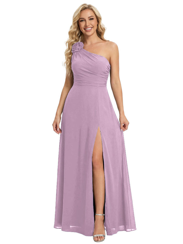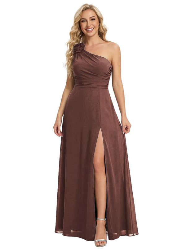 Elegant One Shoulder Side Slit Chiffon Mother Of The Bride Gown Formal Wedding Attire