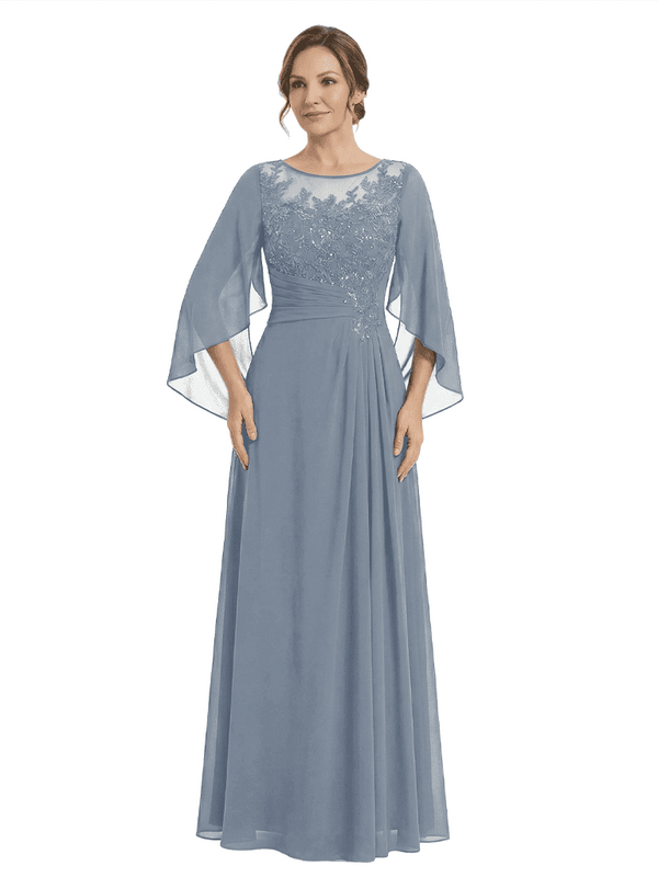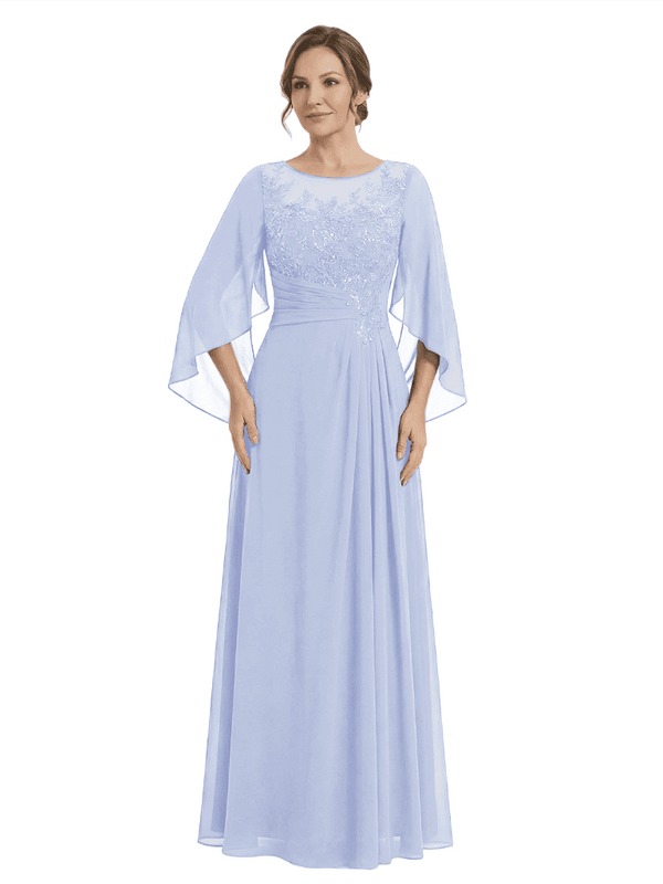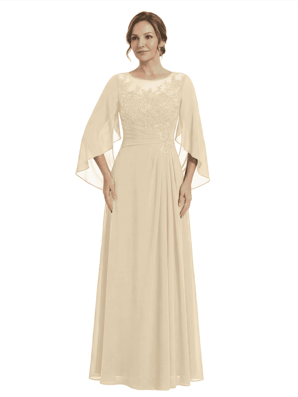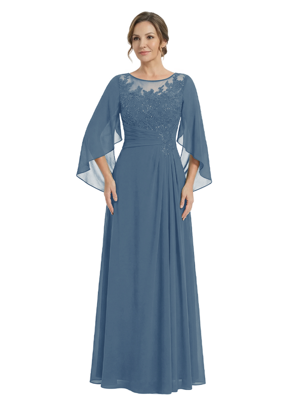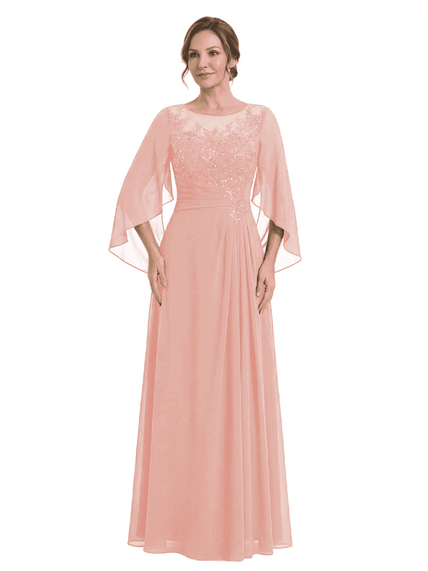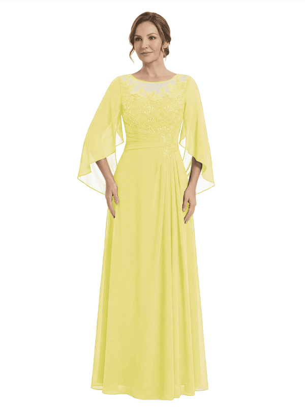 Elegant Cascading Ruffles Cape Lace Chiffon A-Line Mother of The Bride Dresses