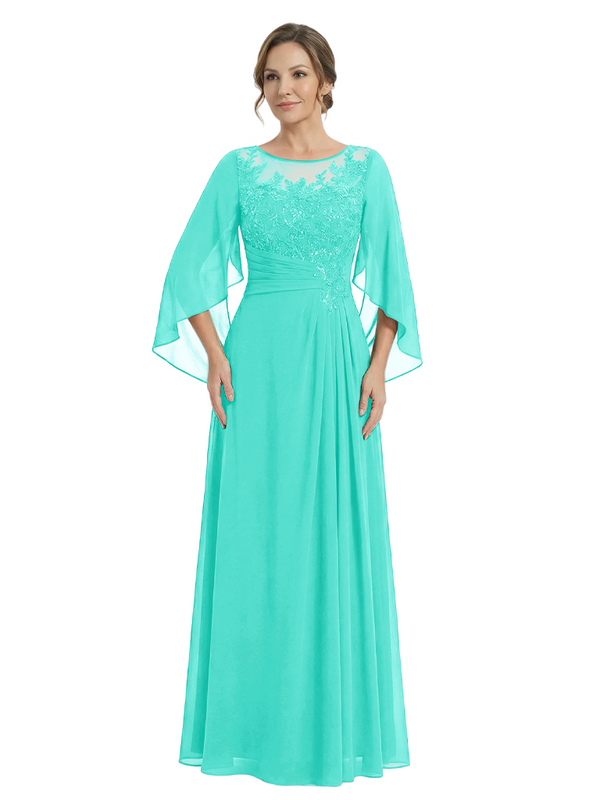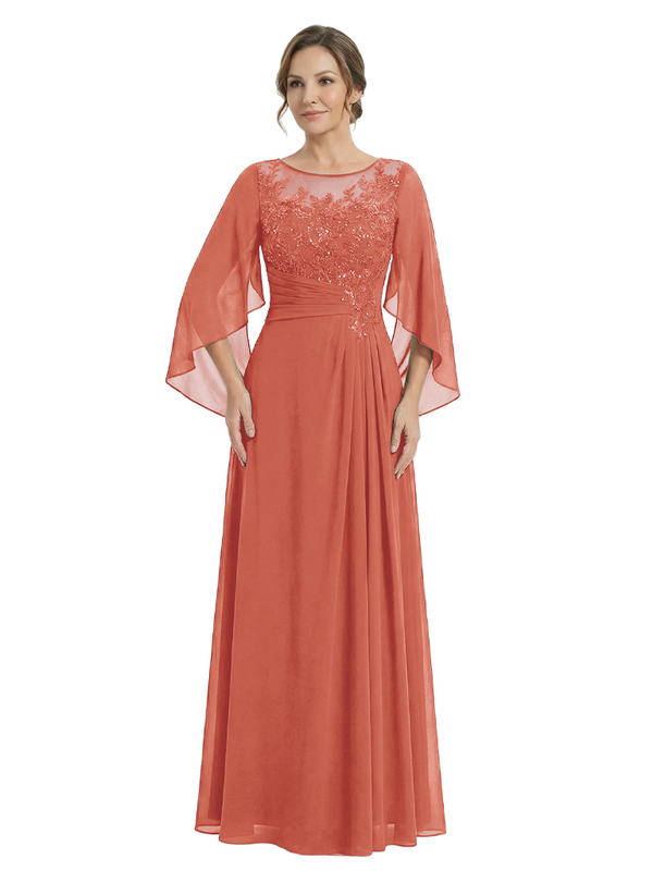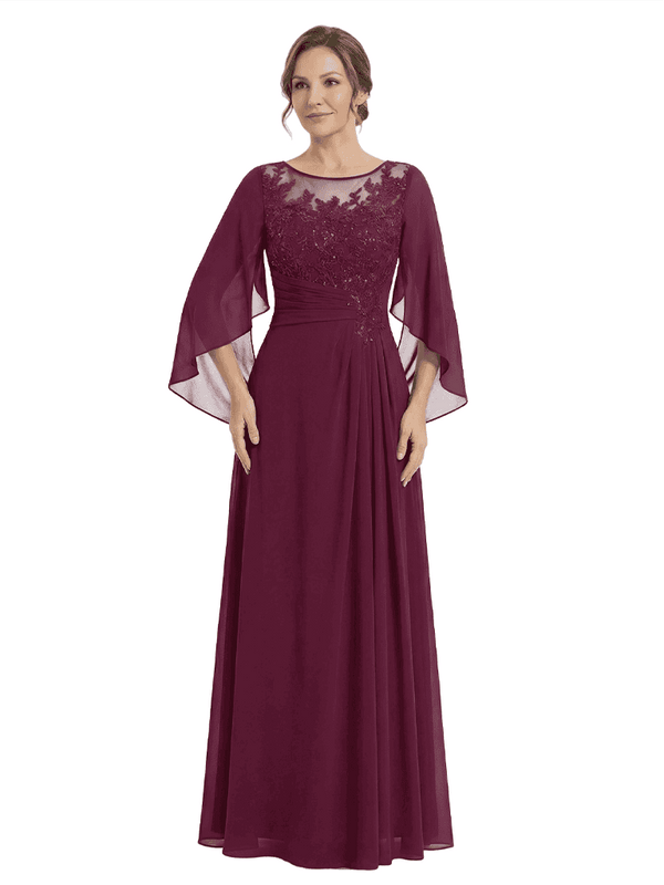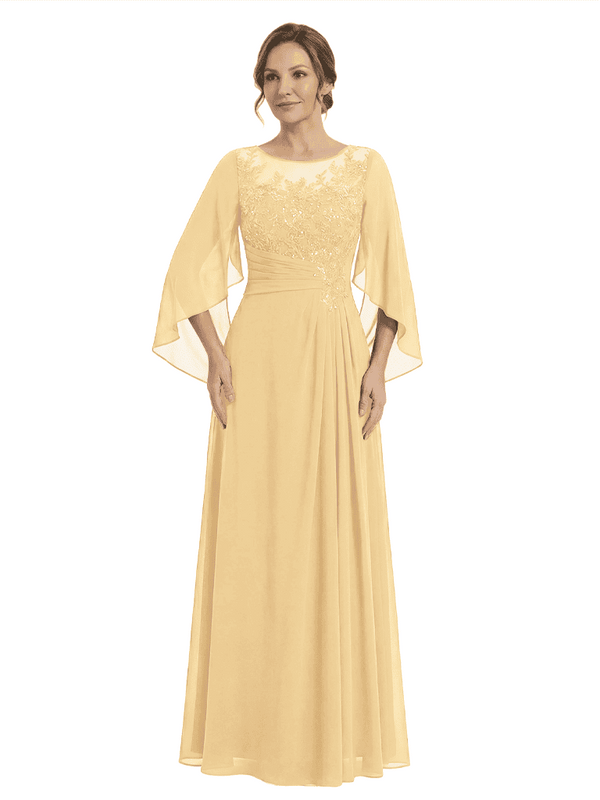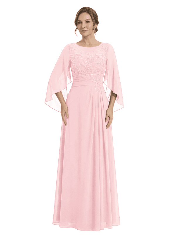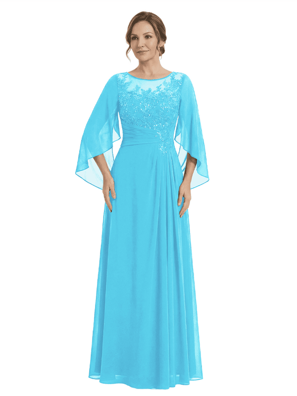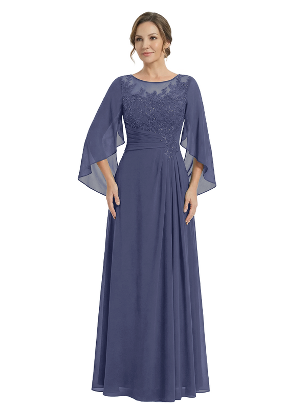 Elegant Cascading Ruffles Cape Lace Chiffon A-Line Mother of The Bride Dresses