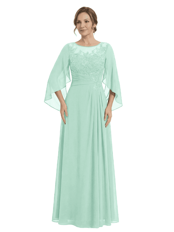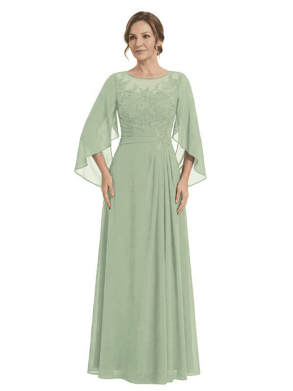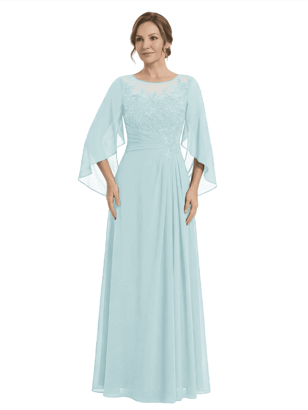 Elegant Short Sleeves Lace Chiffon A-Line Mother of The Bride Dresses - ChicSew