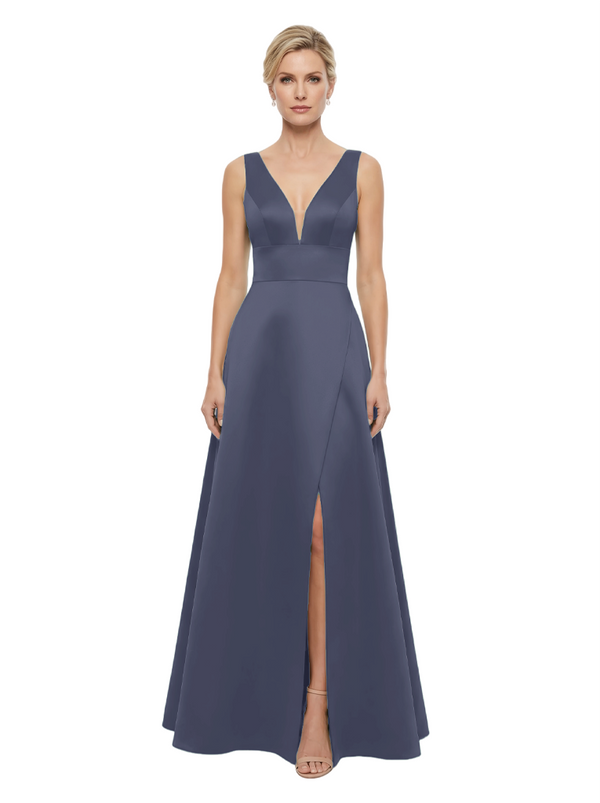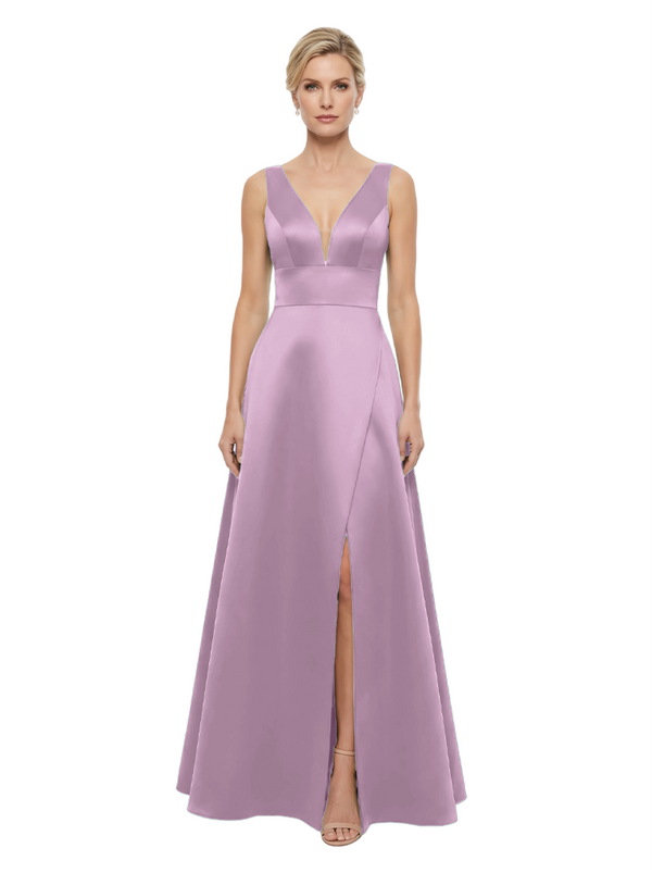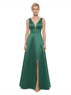 Elegant V-Neck Sleeveless Simple Satin A-Line Mother Of The Bride Dresses