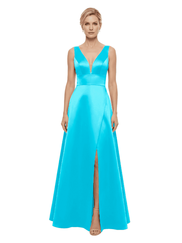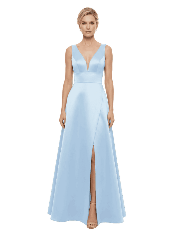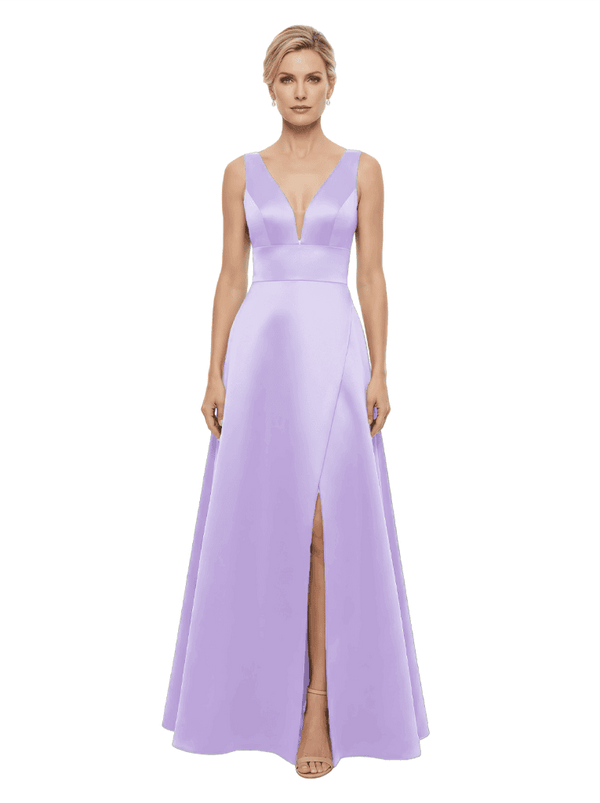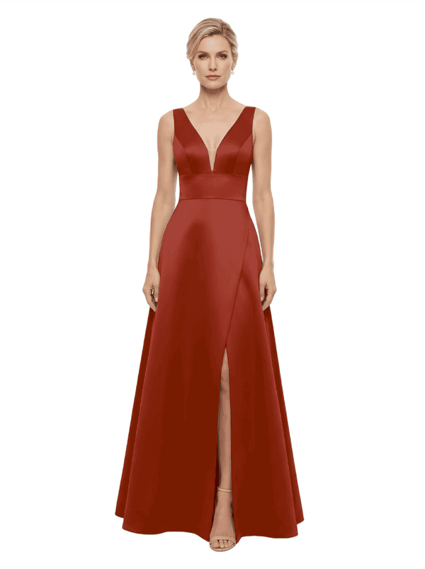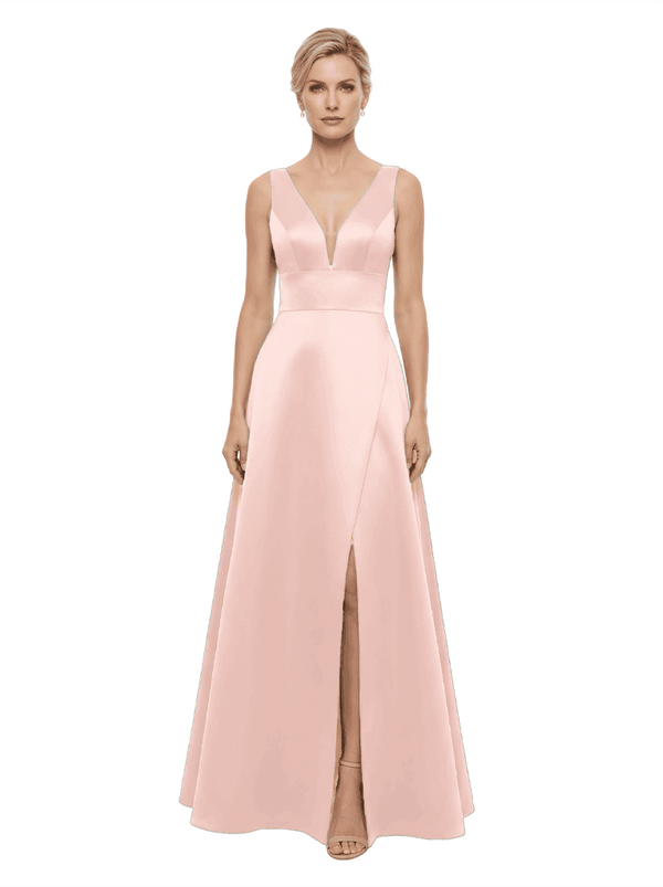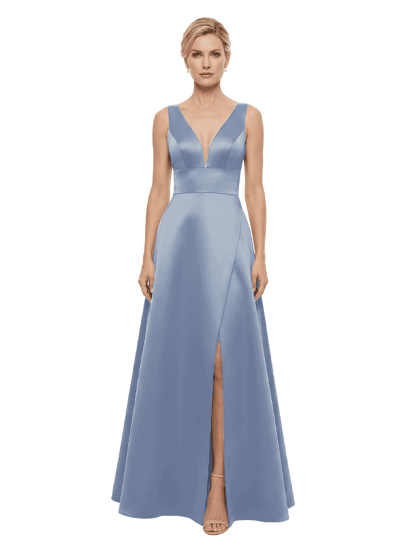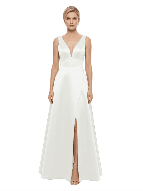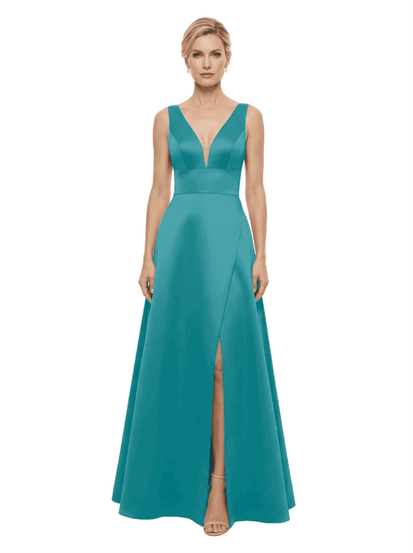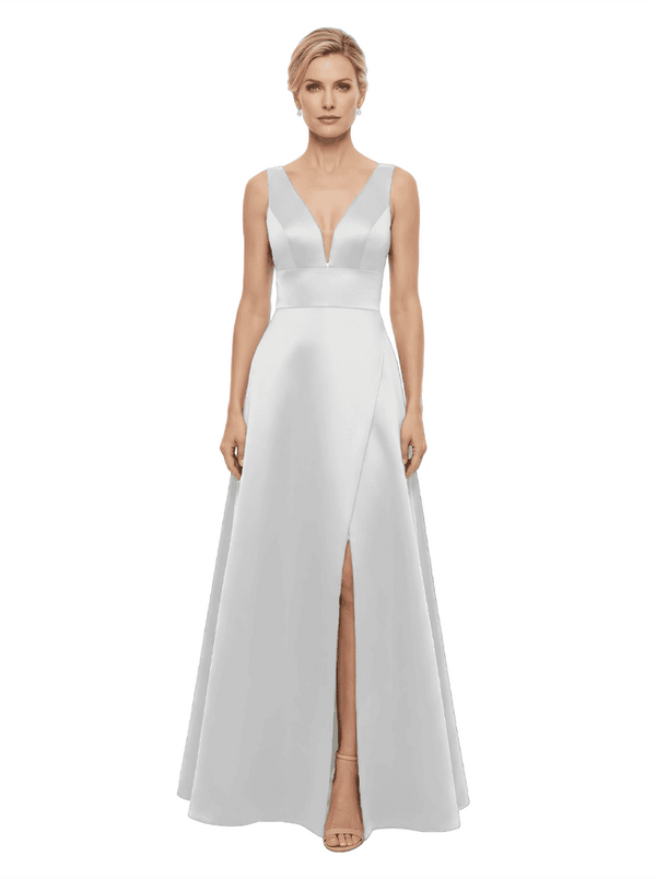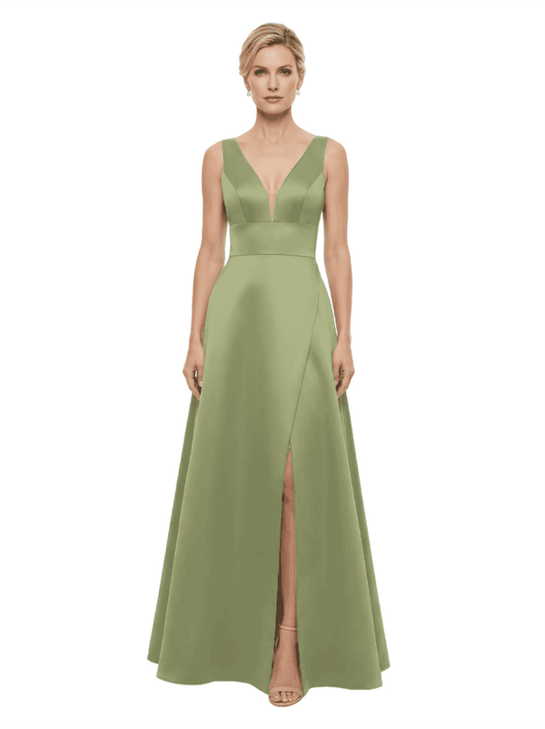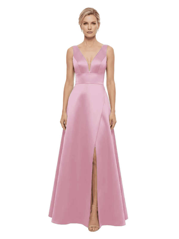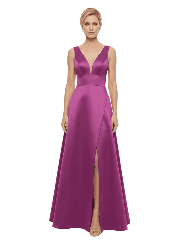 Elegant V-Neck Sleeveless Simple Satin A-Line Mother Of The Bride Dresses- ChicSew