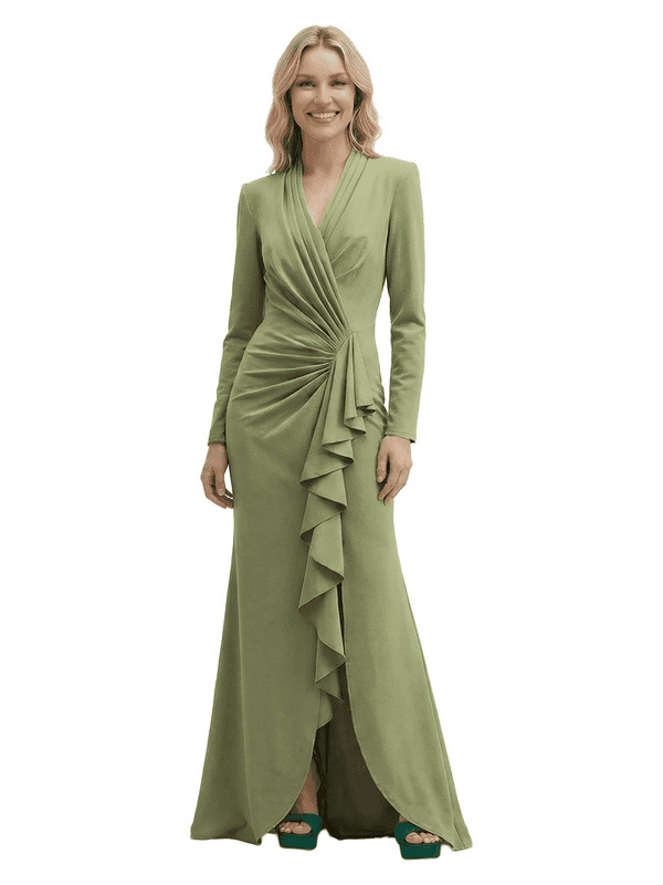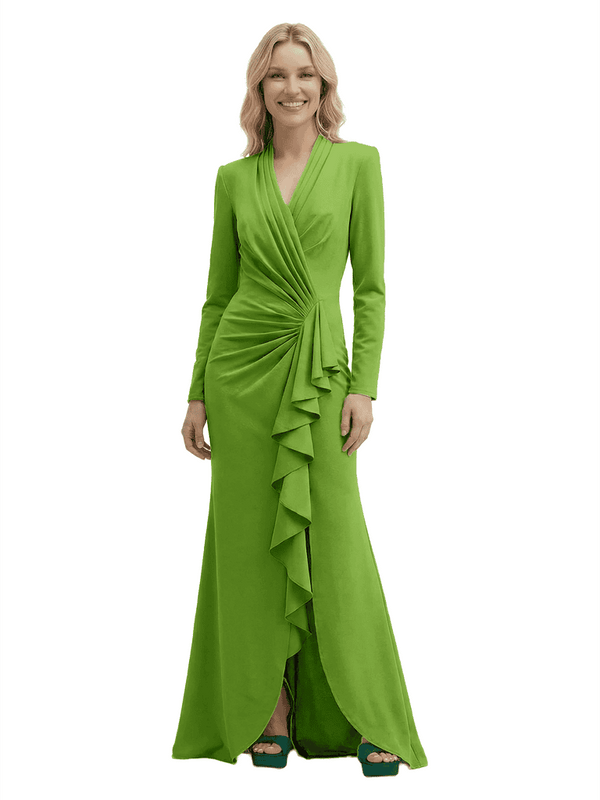 Embellishment: Front Slit, Ruffle, Ruching