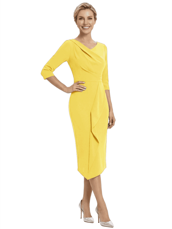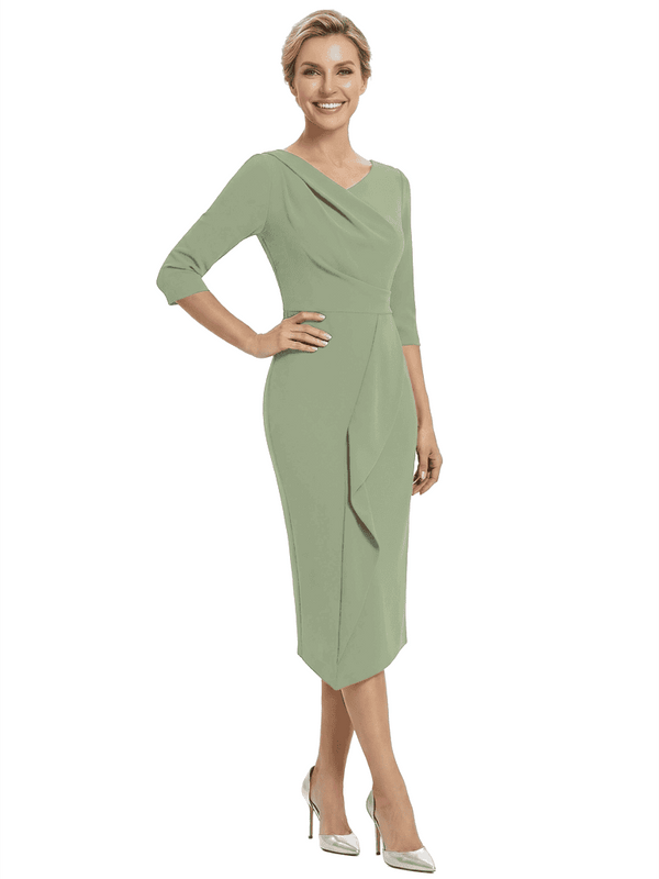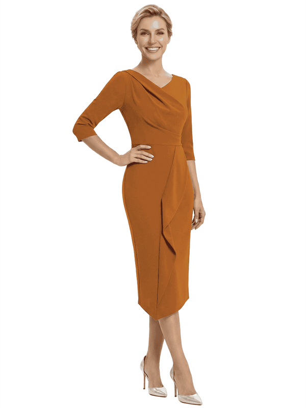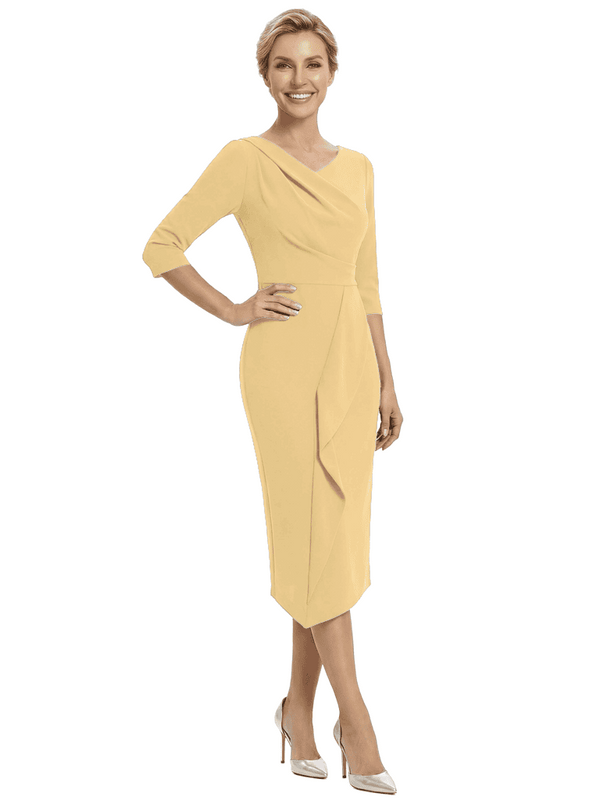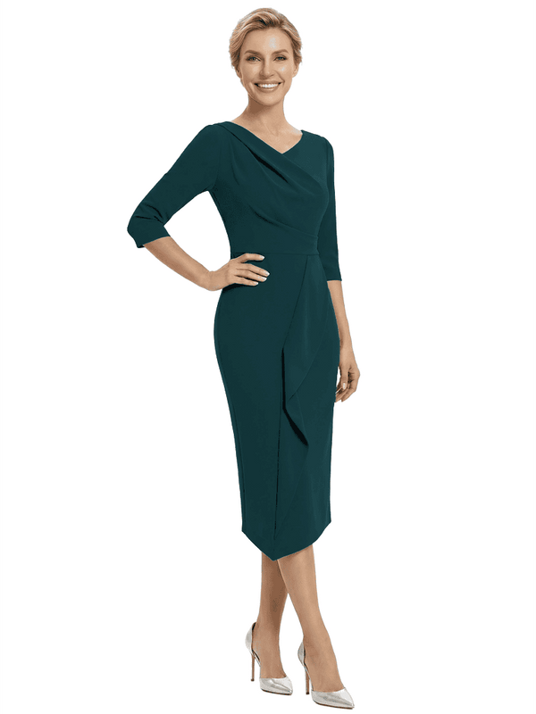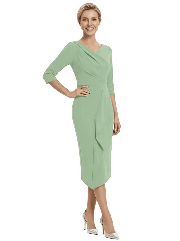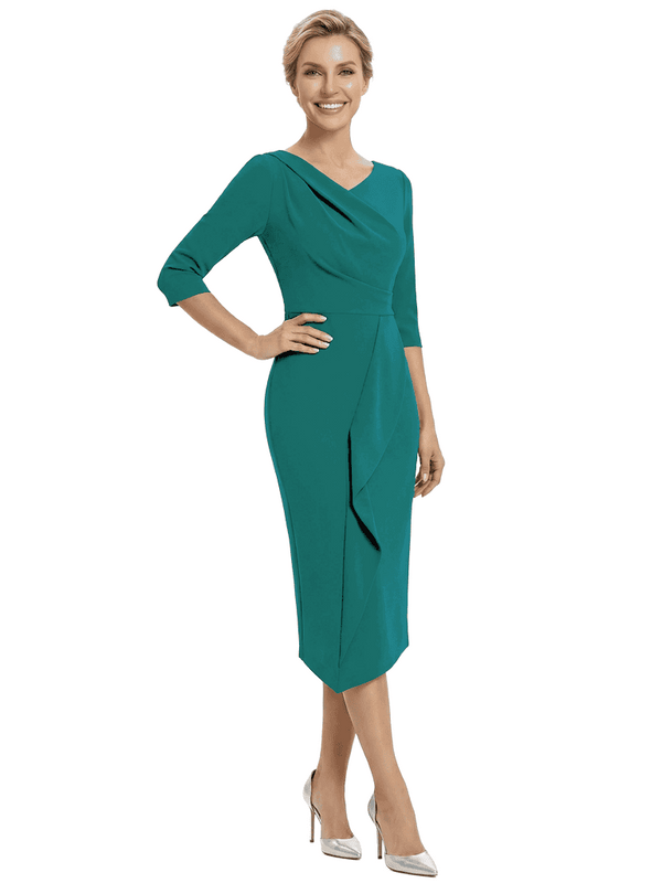 Chicsew Elegant V-Neck Ruffles Mermaid Evening Gown Tea-Length Mother Of The Groom Dresses
