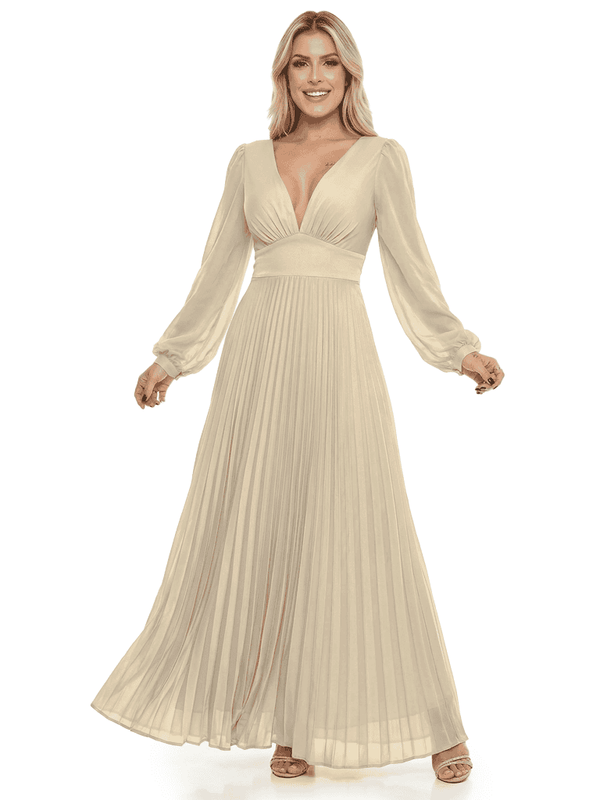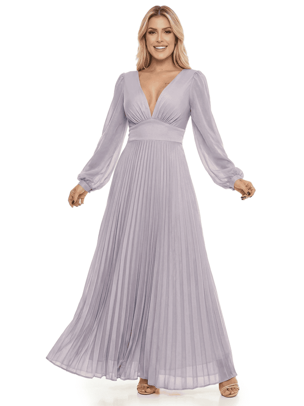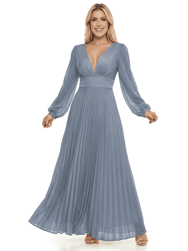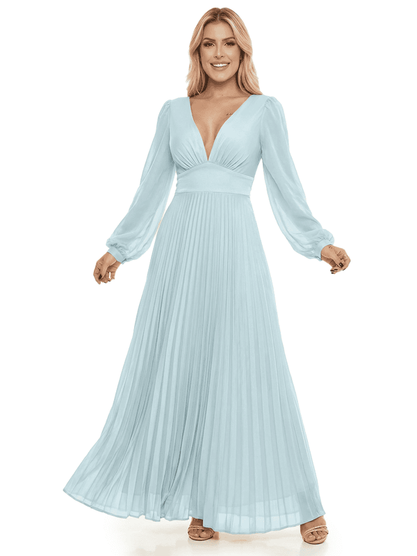 Chicsew Fancy Long Sleeves V-Neck Pleated Chiffon Empire Waist Mother Of The Bride Dress - ChicSewride