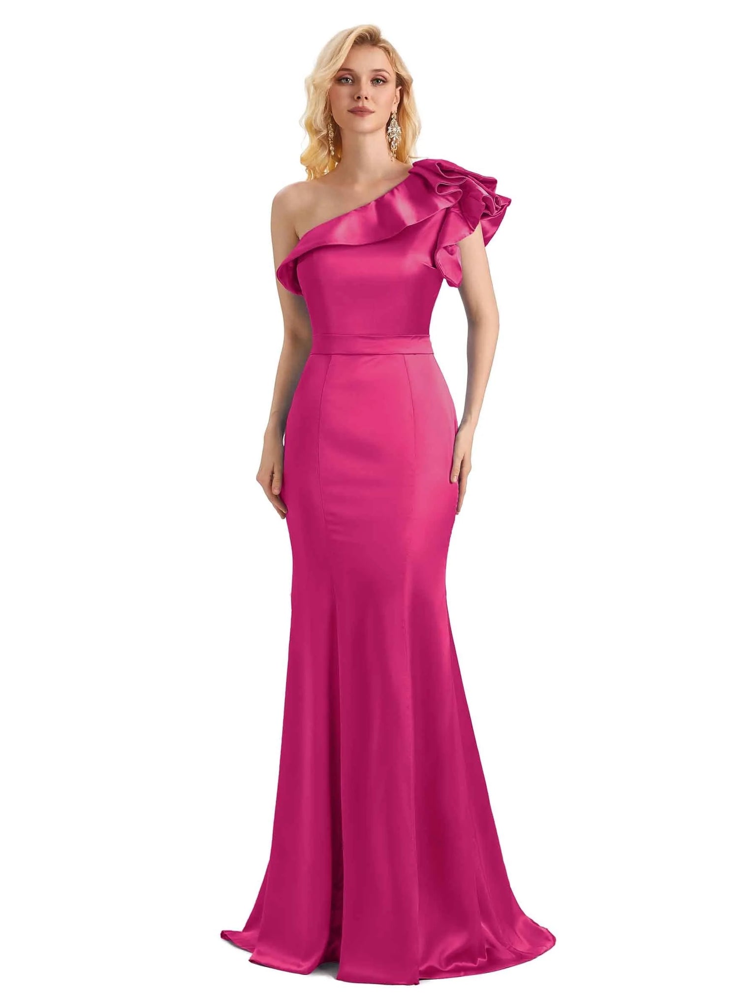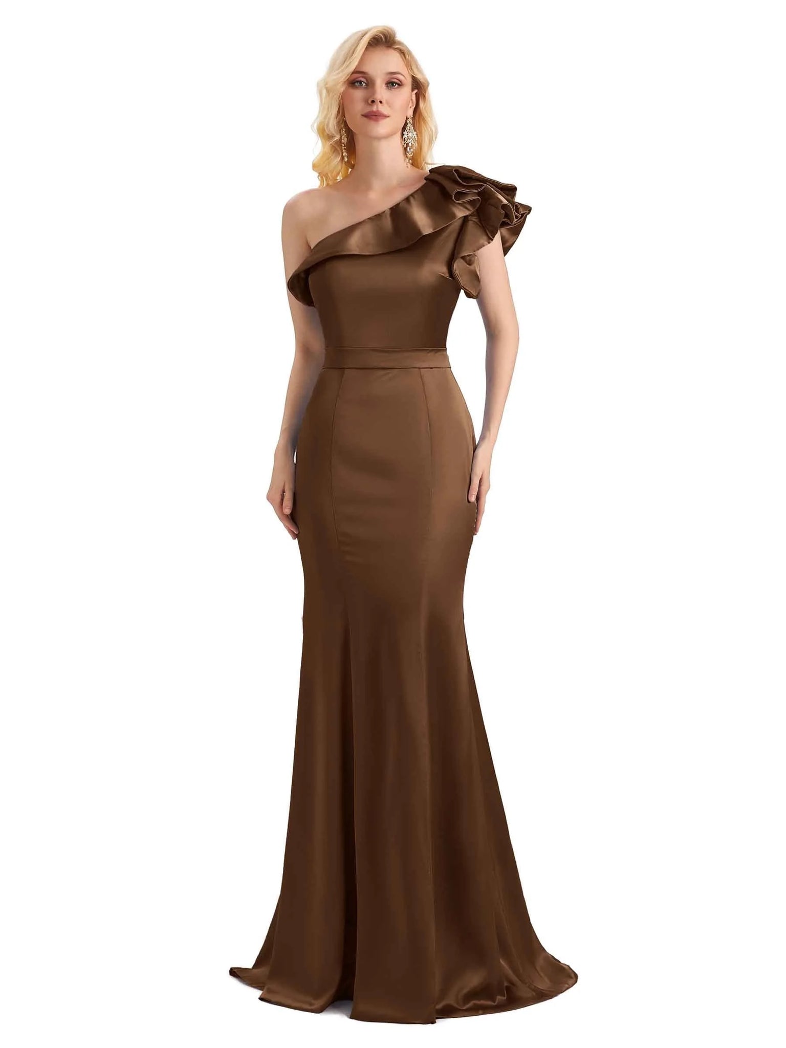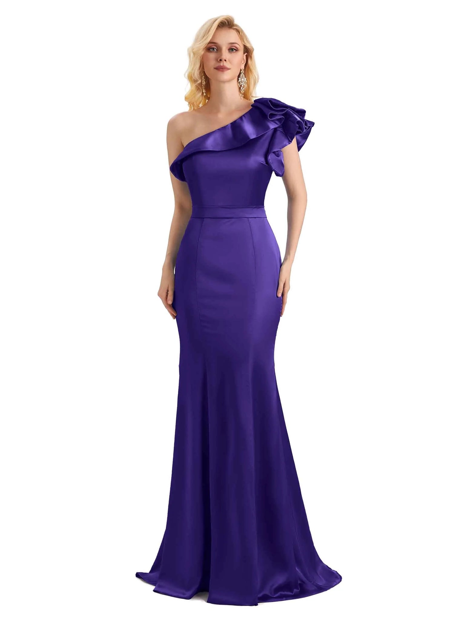 Unique Soft Satin One Shoulder Long Mermaid Prom Dresses Online