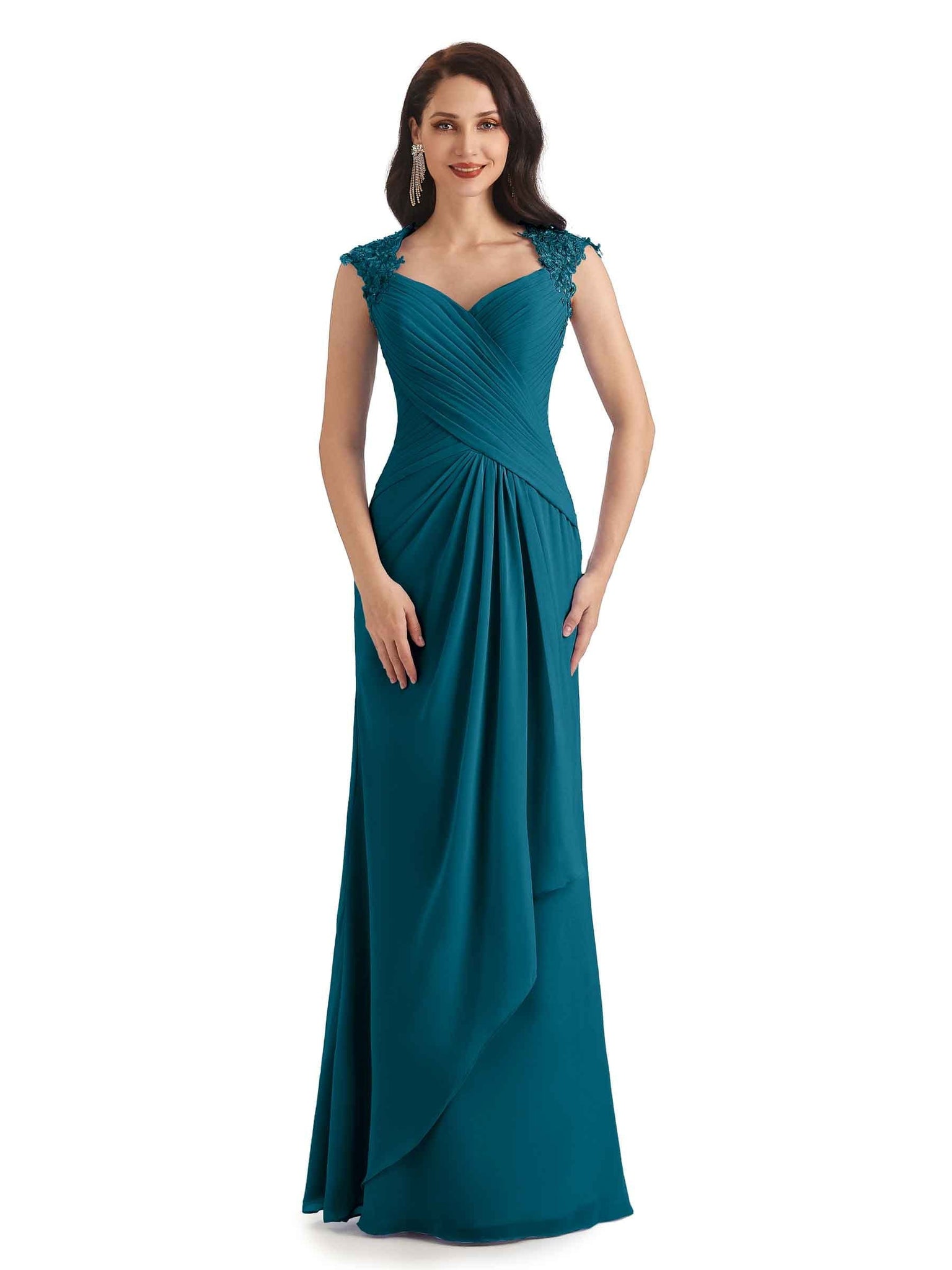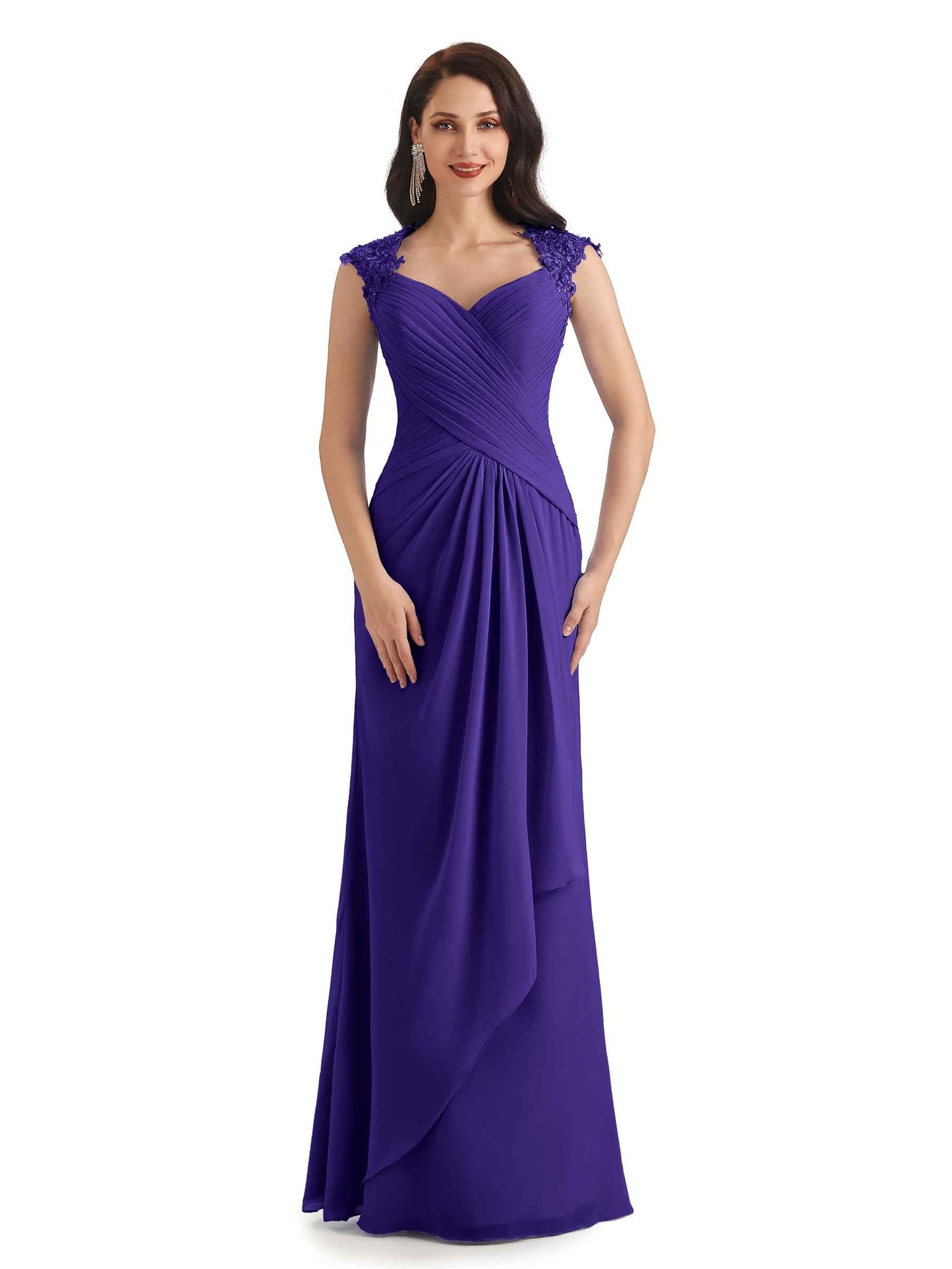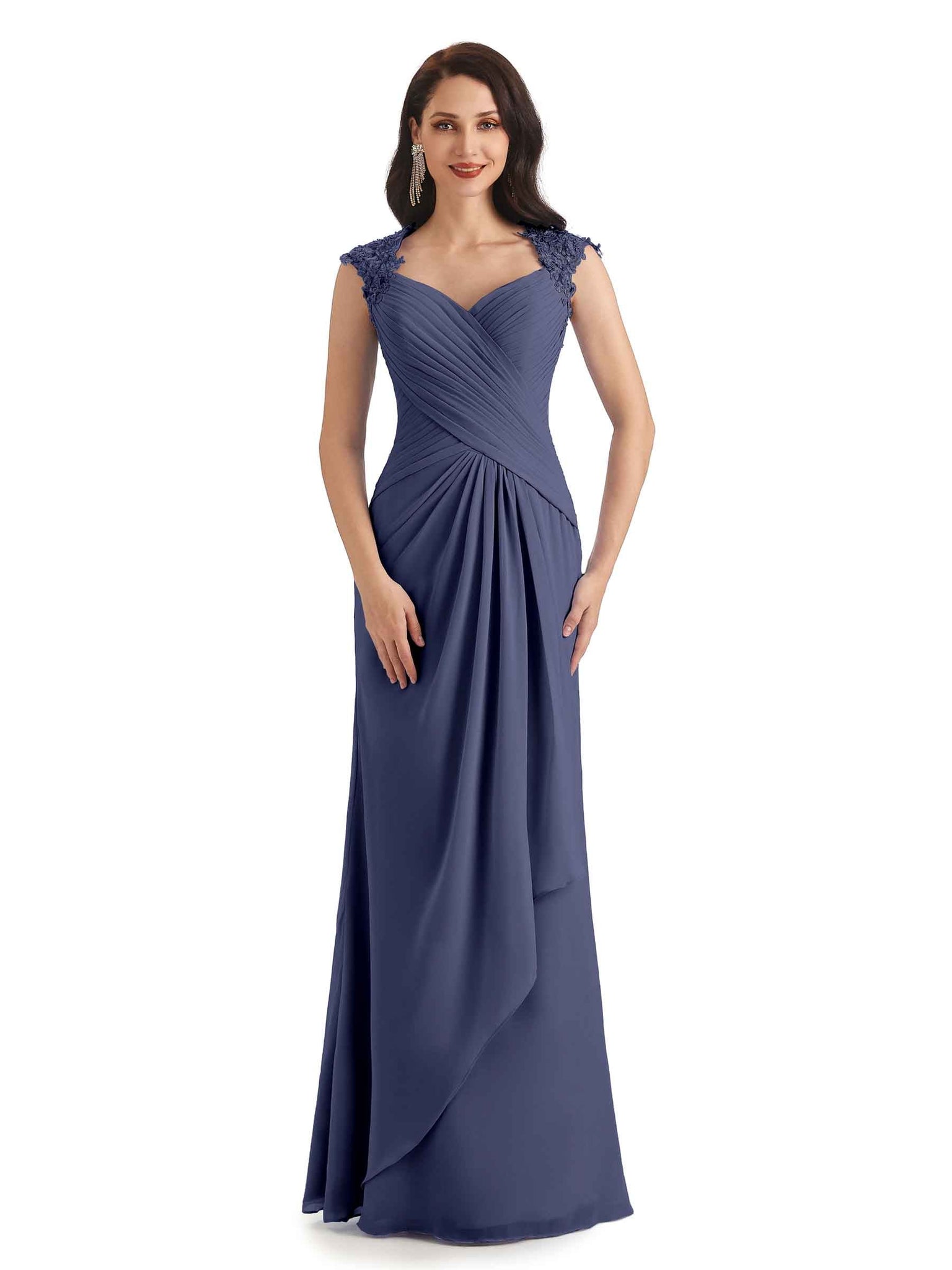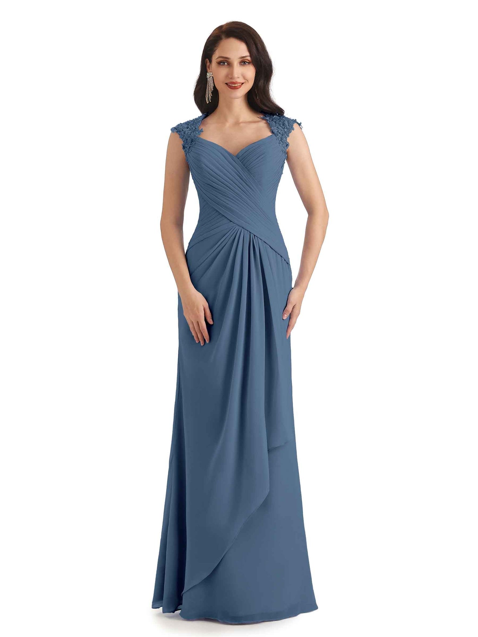 Elegant Chiffon Sheath Queen Ann Floor Length Mother of The Bride Dresses- ChicSew