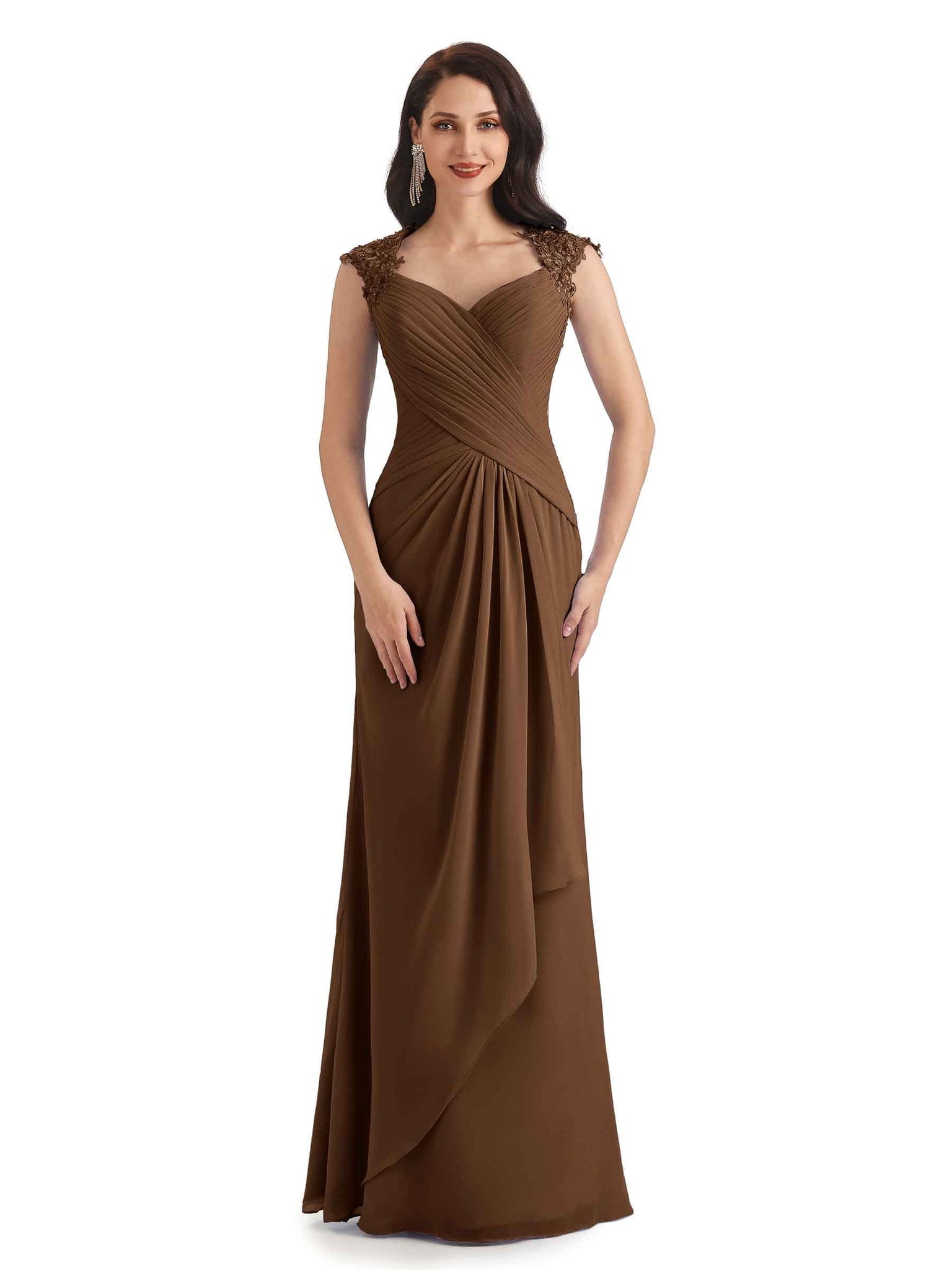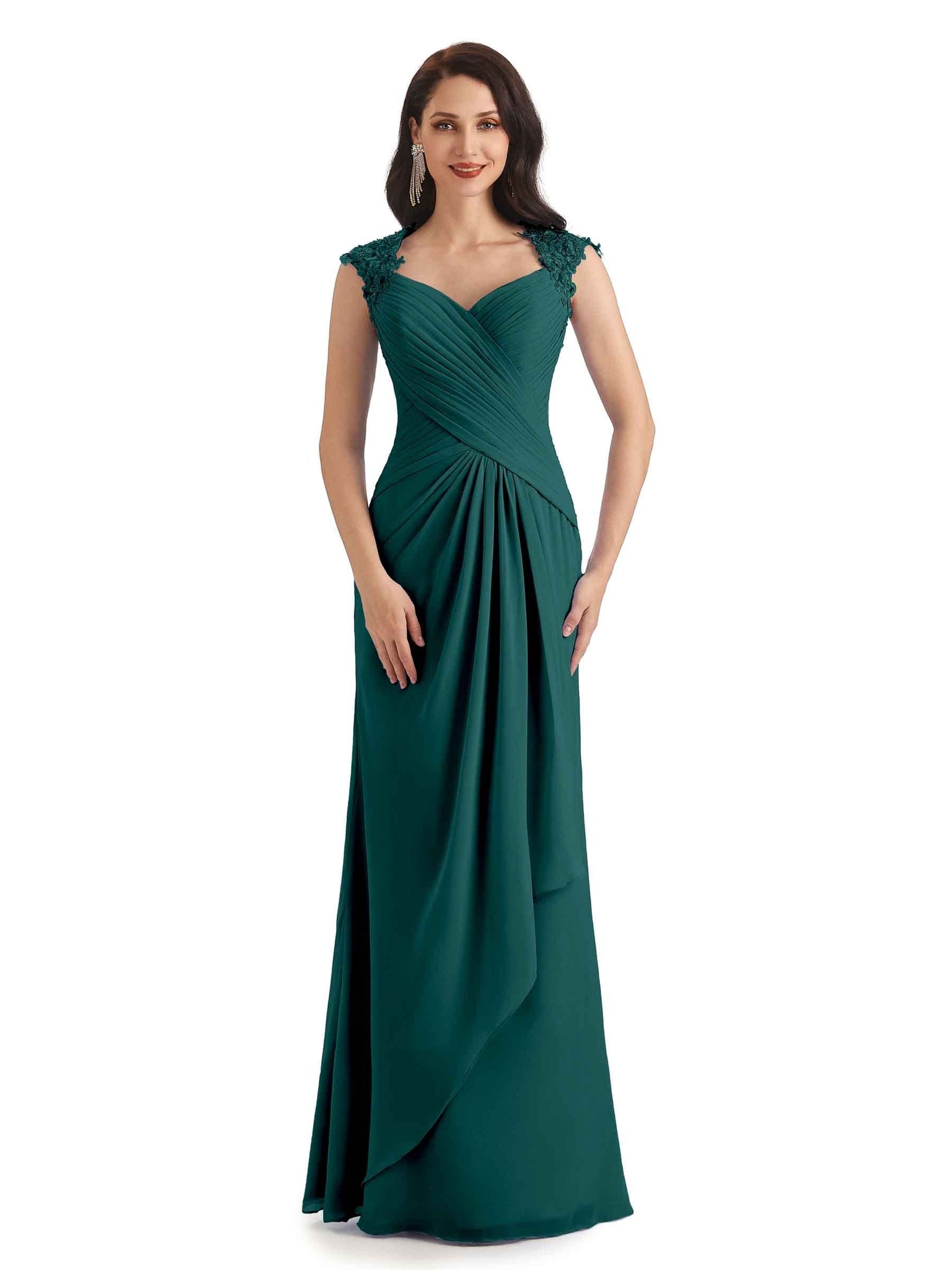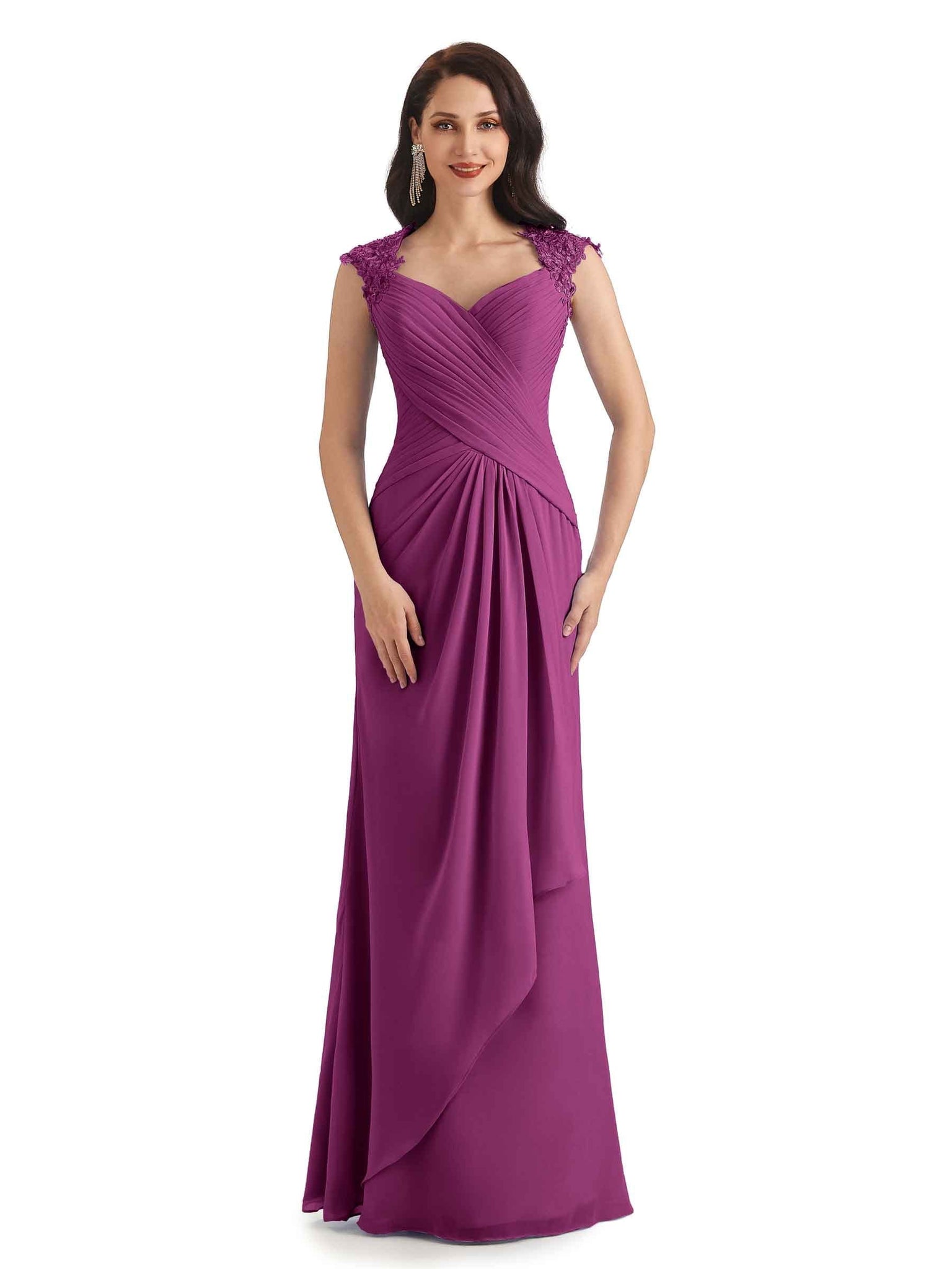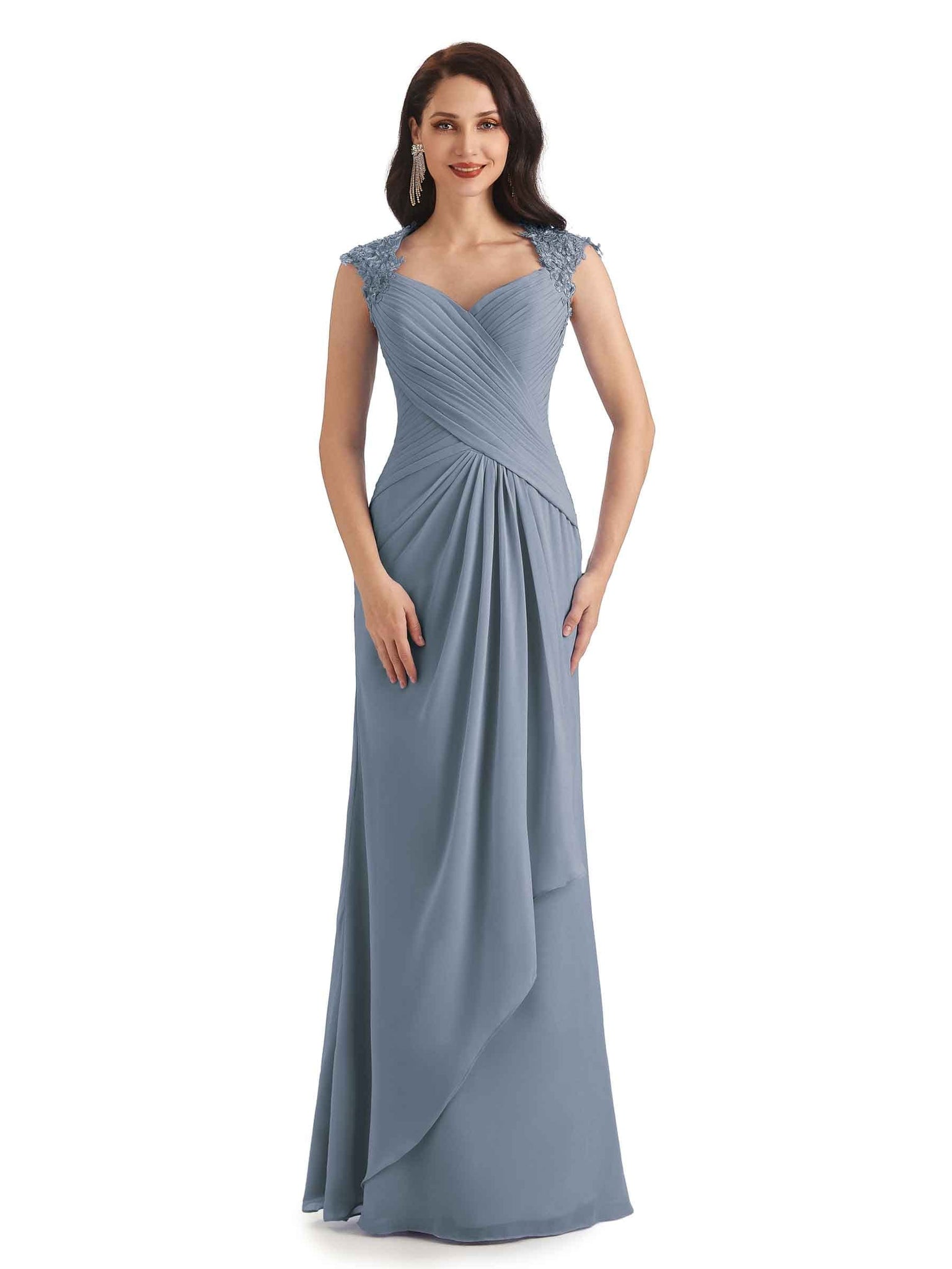Elegant Chiffon Sheath Queen Ann Floor Length Mother of The Bride Dresses- ChicSew