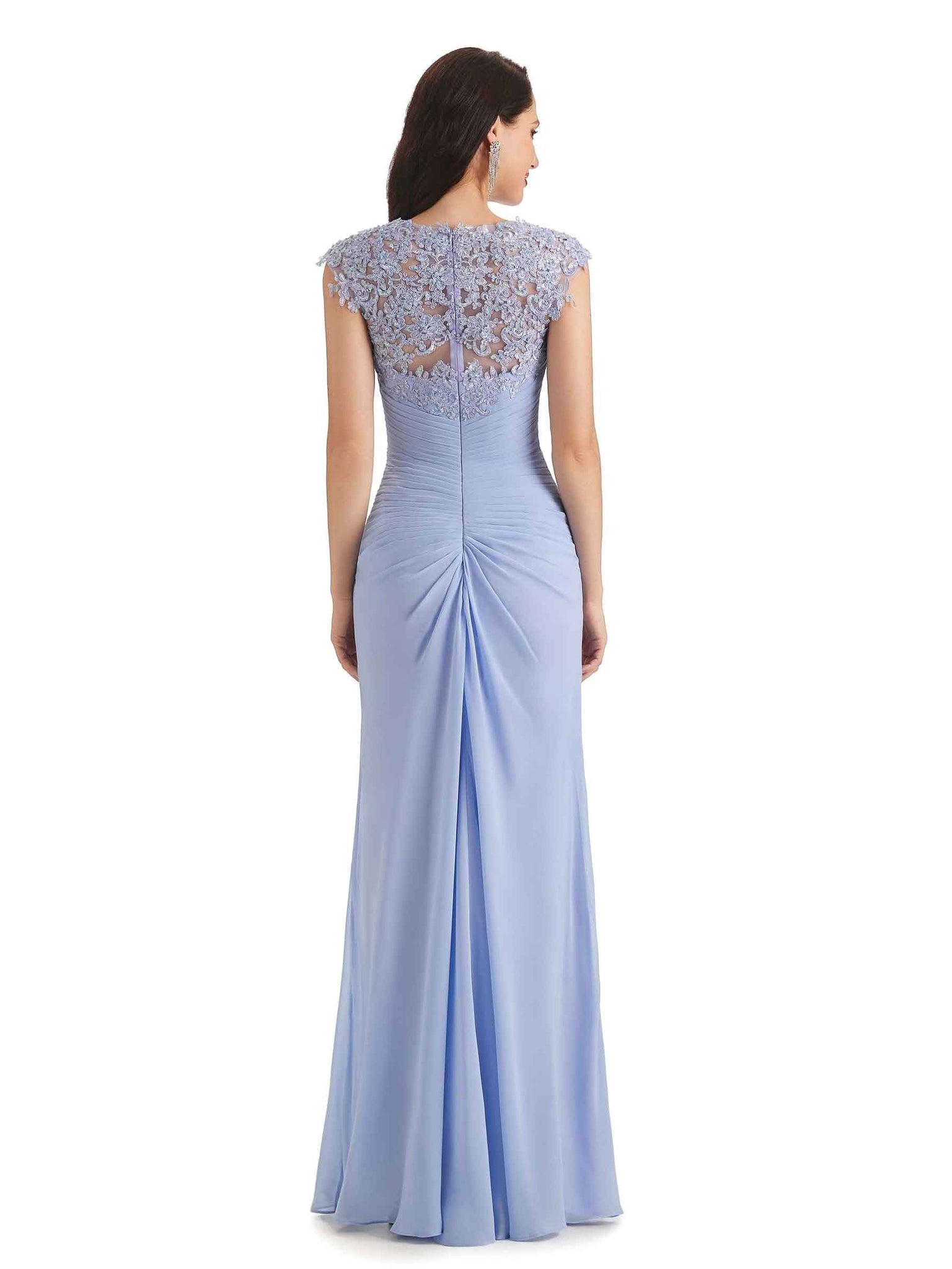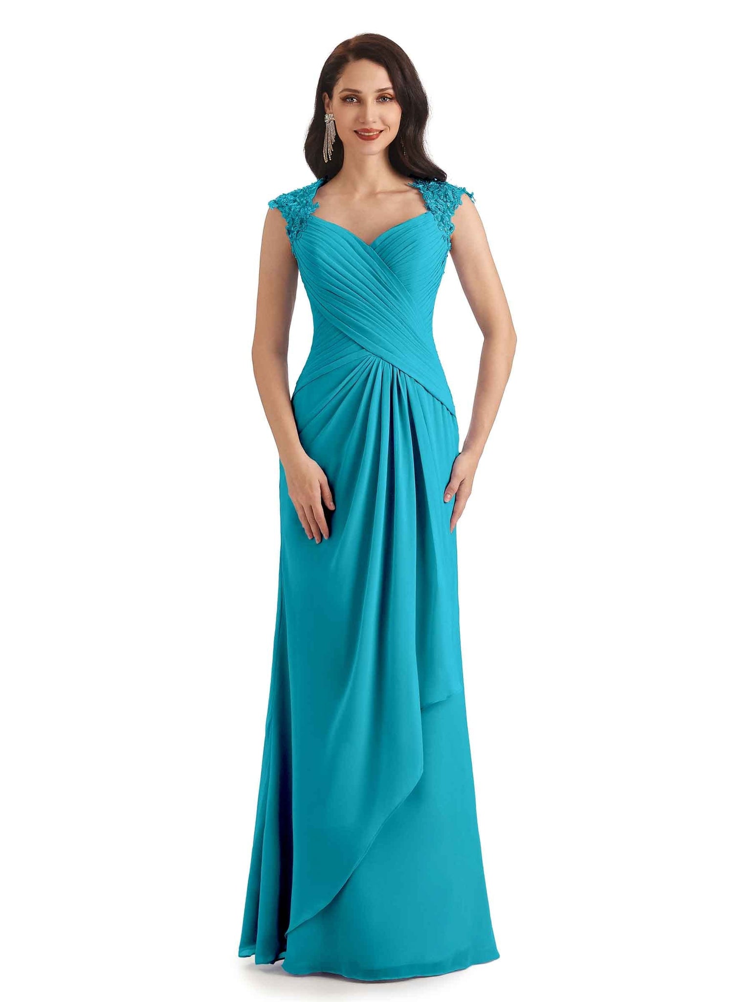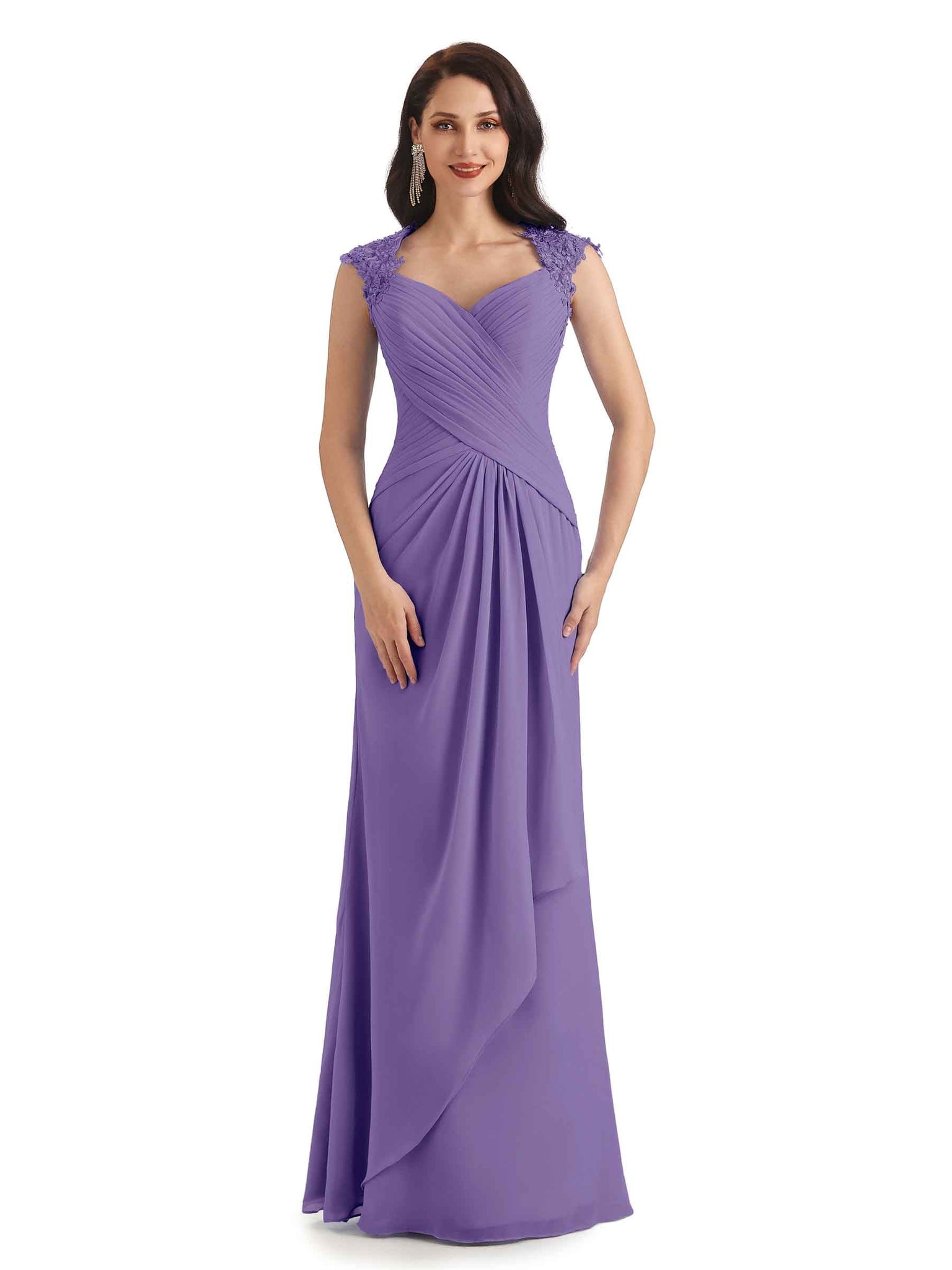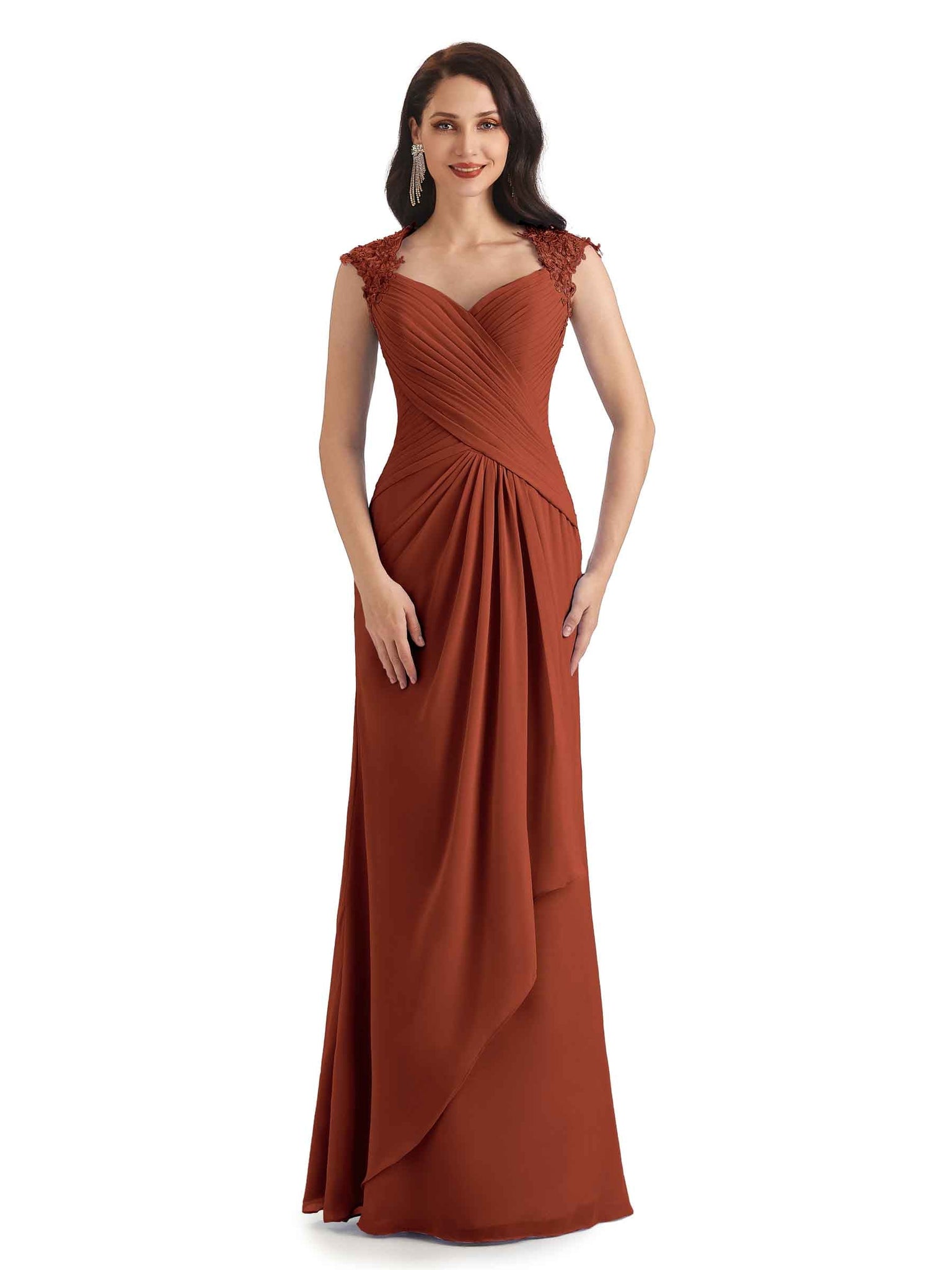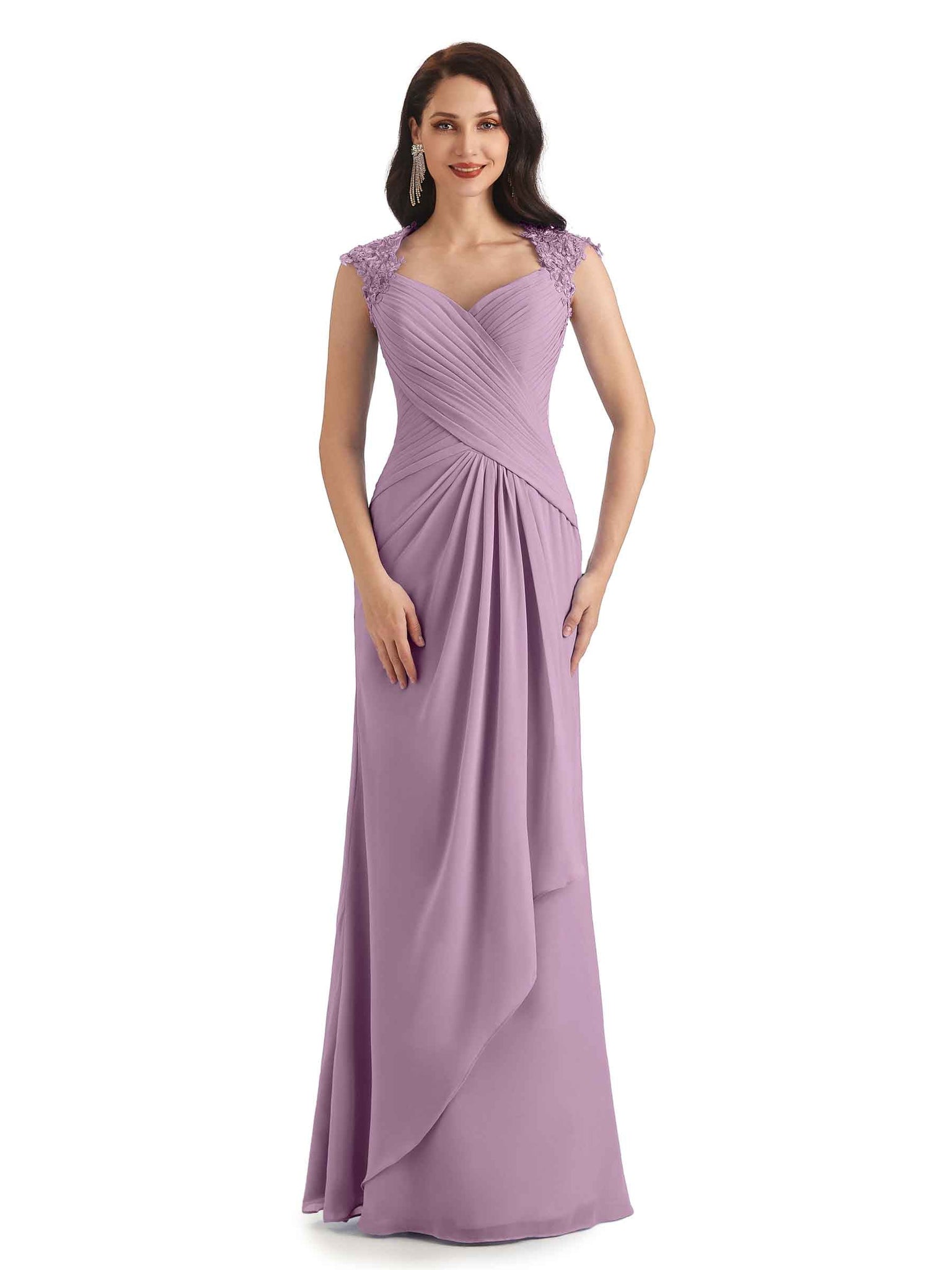 Elegant Chiffon Sheath Queen Ann Floor Length Mother of The Bride Dresses- ChicSew