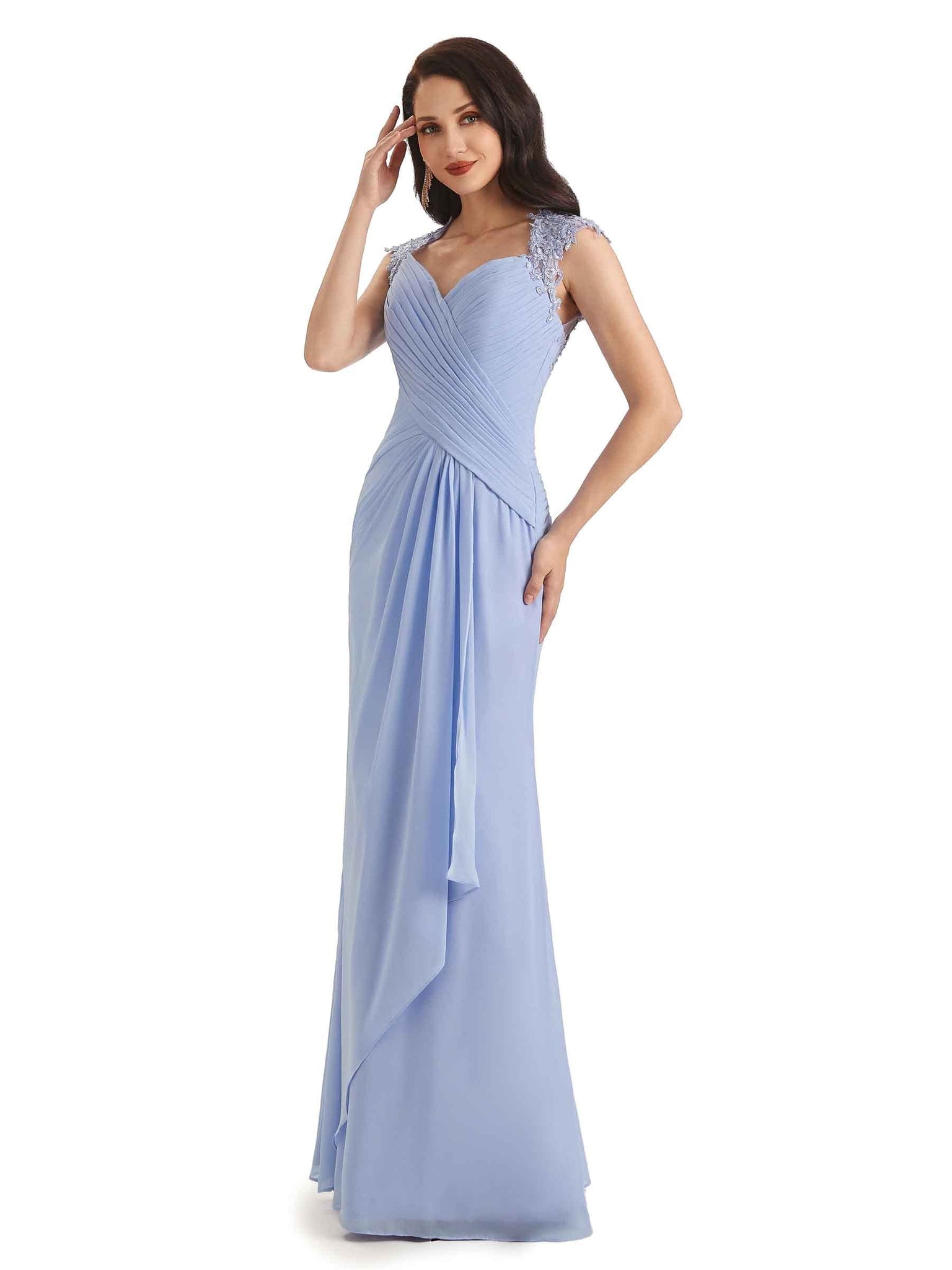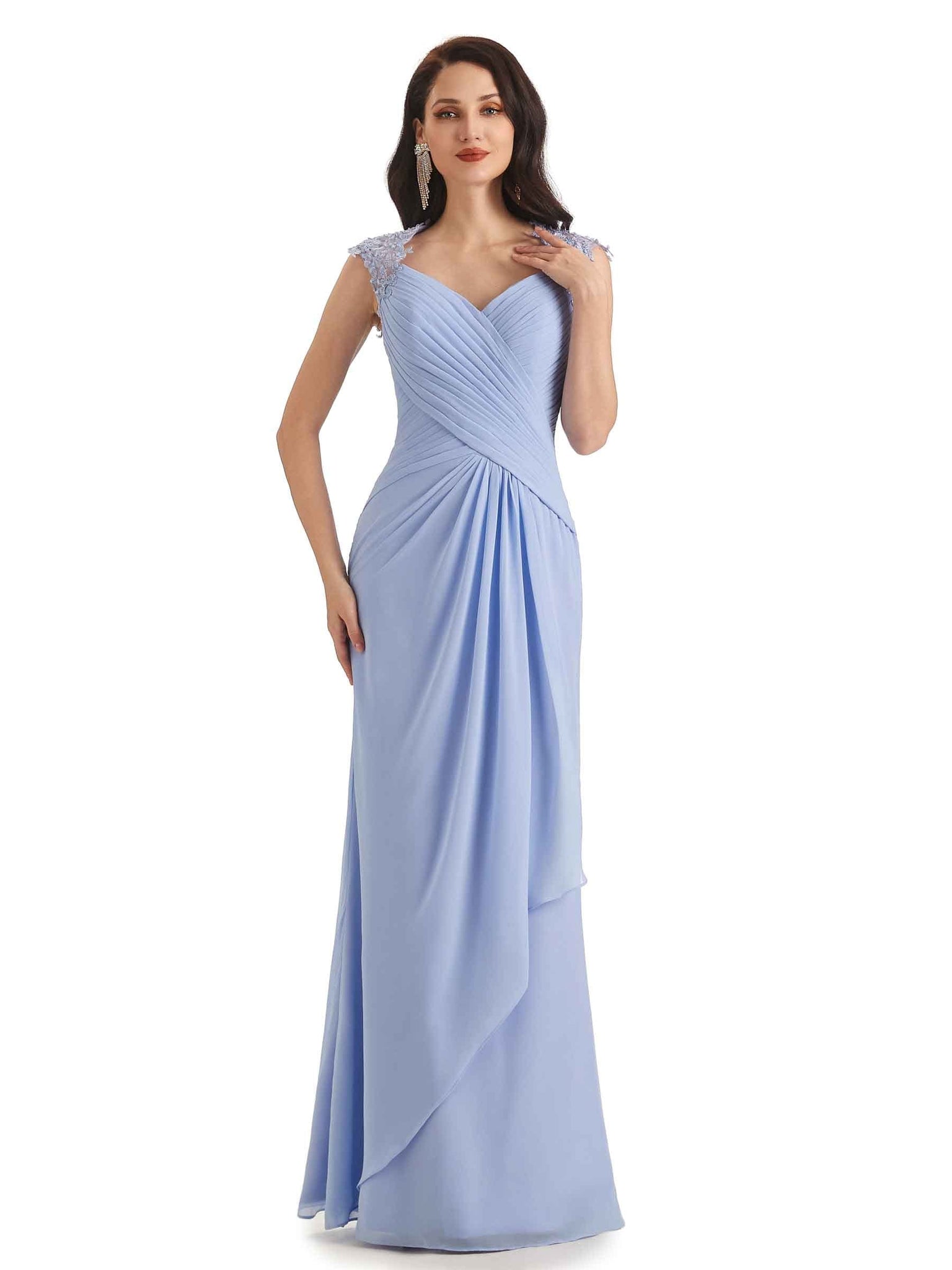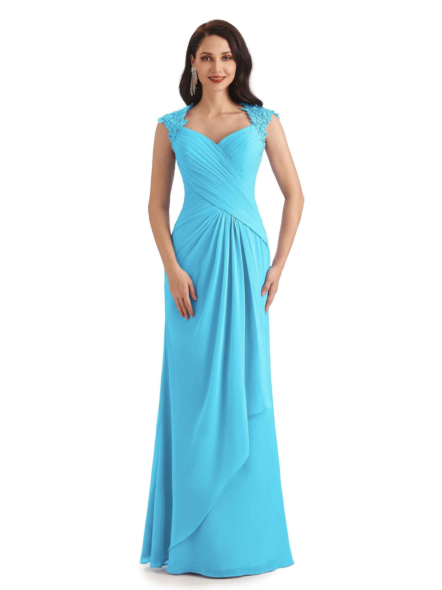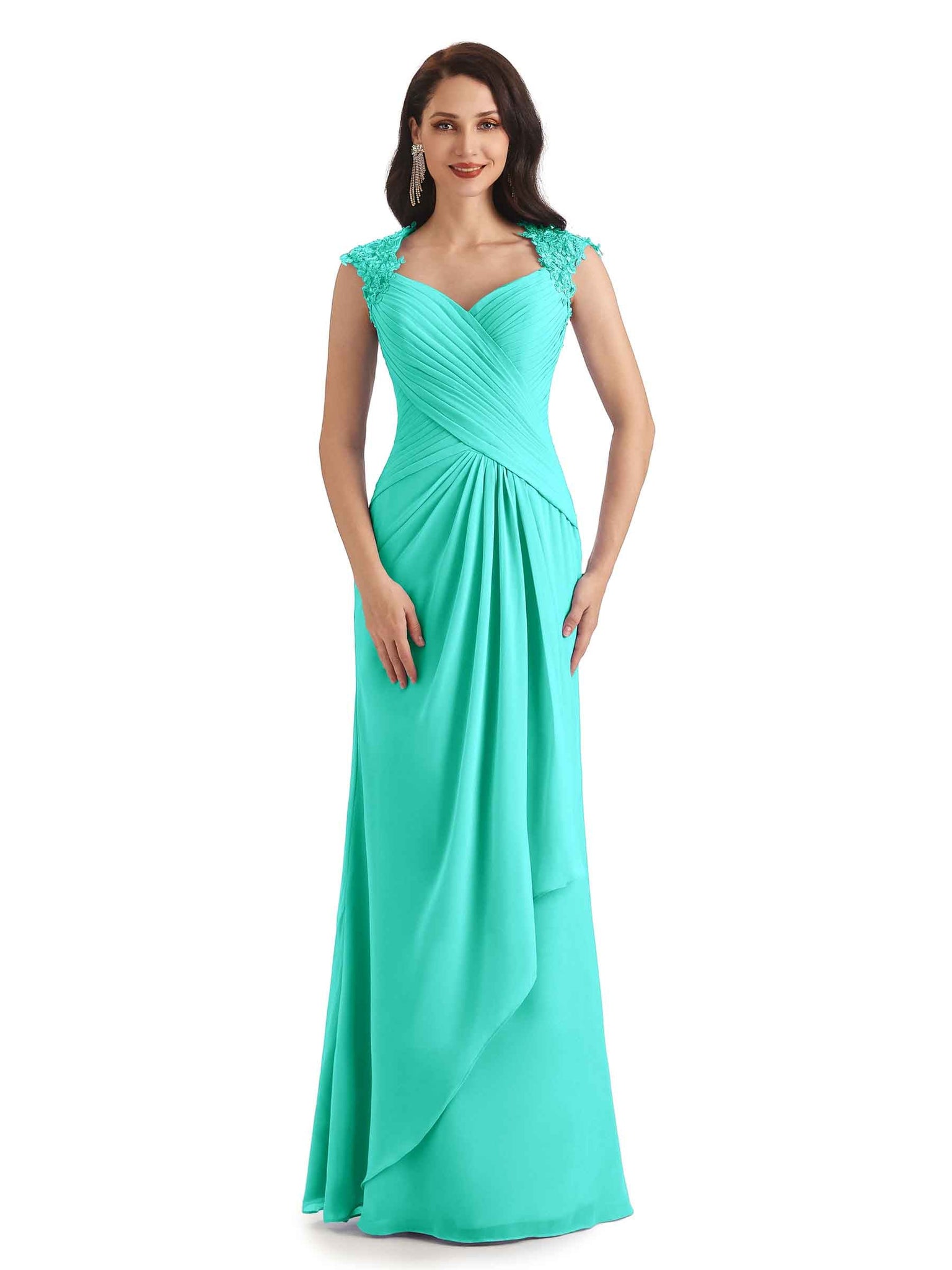 Elegant Chiffon Sheath Queen Ann Floor Length Mother of The Bride Dresses- ChicSew